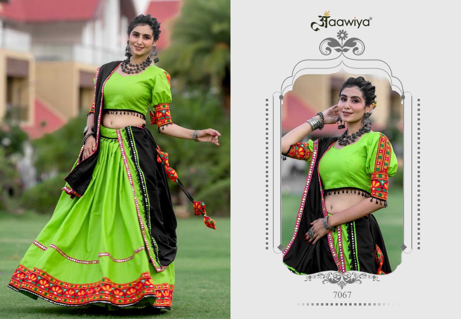 aawiya 7067 navratri special cotton plain gamthi work classic look readymade lehenga choli