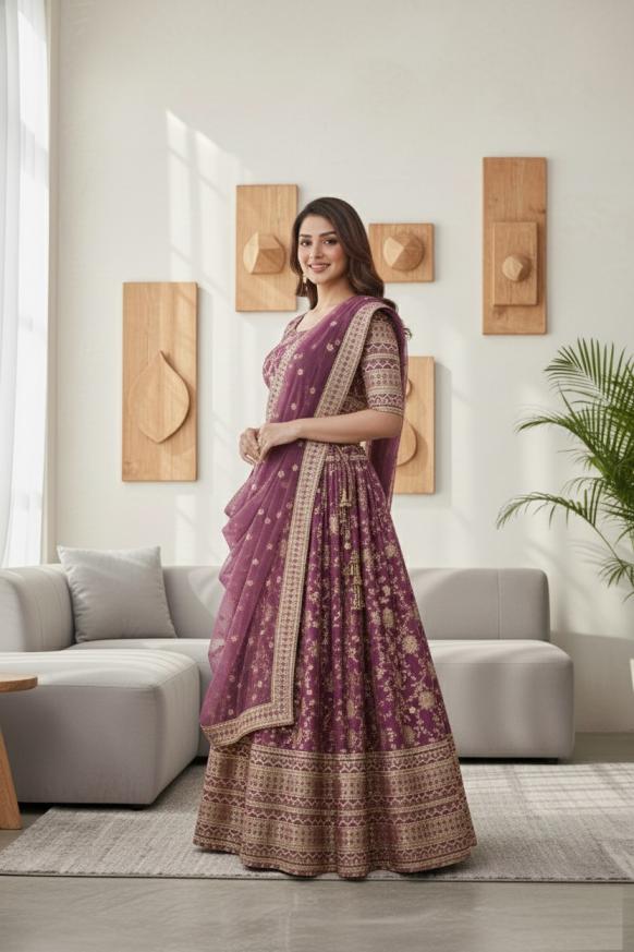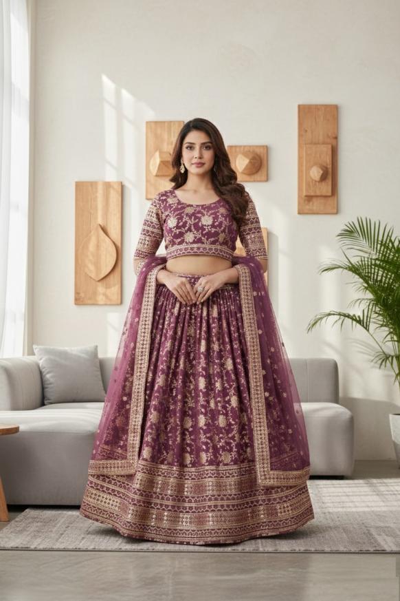 aawiya aalisha vol 1 rosy brown dola jacquard semi stitch festive chaniya choli