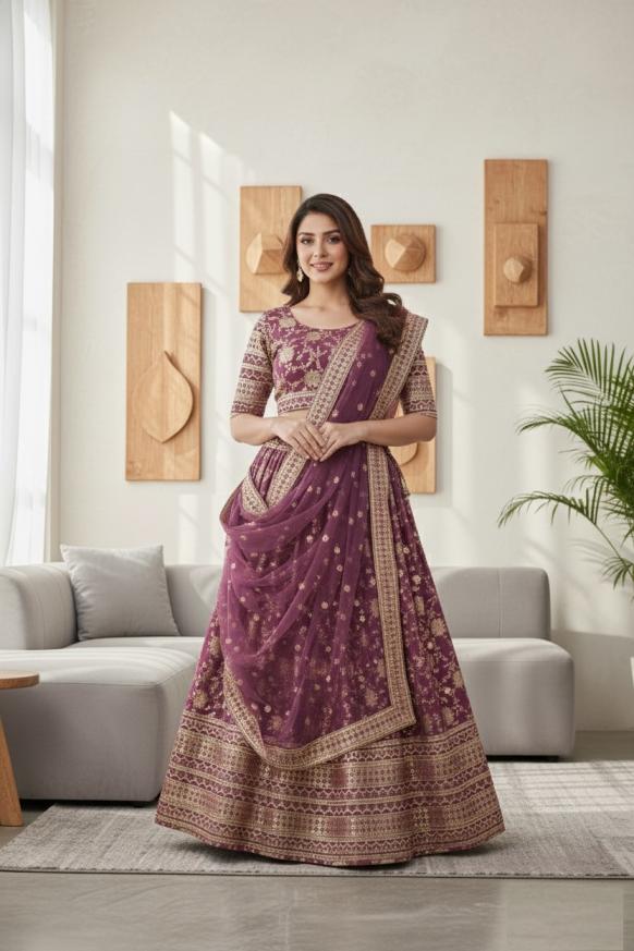 THIS WEDDING SEASON, WE HAVE BROUGHT FOR YOU A SPECIAL JACQUARD SEQUINS, ZARI EMBROIDERED LEHENGA & BLOUSE AND A LOVELY DUPATTA. AALISHA VOL – 1 SKU & COLOR LEHENGA (SEMI-STITCHED) BLOUSE (UNSTITCHED) DUPATTA PRICE: 2450/- +GST WEIGHT 1.600 KG |