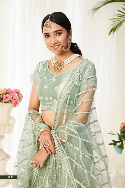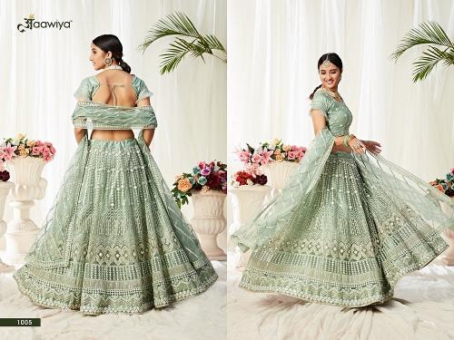 aawiya agnilekha 1005 semi stitch net thread work engagement lehenga for bride