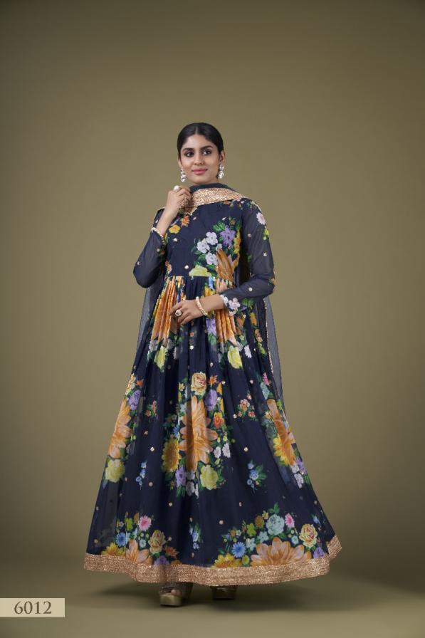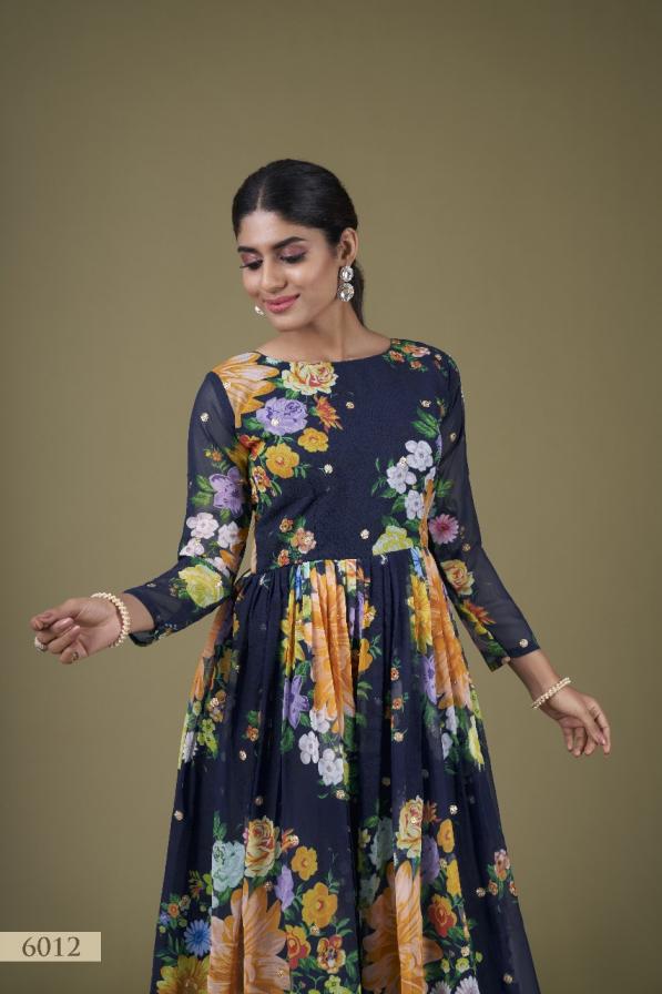 😍😍😍😍PRESENTS NEW GOWN CATALOG 😍😍😍😍 FLORAL VOL – 1 SKU & COLORS FABRIC DETAILS RATE – 2600/- NOTE - FREE SIZE (UP TO 44) BOOKING STARTED |