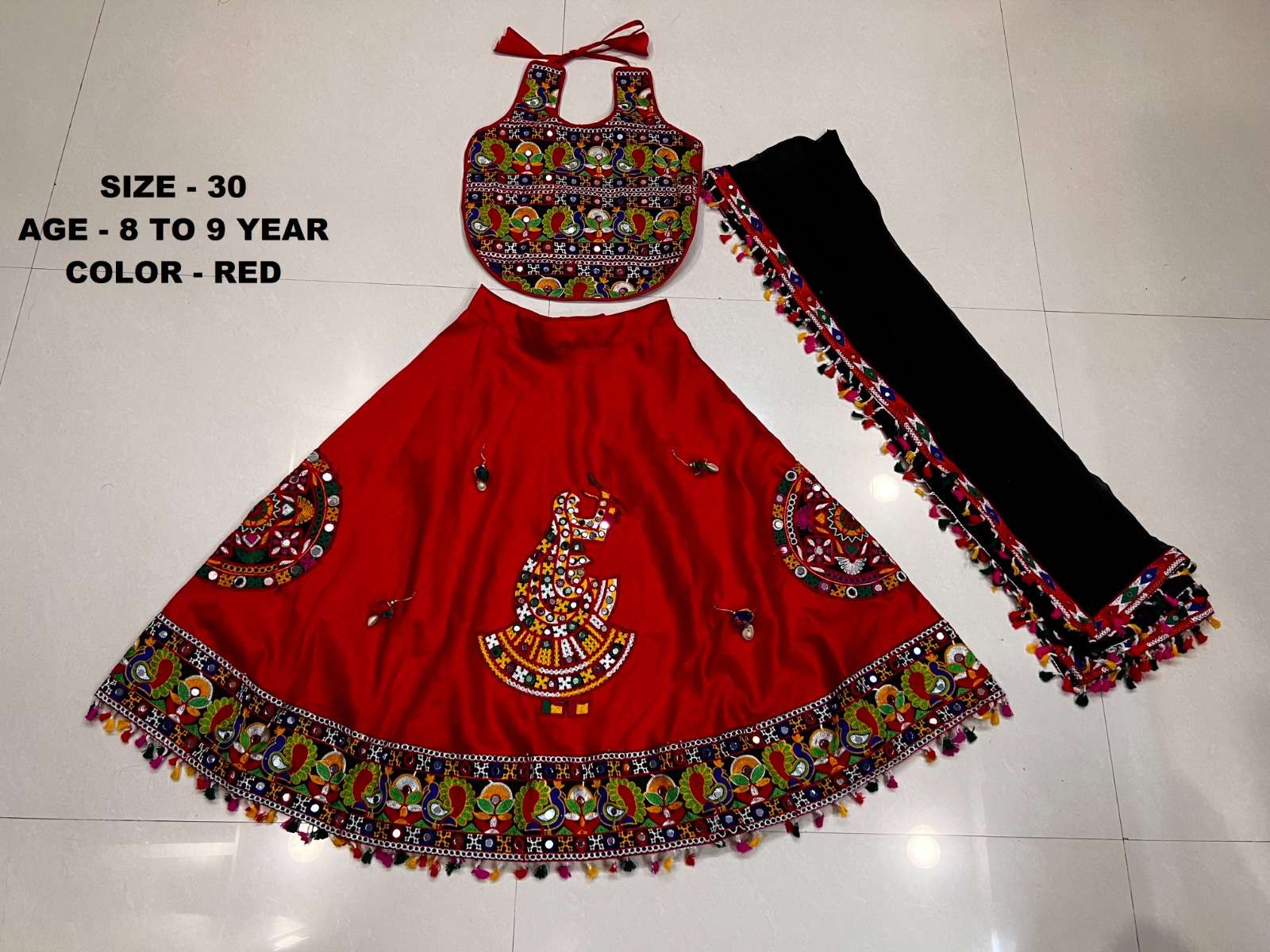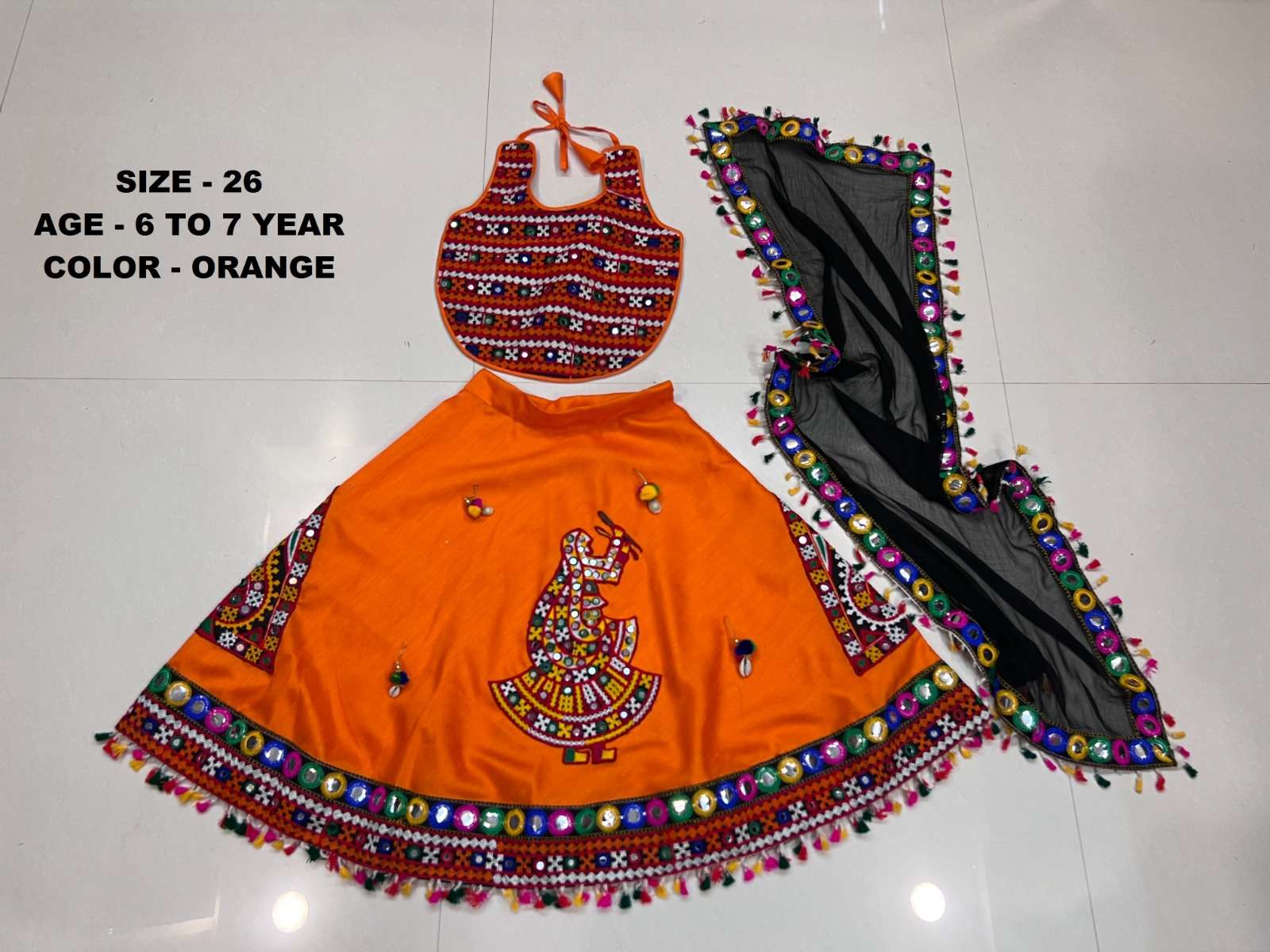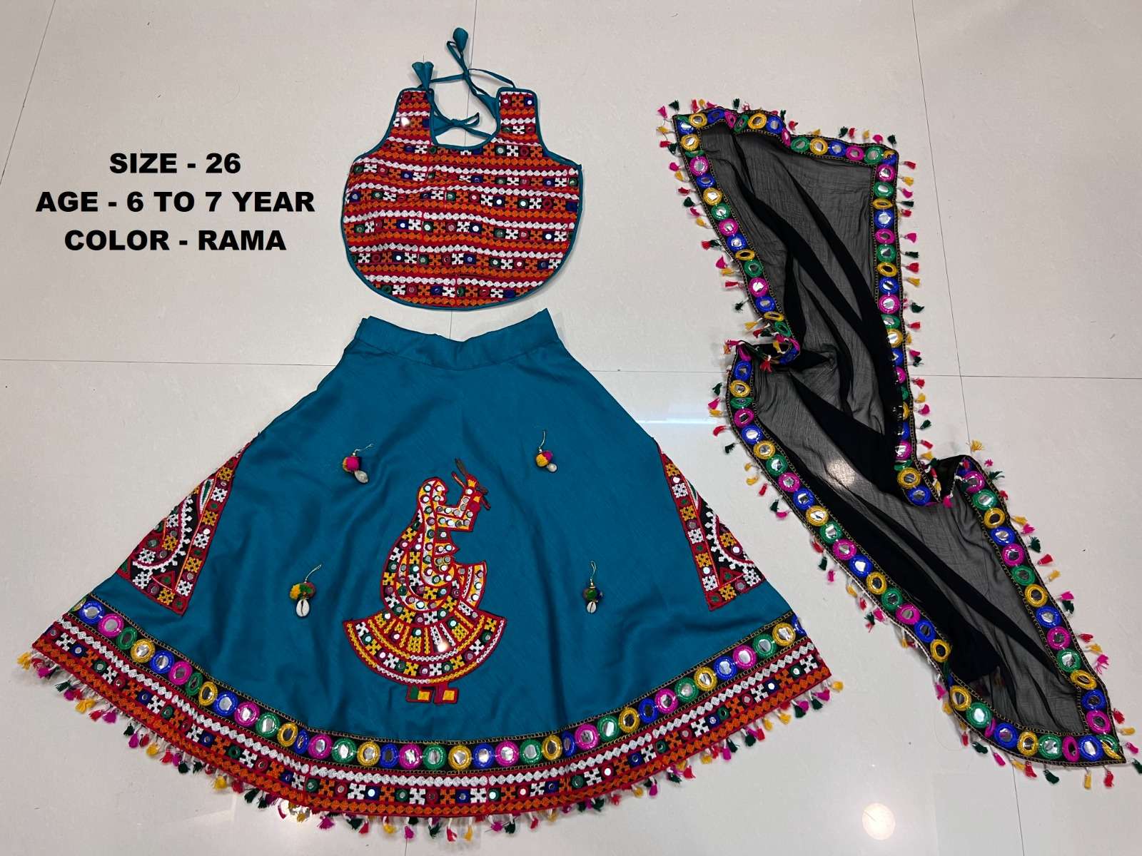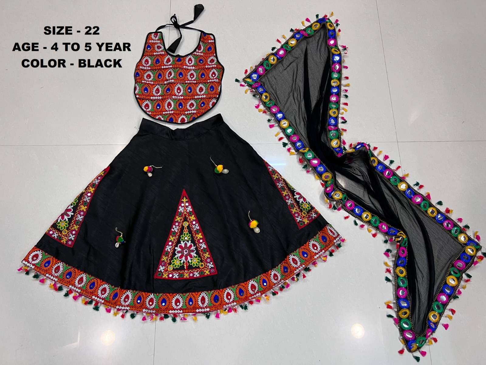 KIDS SPECIAL NAVRATRI GARBA OUTFITS 2023 ➡NAVRATRI KIDS SPECIAL NAVRANGI KUTCHI WORK CHANIYA CHOLI WITH DUPPTA. FABRIC DETAILS 6 COLOURS AVAILABLE ALL SIZE RED, BLACK, ORANGE, ROYAL BLUE, C-GREEN, LEMON DETAILS