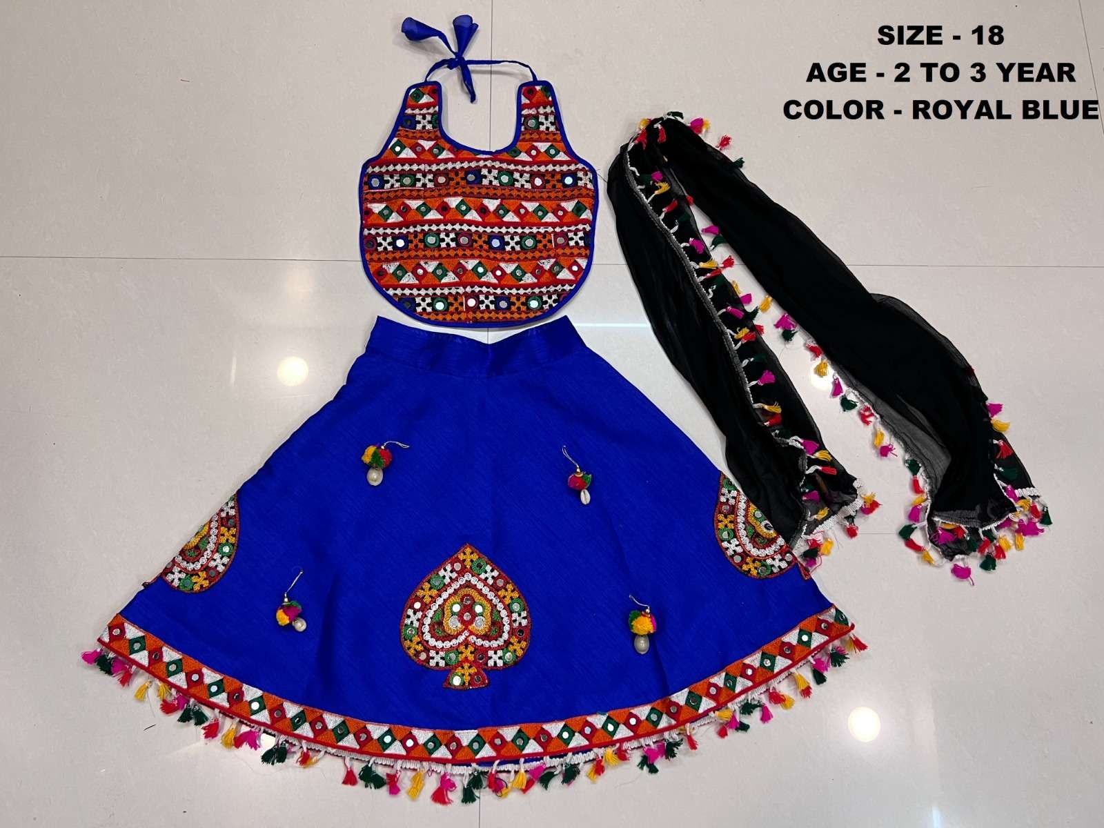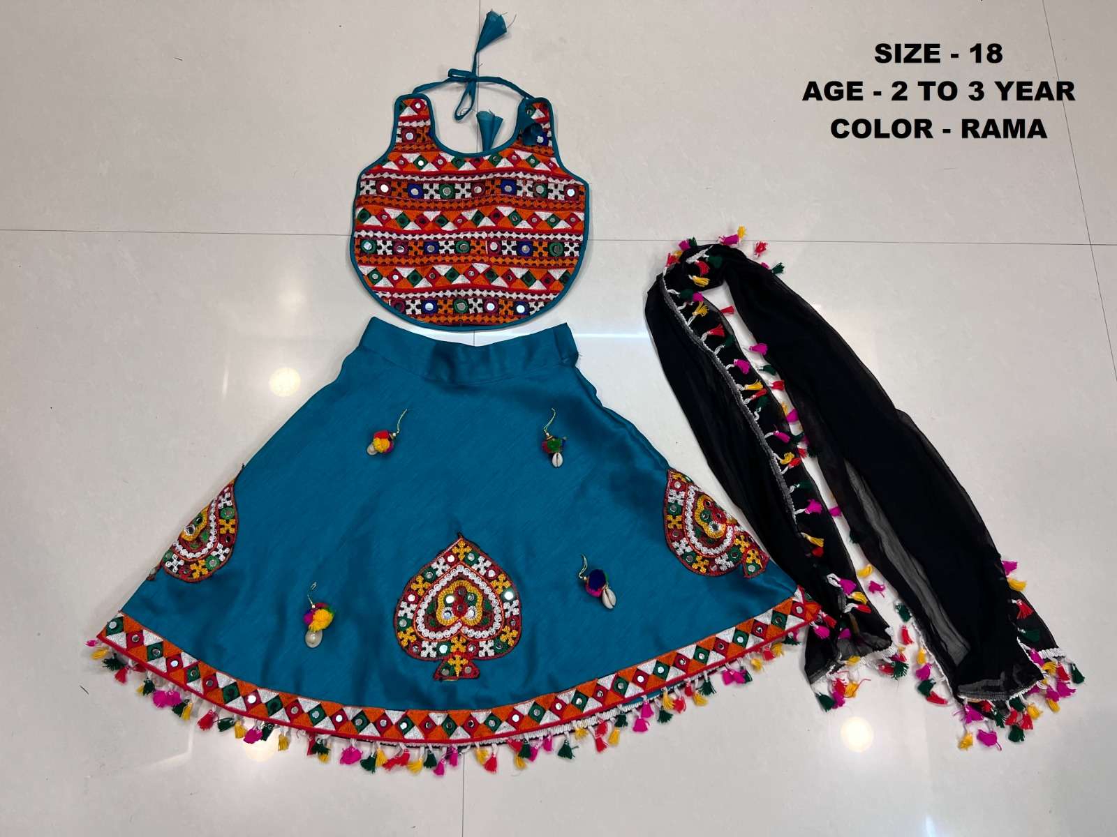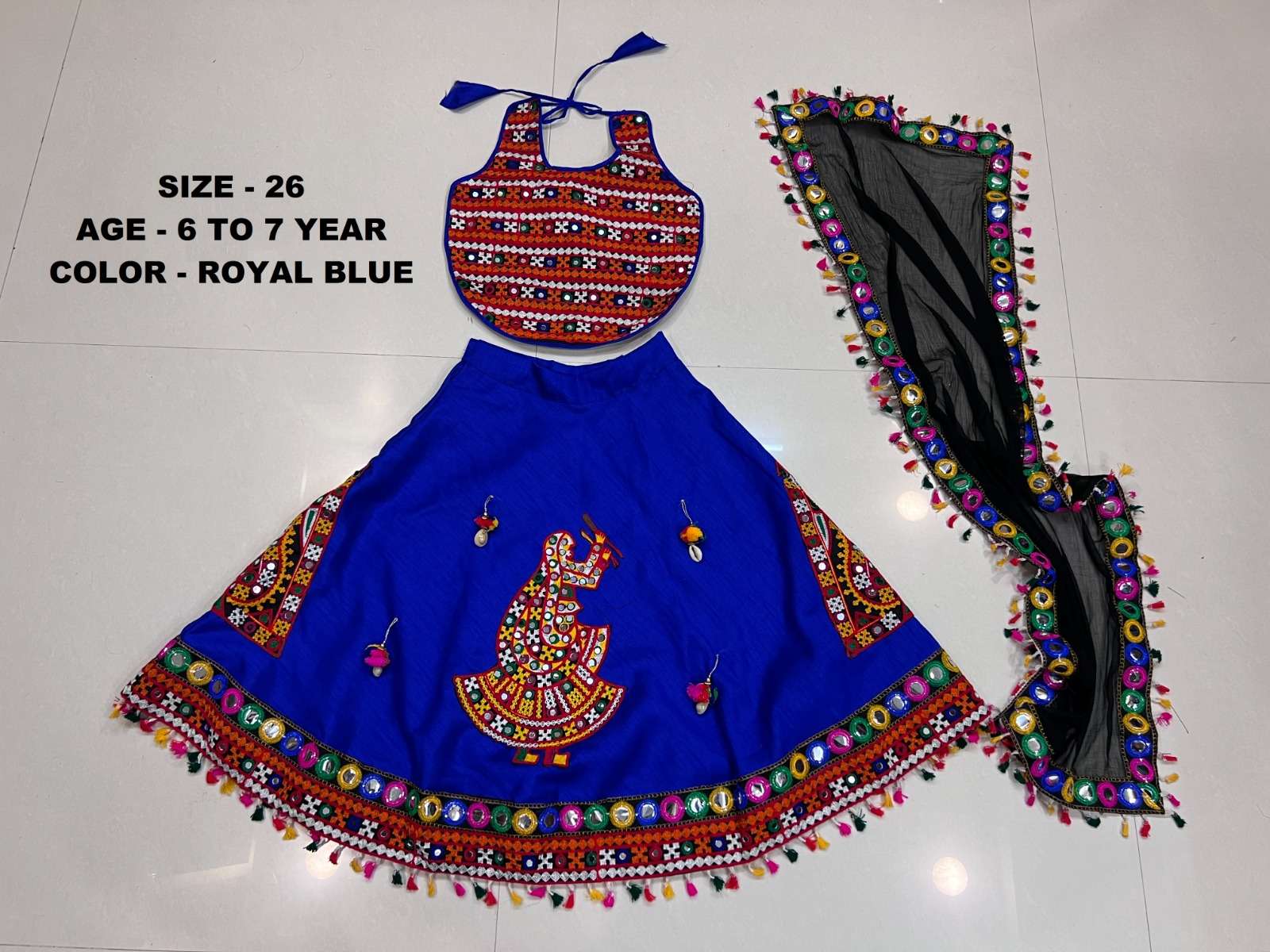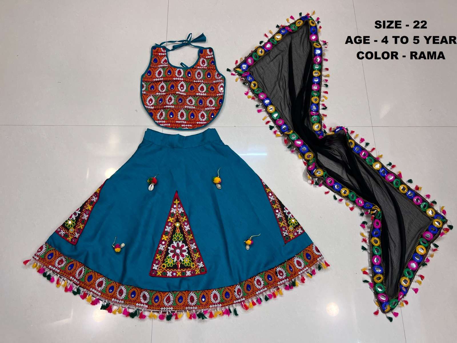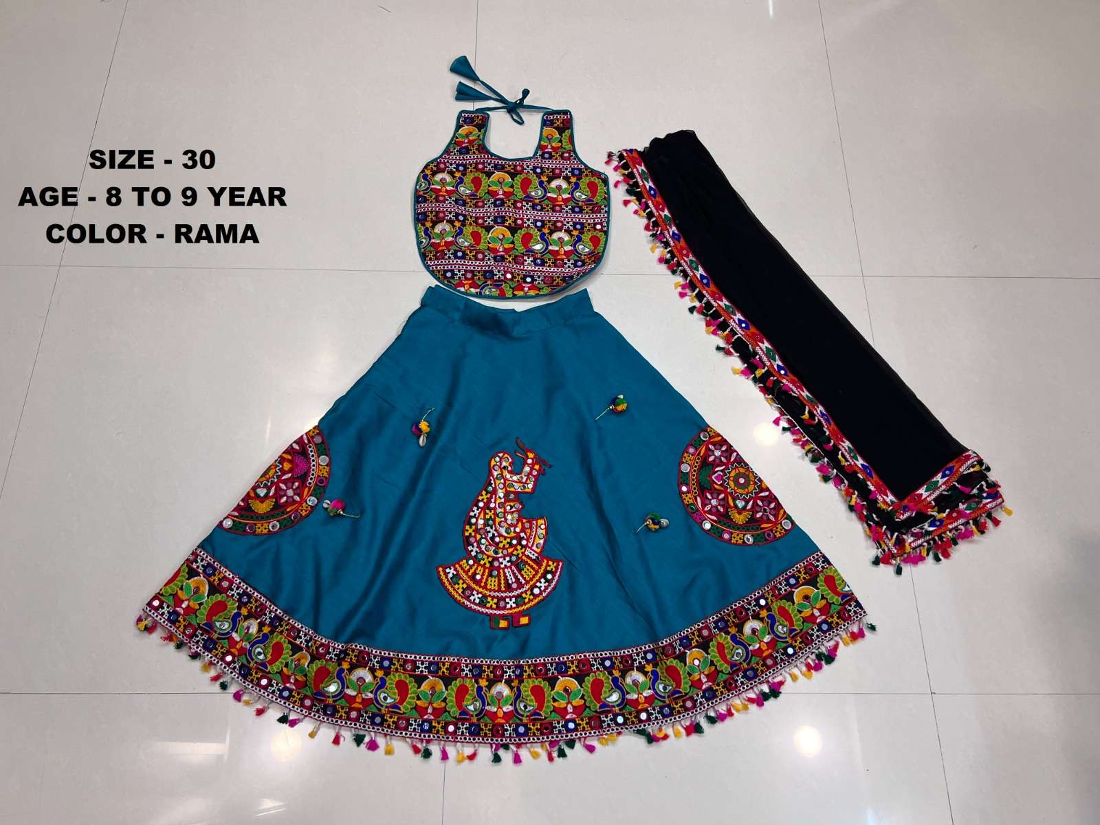 KIDS SPECIAL NAVRATRI GARBA OUTFITS 2023 ➡NAVRATRI KIDS SPECIAL NAVRANGI KUTCHI WORK CHANIYA CHOLI WITH DUPPTA. FABRIC DETAILS 6 COLOURS AVAILABLE ALL SIZE RED, BLACK, ORANGE, ROYAL BLUE, C-GREEN, LEMON DETAILS