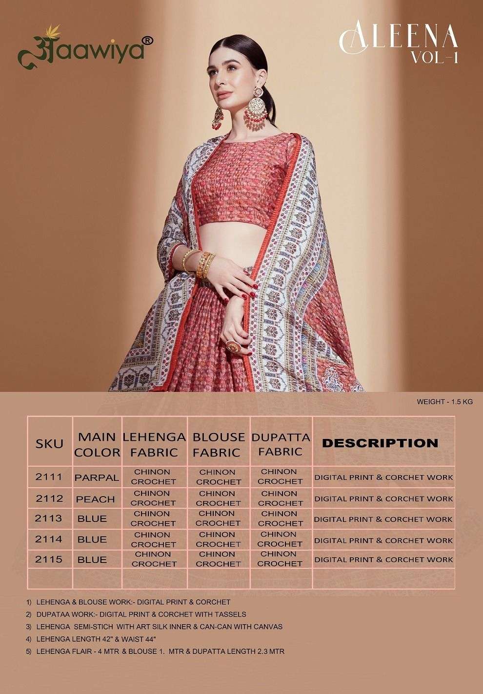 aawiya present aleena vol 1 chinon digital print semi stitched lehenga choli