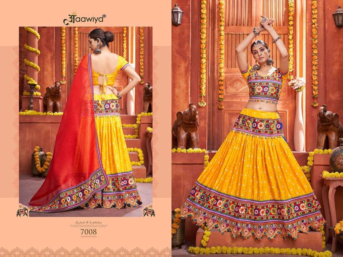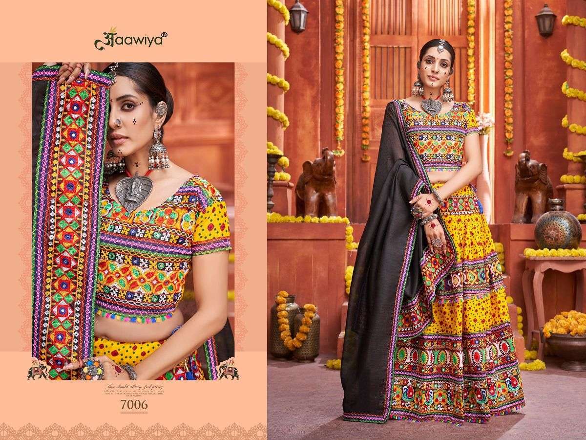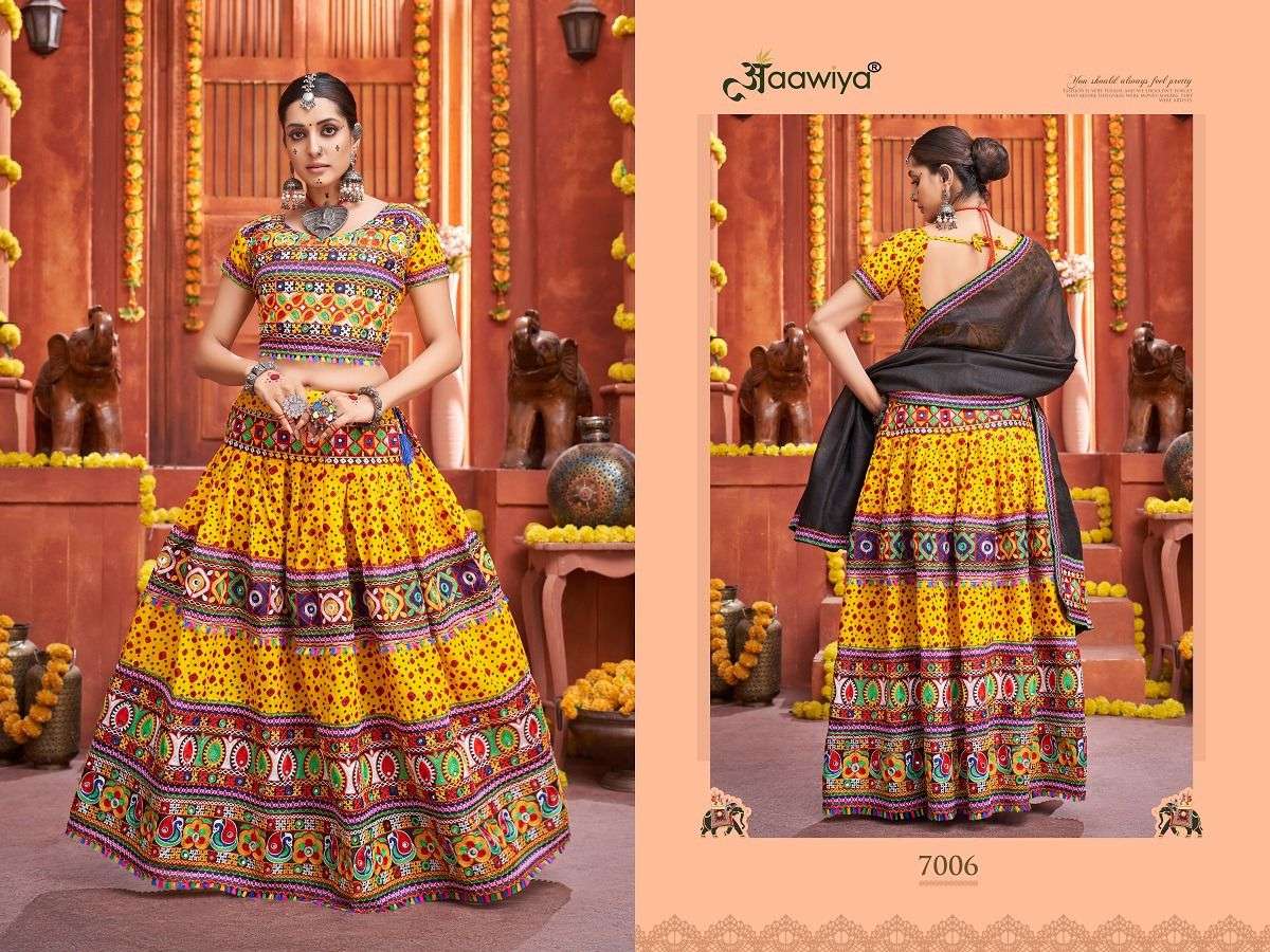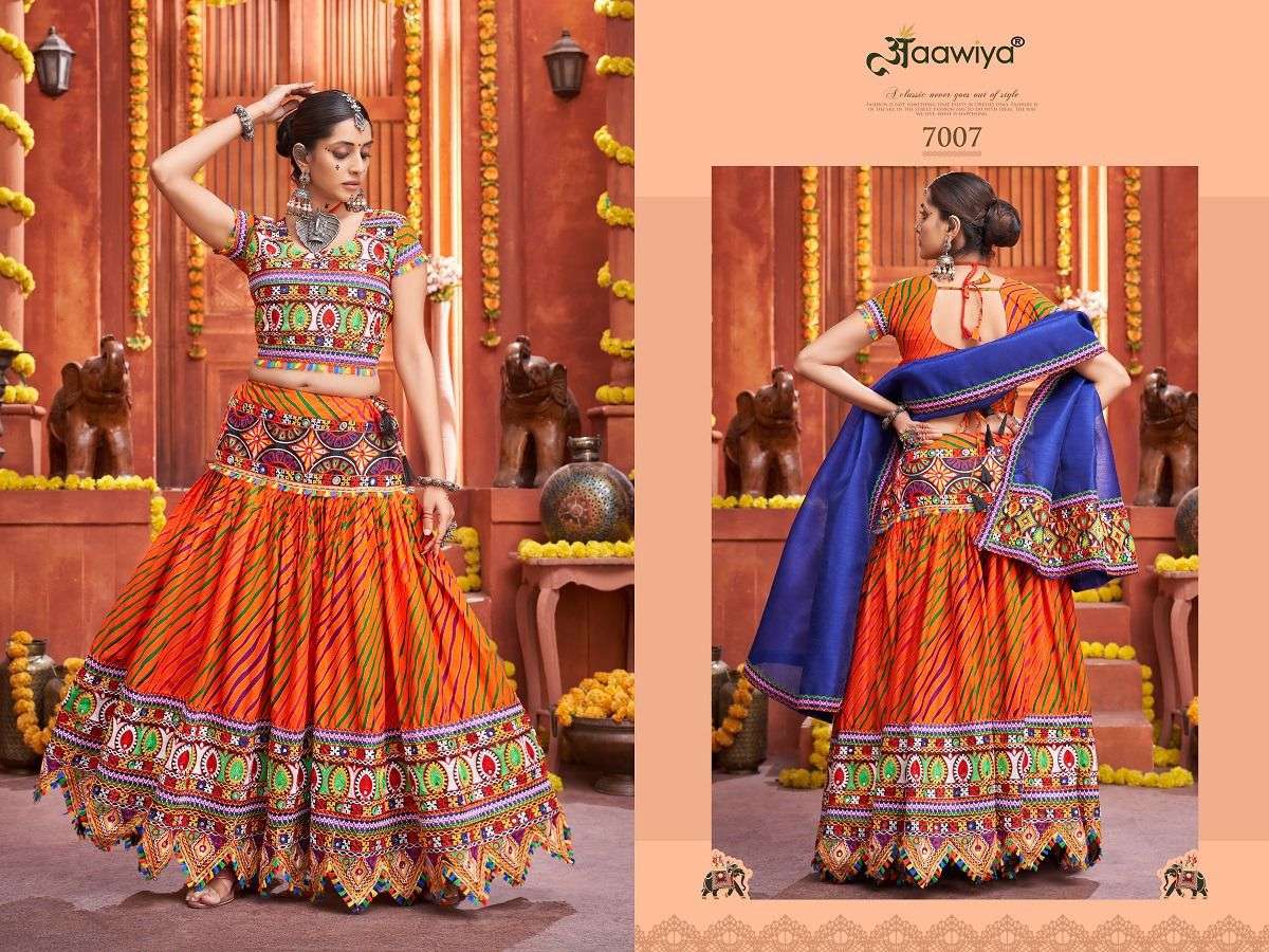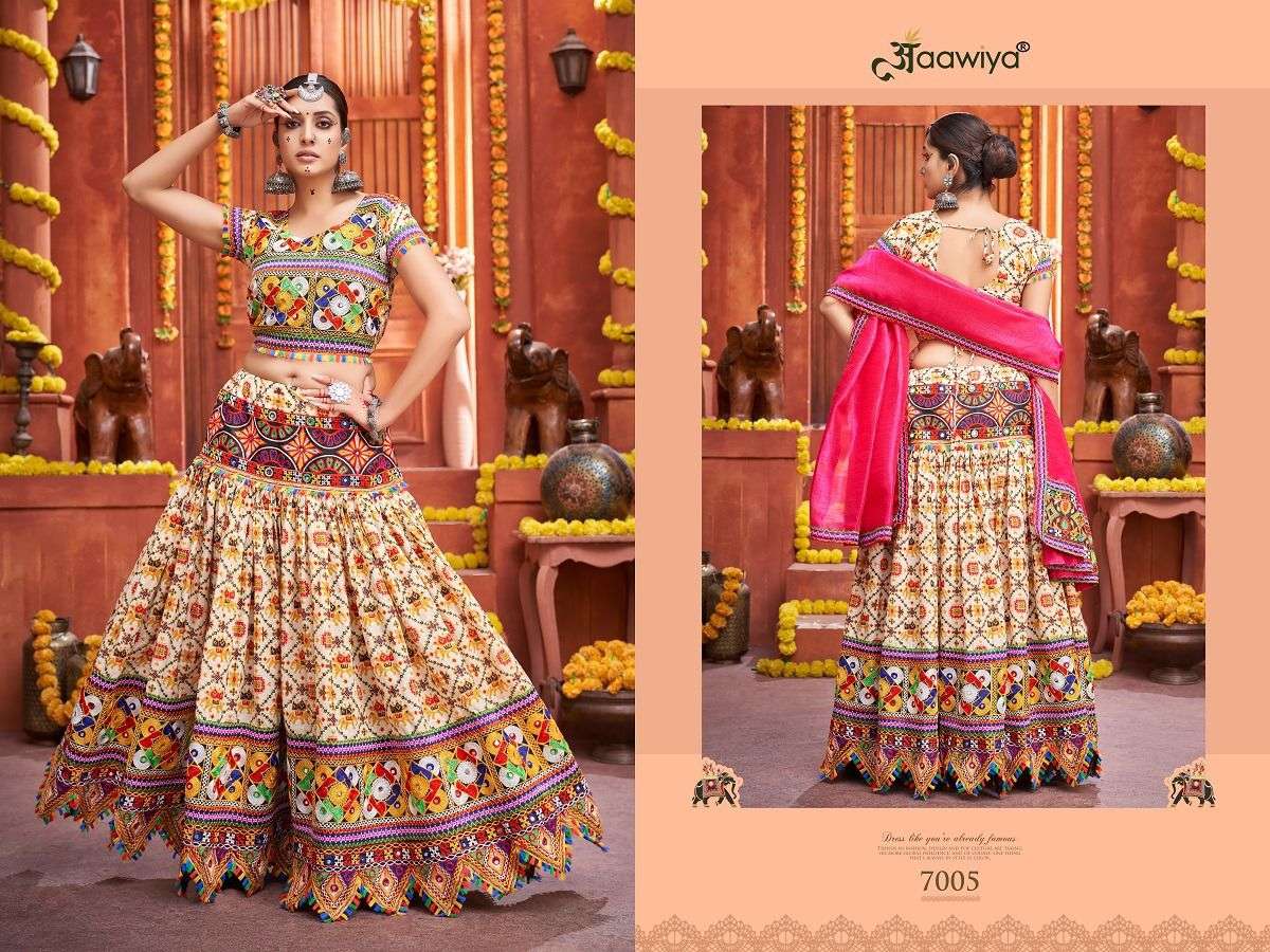 AAWIYA NAVRATRI SPECIAL TRADITIONAL CHANIYA CHOLI COLLECTION 2023 🥁🥢🥢 *RAJWADI VOL -4 * 💐 ORIGINAL PRODUCT 💐 DESIGN NO. 7005 – CREAM LEHENGA BLOUSE REGARDS |