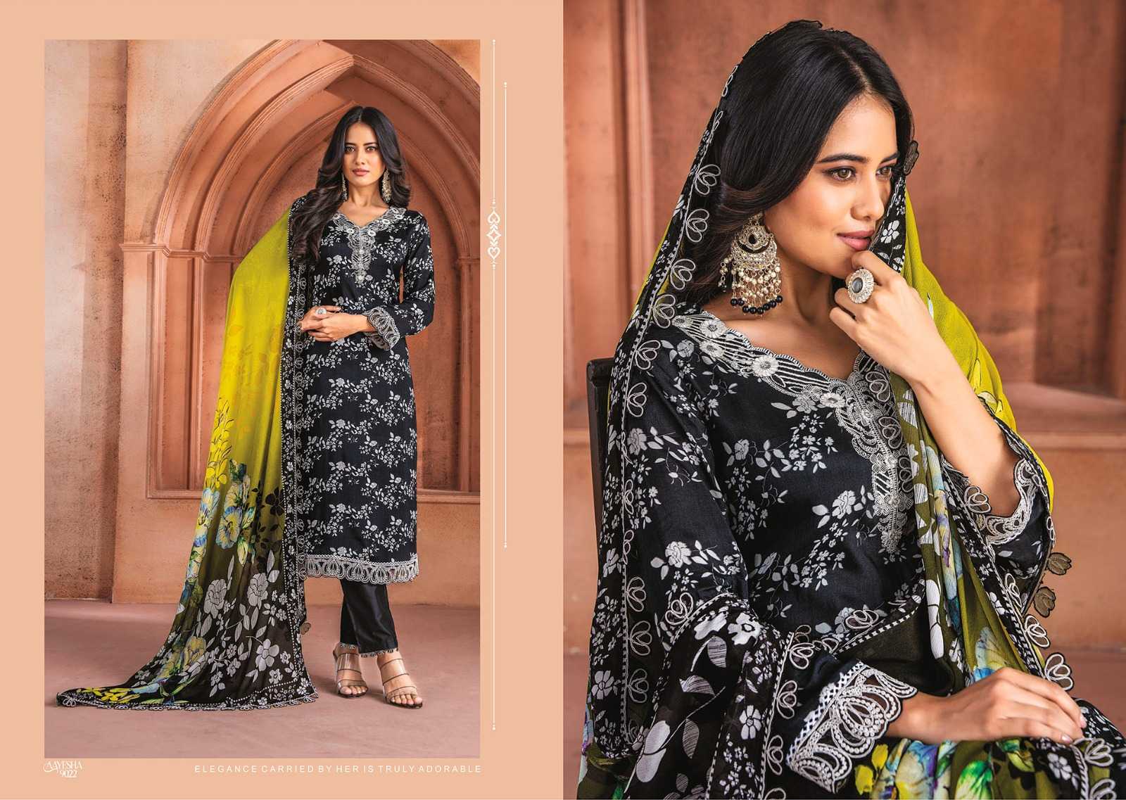 Glossy AAYESHA Fabric details attached RATE : 1695/- per pcs GST EXTRA Set to set |