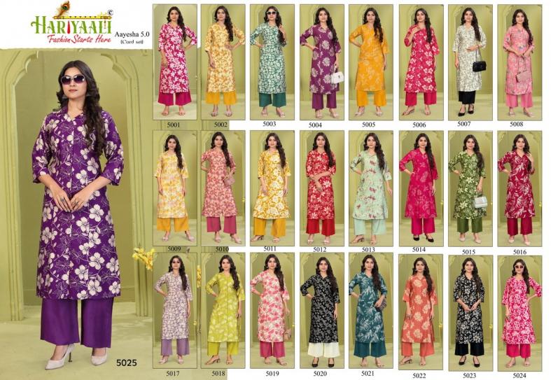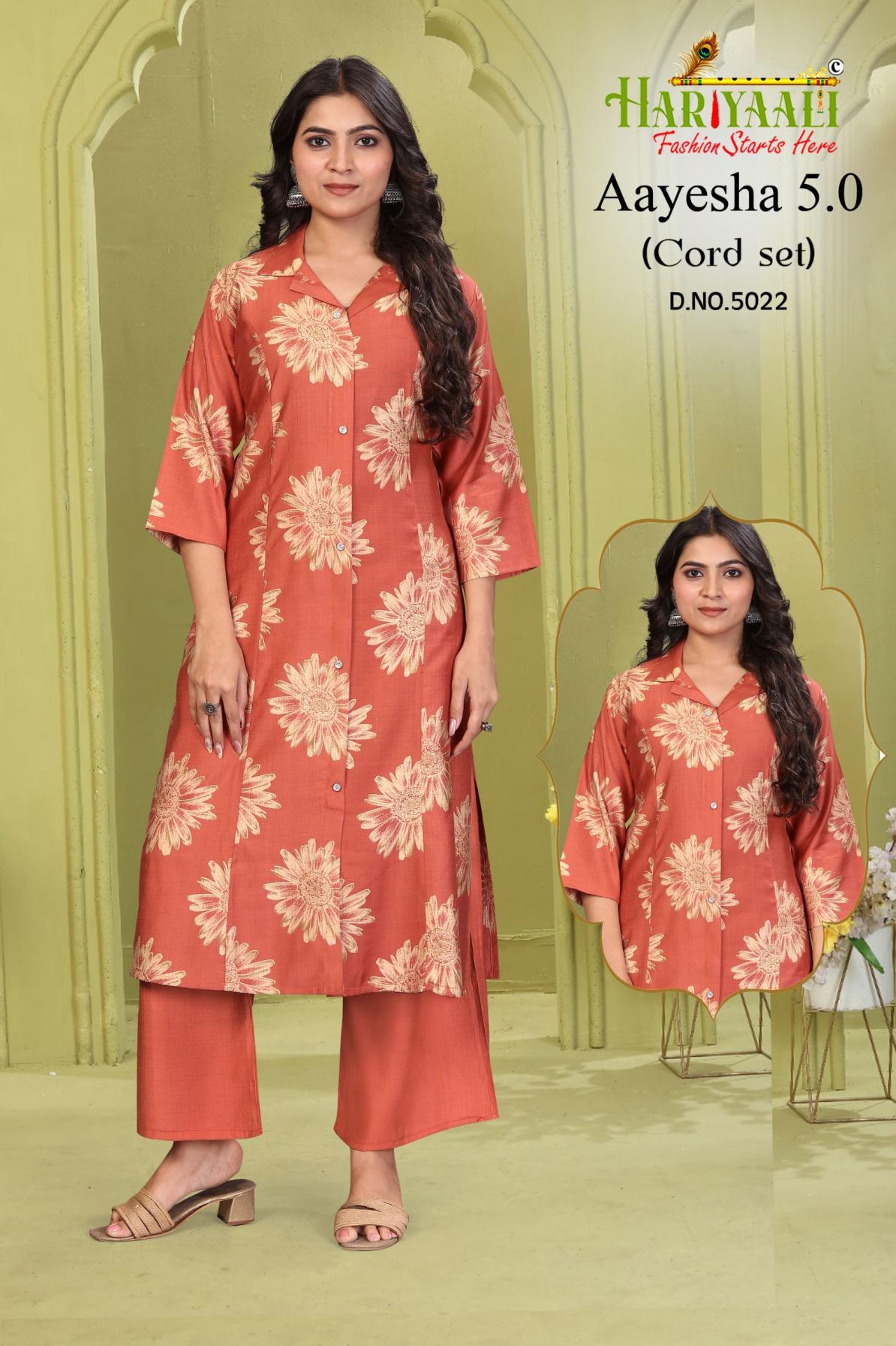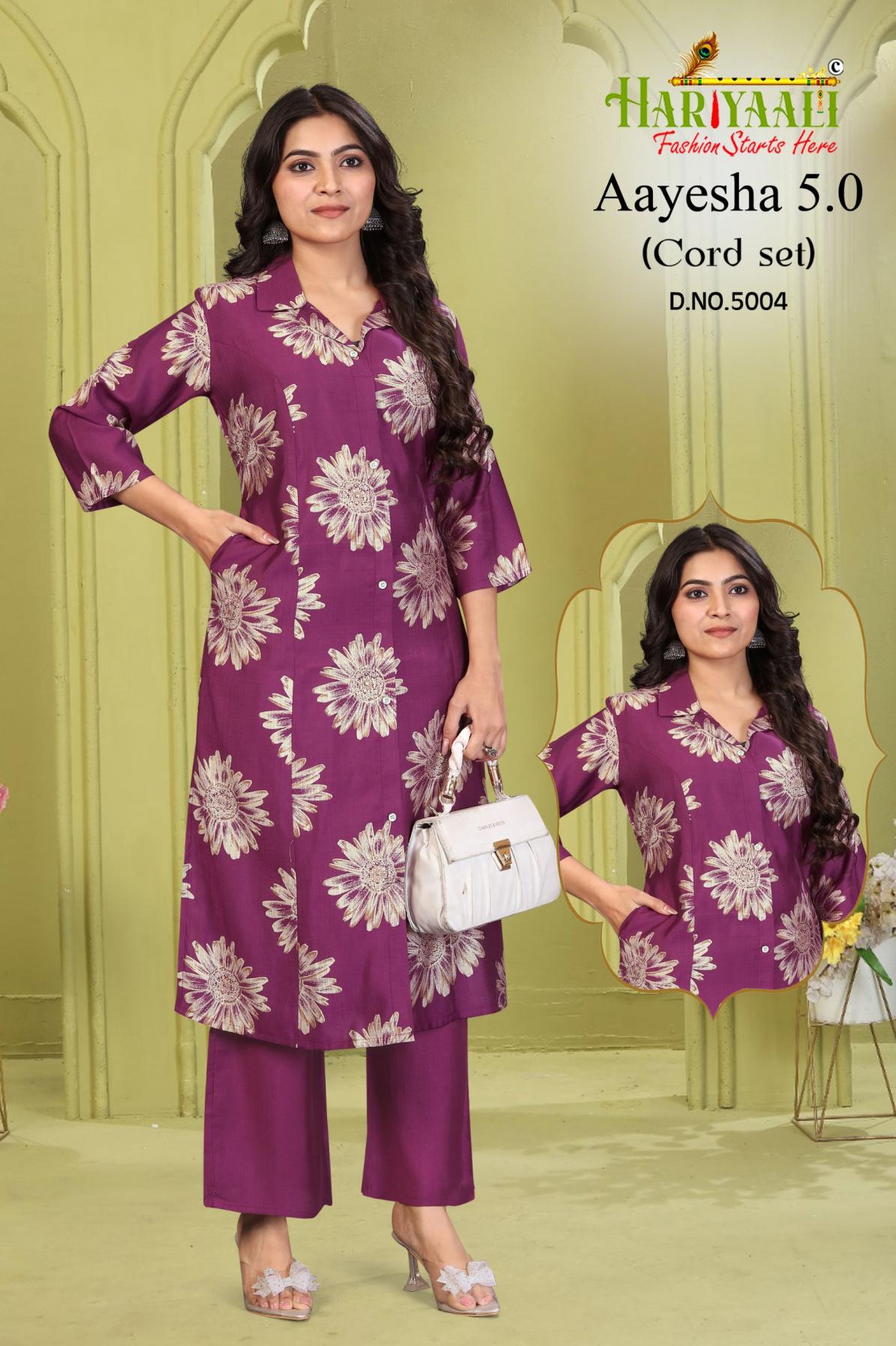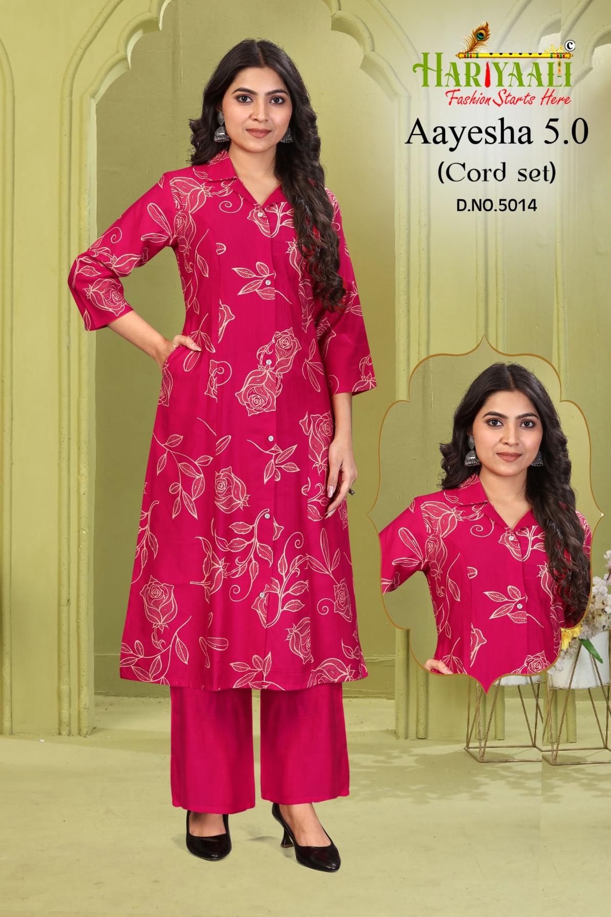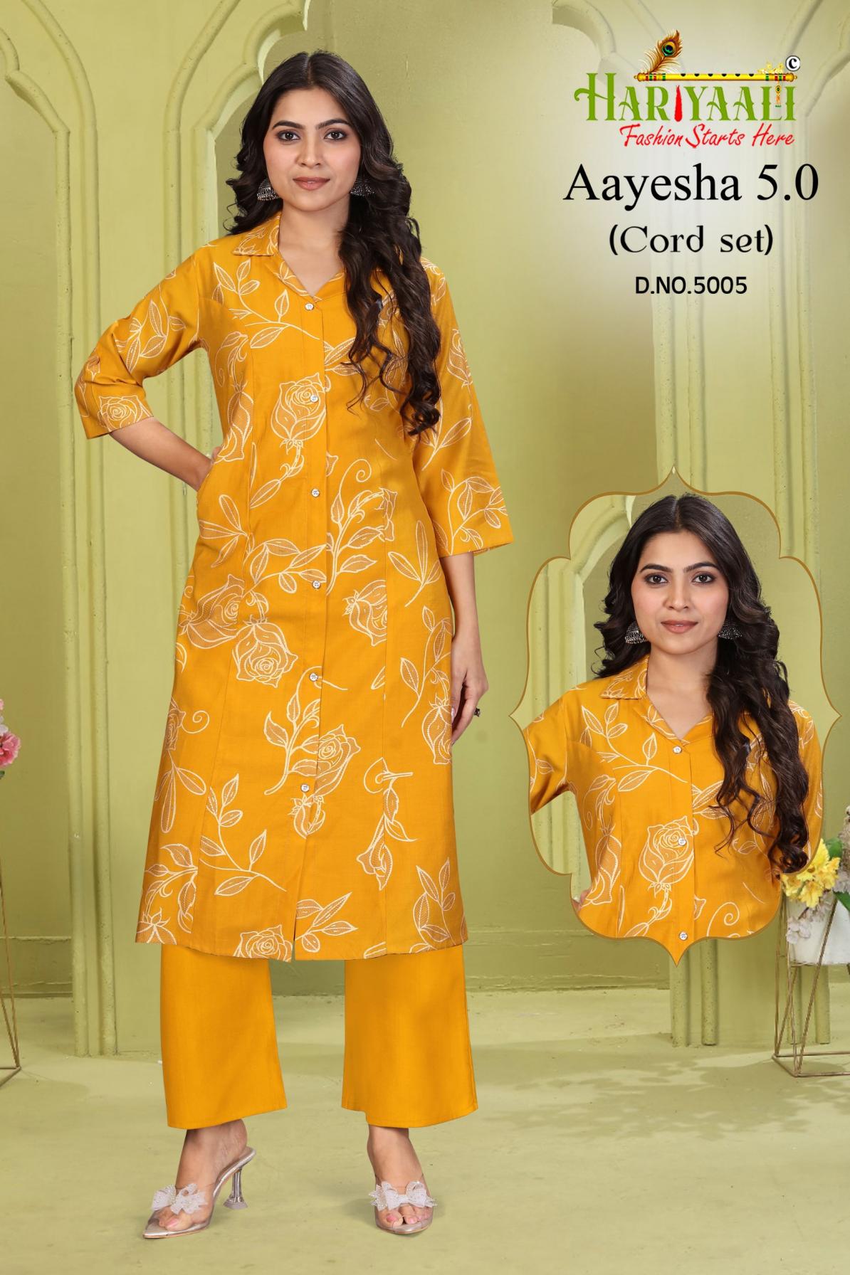 aayesha vol 5 by hariyaali vertican silk fully stitch elegance combo set kurti with pant