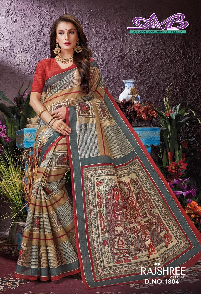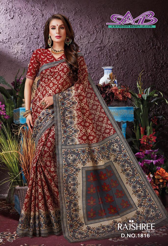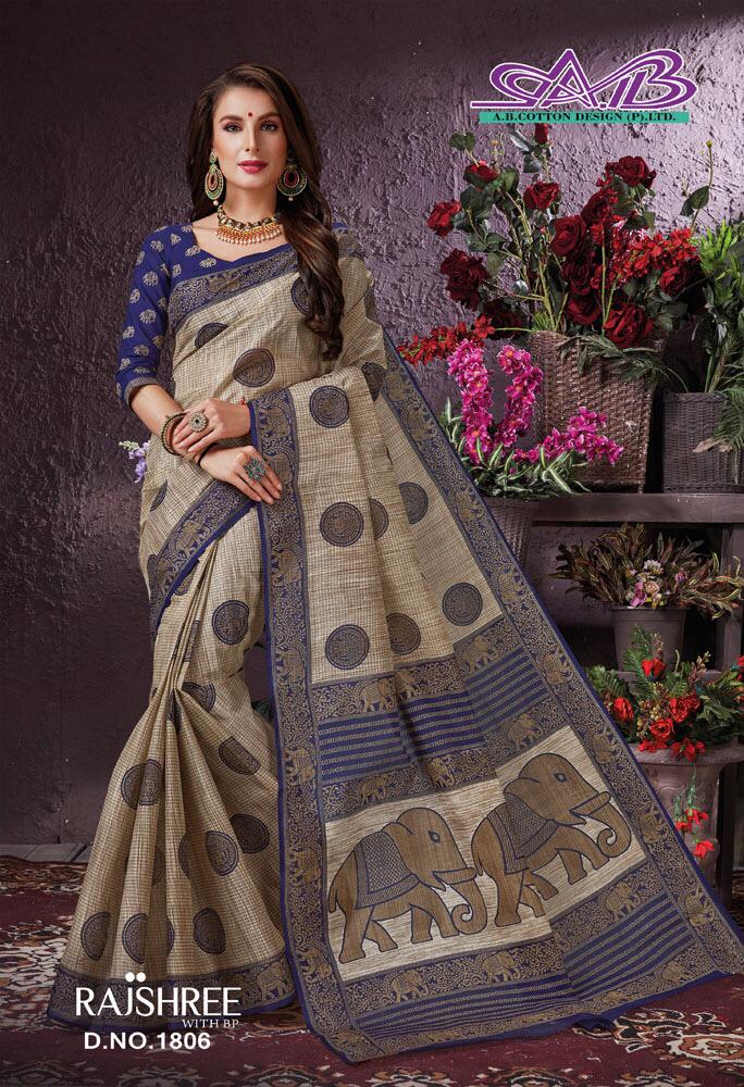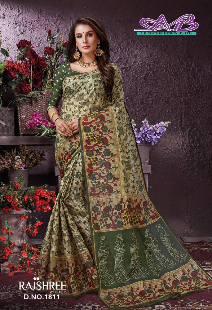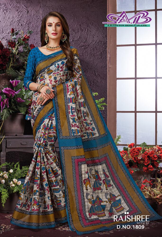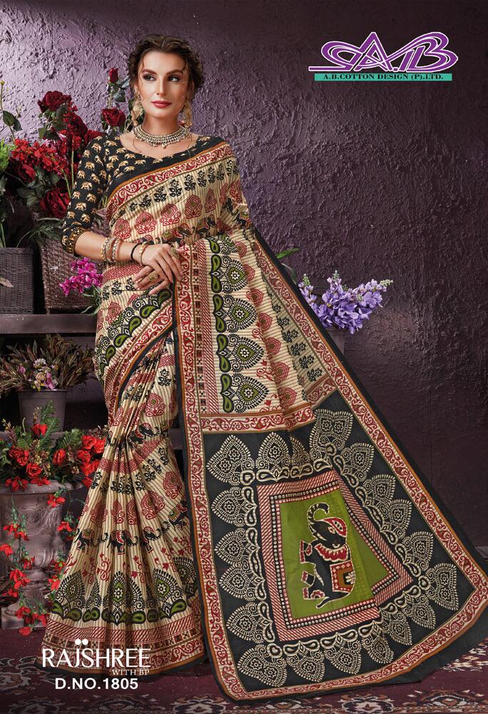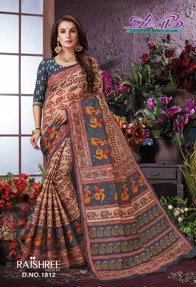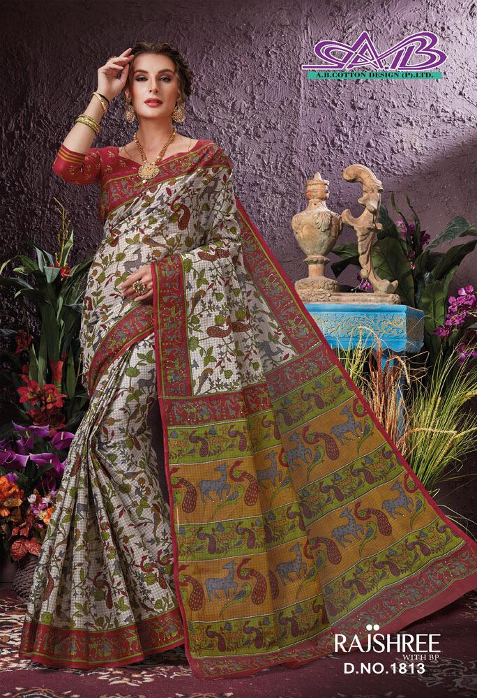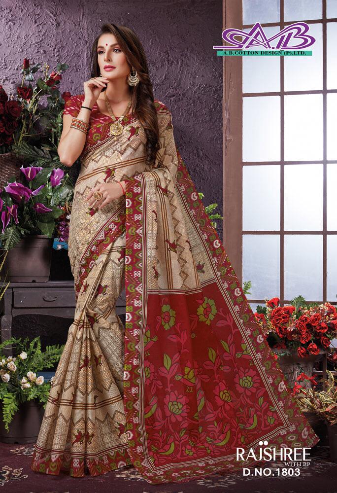 Ab Coton Present Rajshree Mulmul Cotton Special Print Saree Wholesale Rate