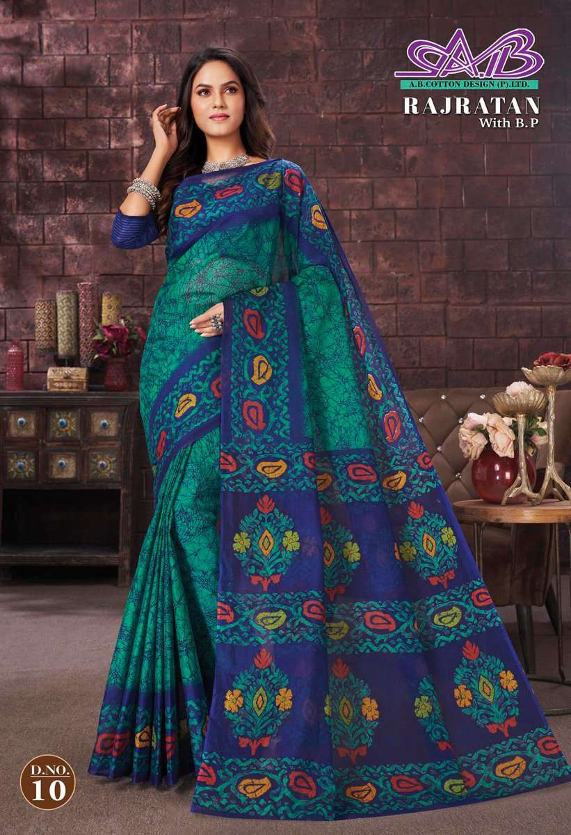 ab cotton design present raj ratan single colour matching sarees wholesaler