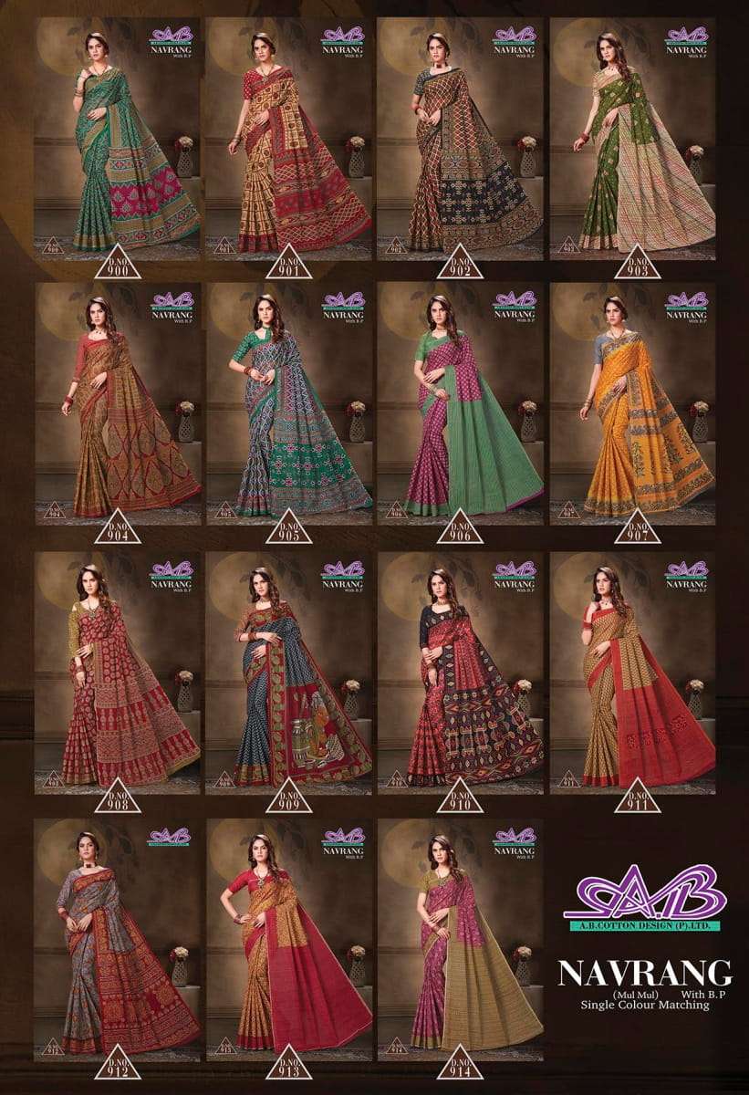 ab cotton navrang mul mul cotton saree with blouse piece best rate