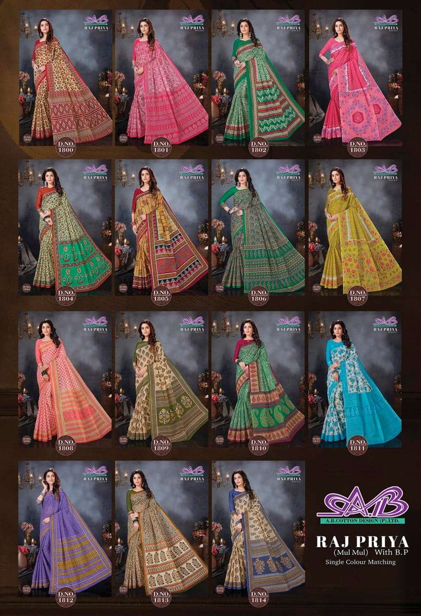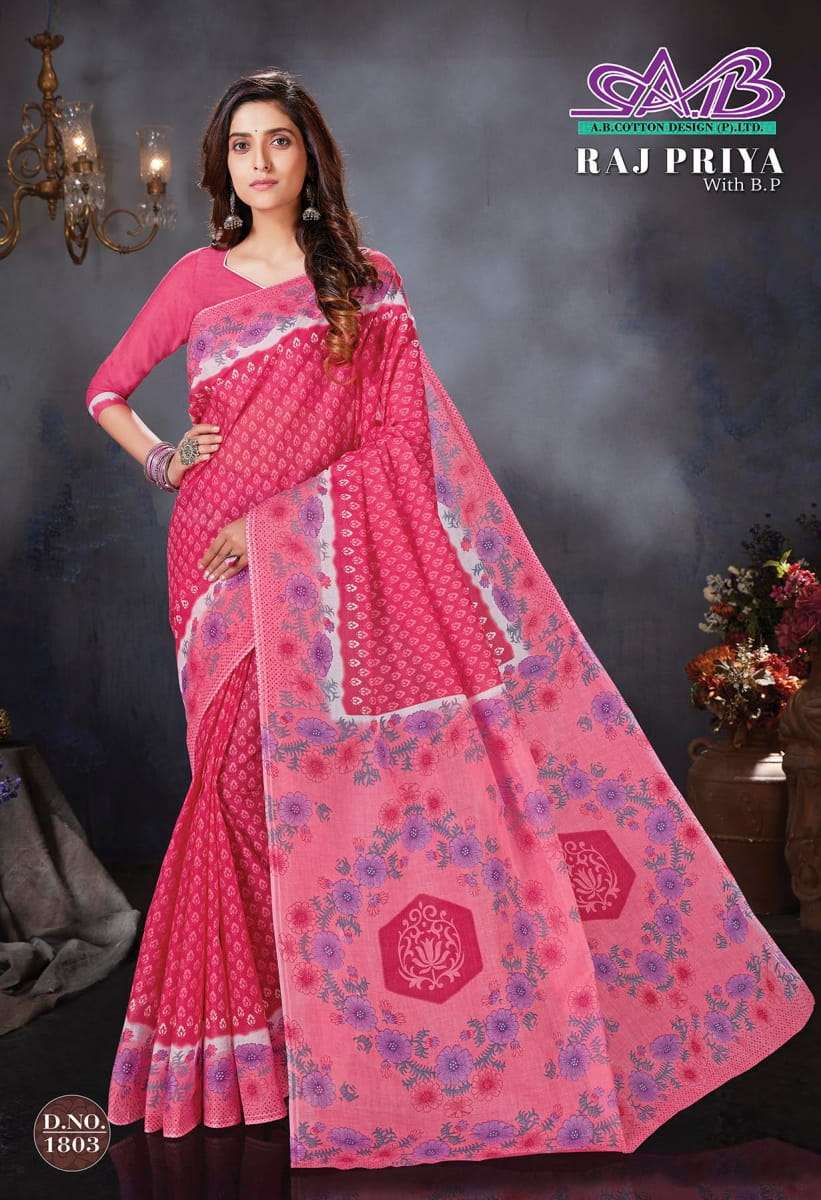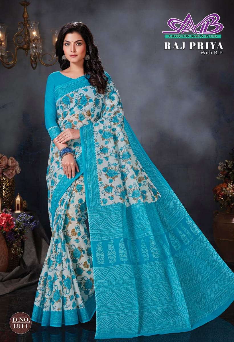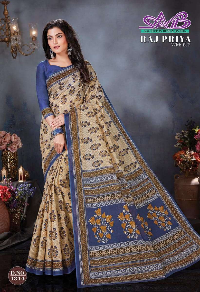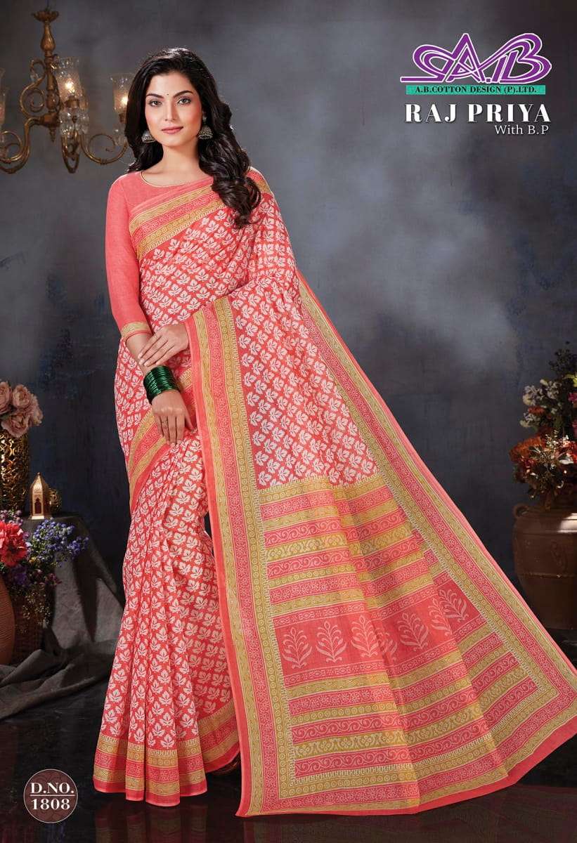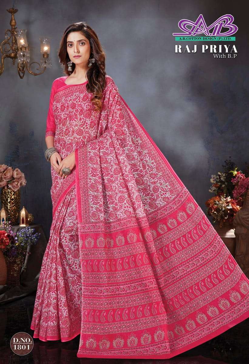 ab cotton raj priya mul mul cotton saree with blouse piece