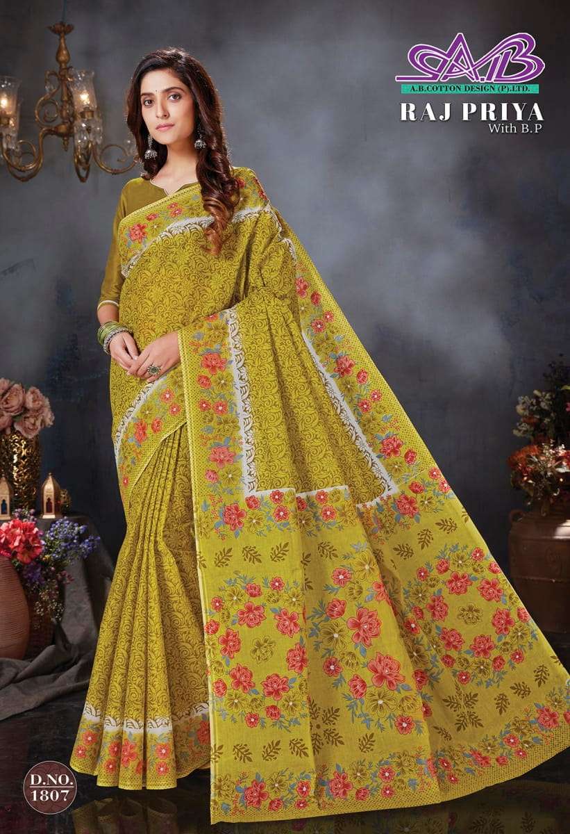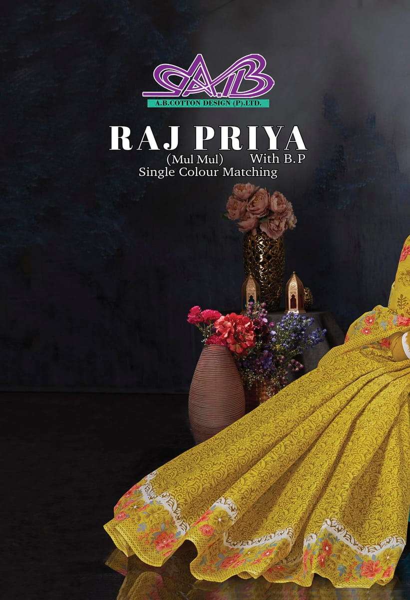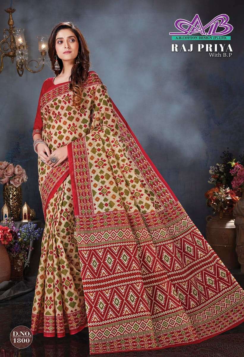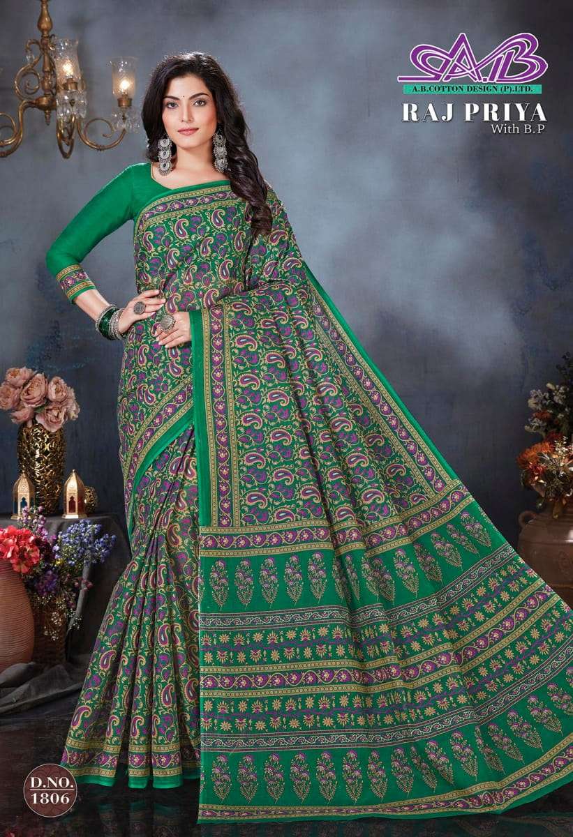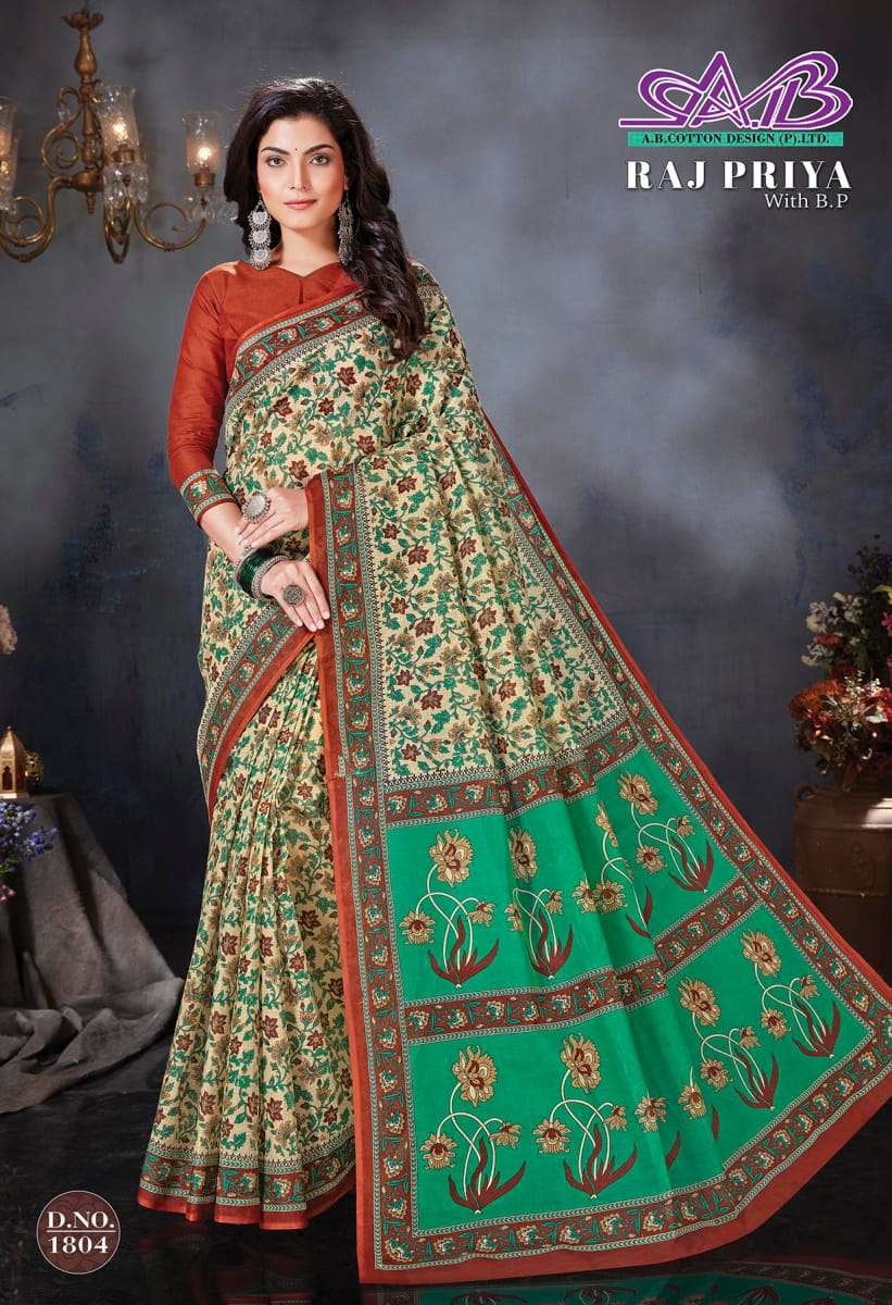 ab cotton raj priya mul mul cotton saree with blouse piece