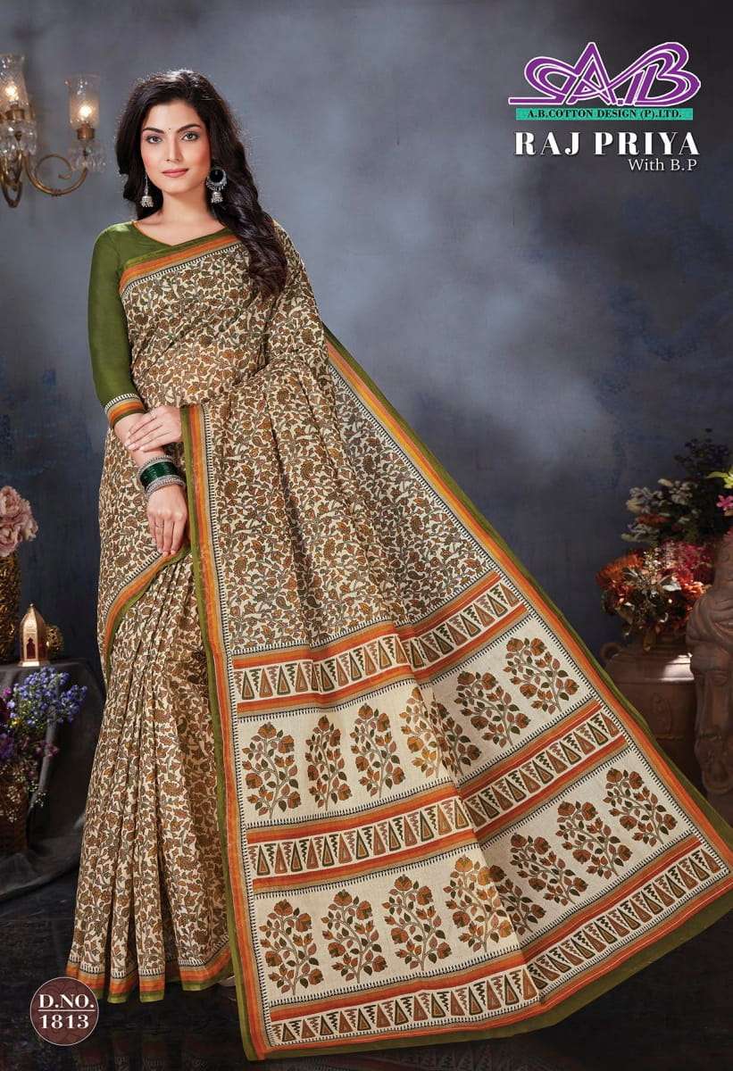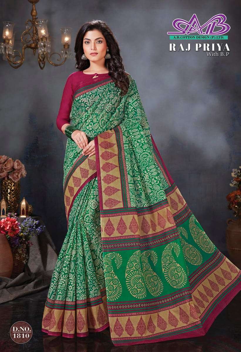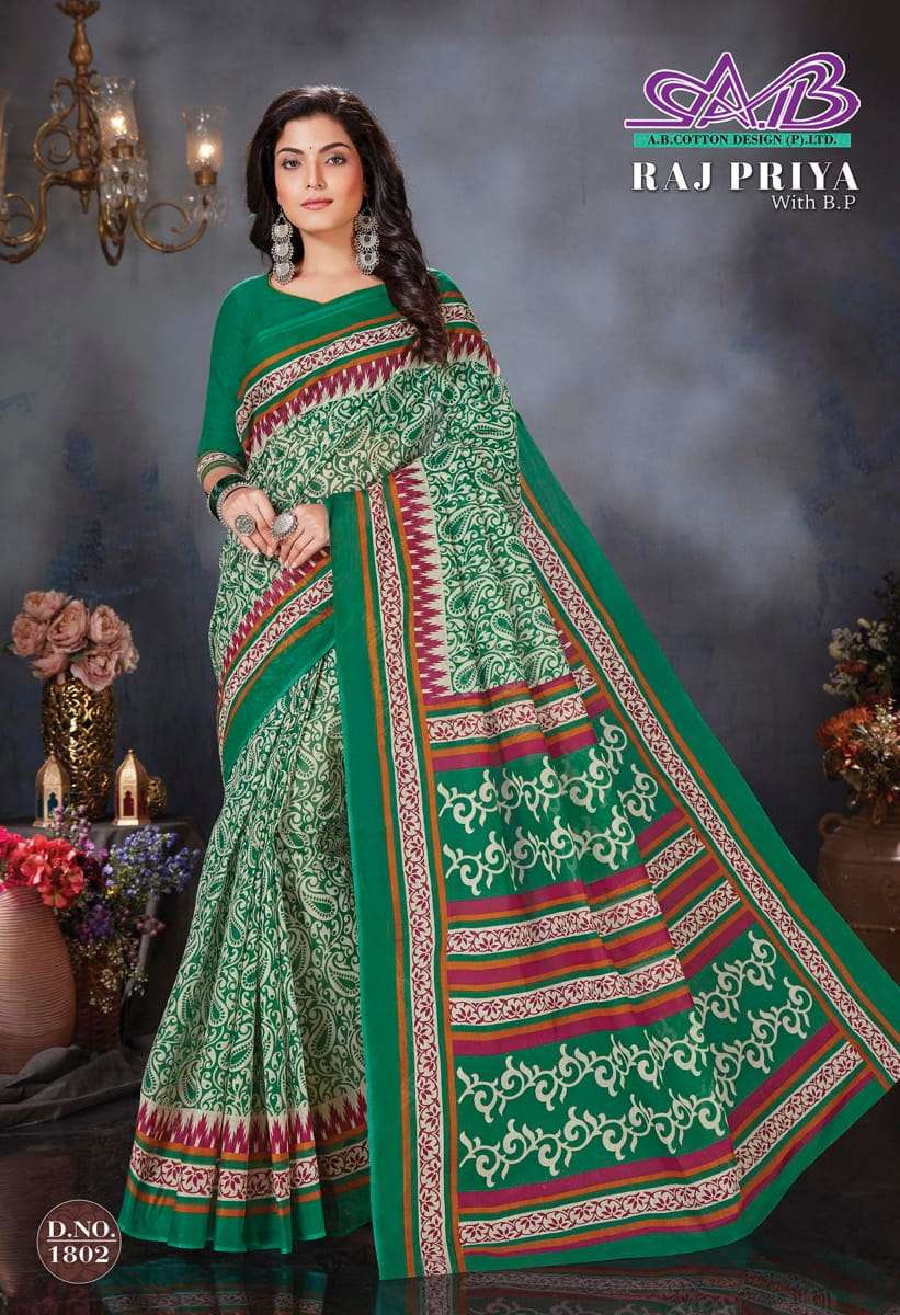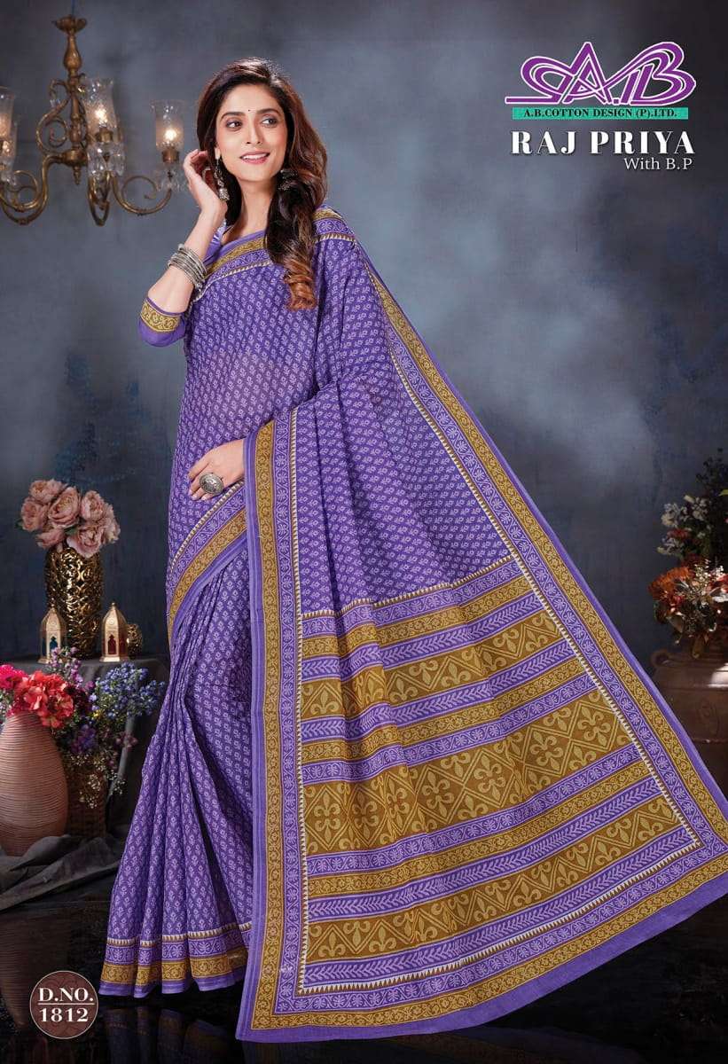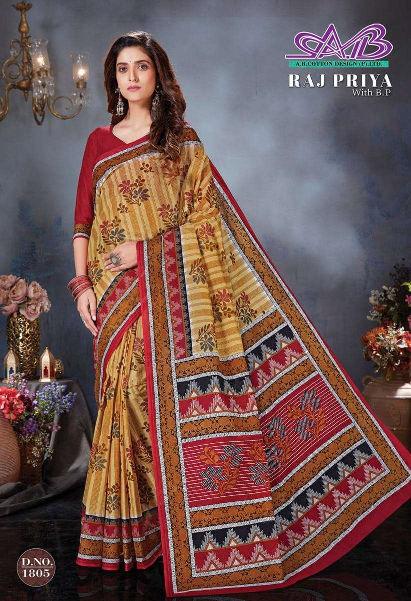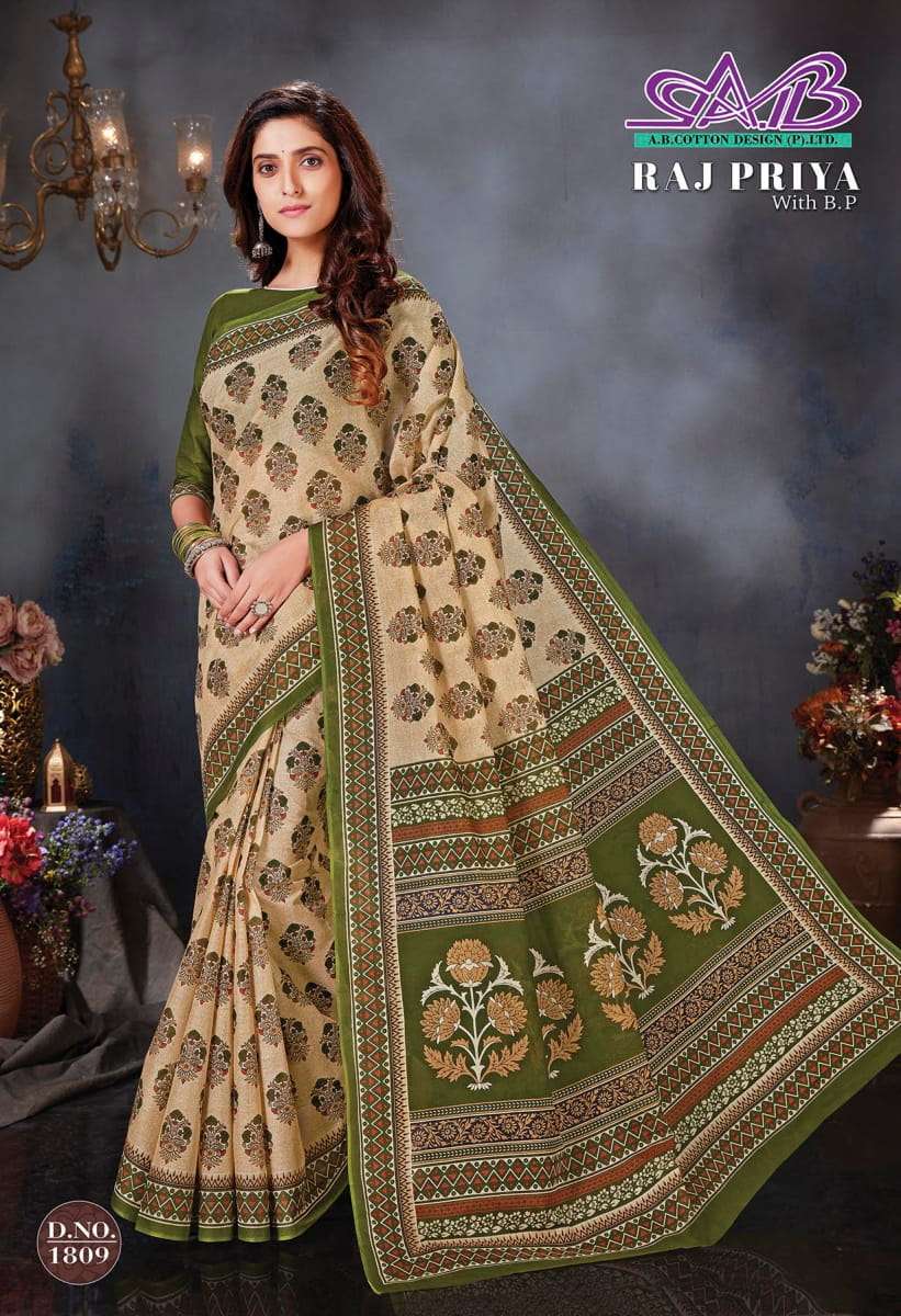 ab cotton raj priya mul mul cotton saree with blouse piece