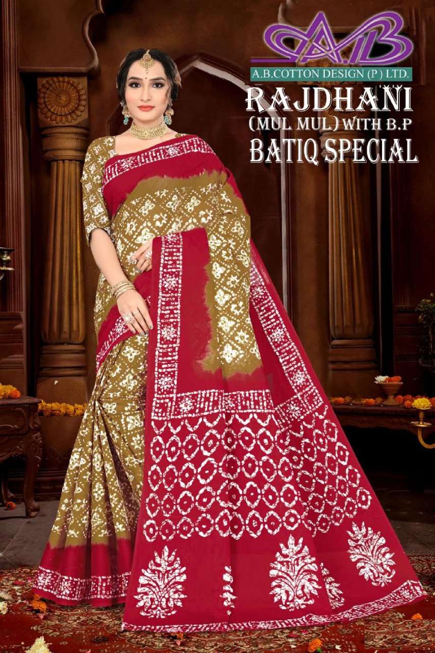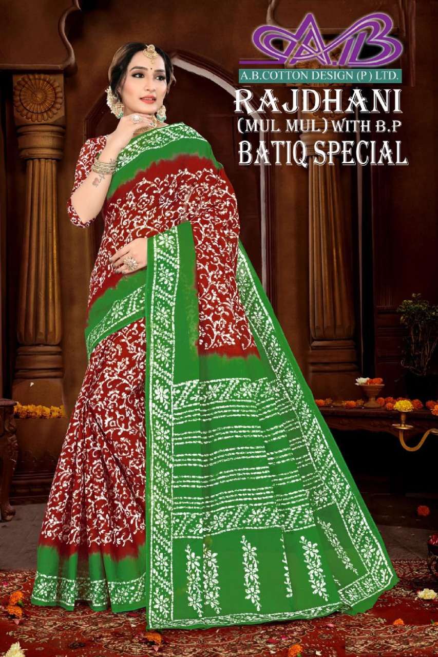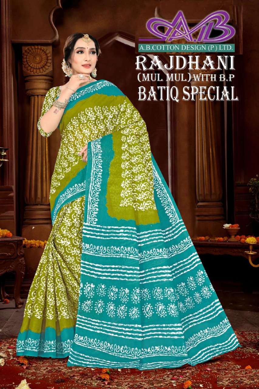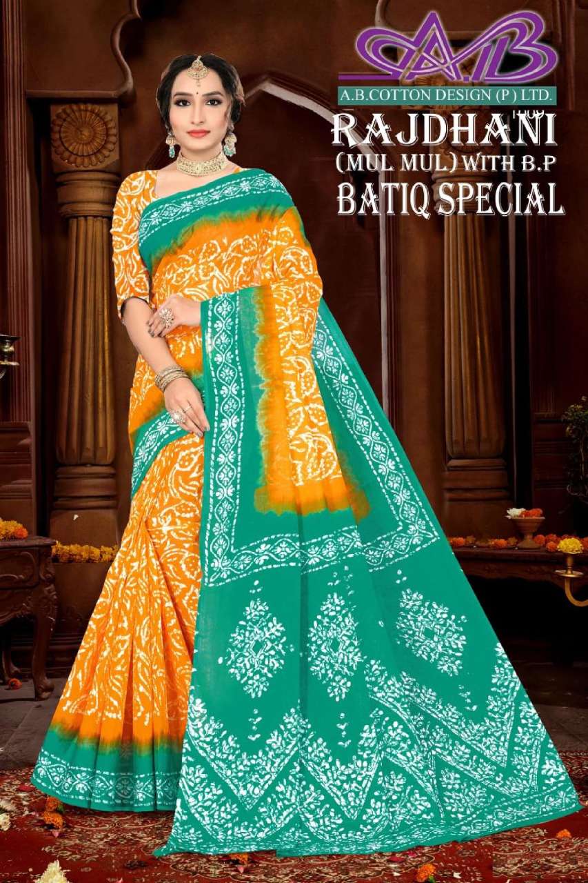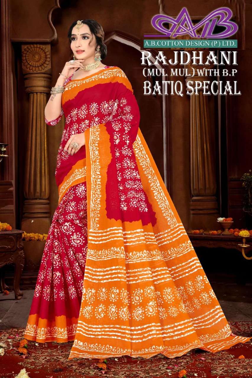 ab cotton rajdhani batick special cotton saree with blouse piece