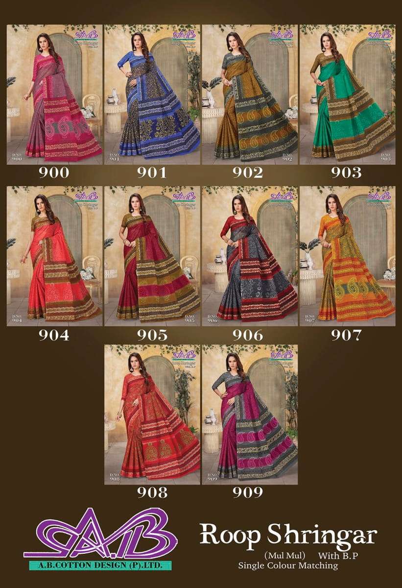 ab cotton roop shringar mul mul cotton saree with blouse piece