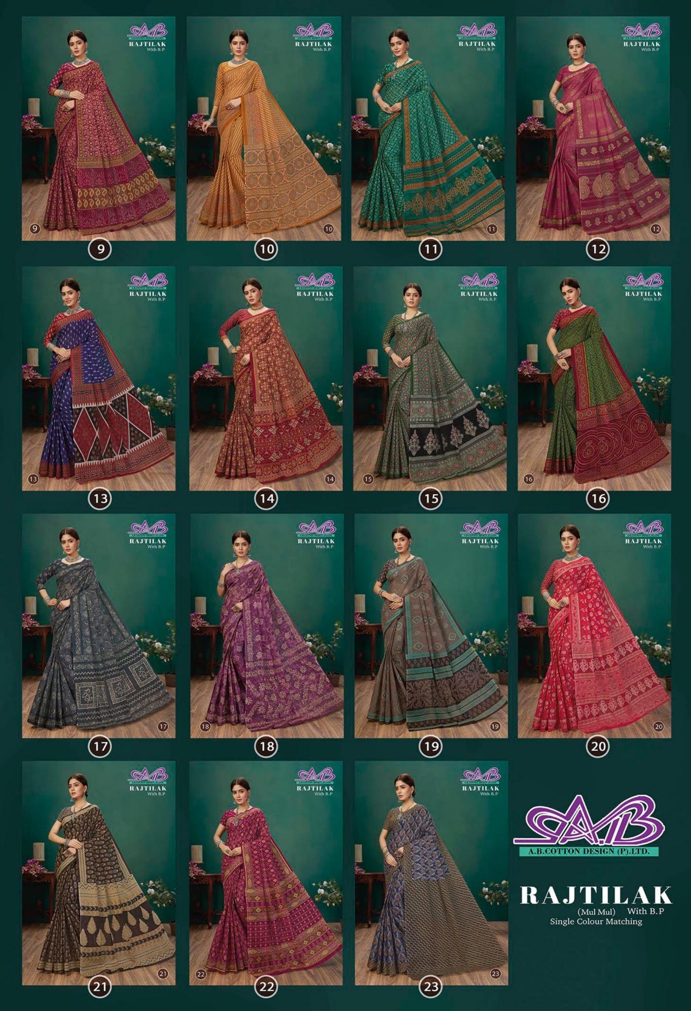 ab launch raj tilak mul mul cotton hit design saree wholesaler