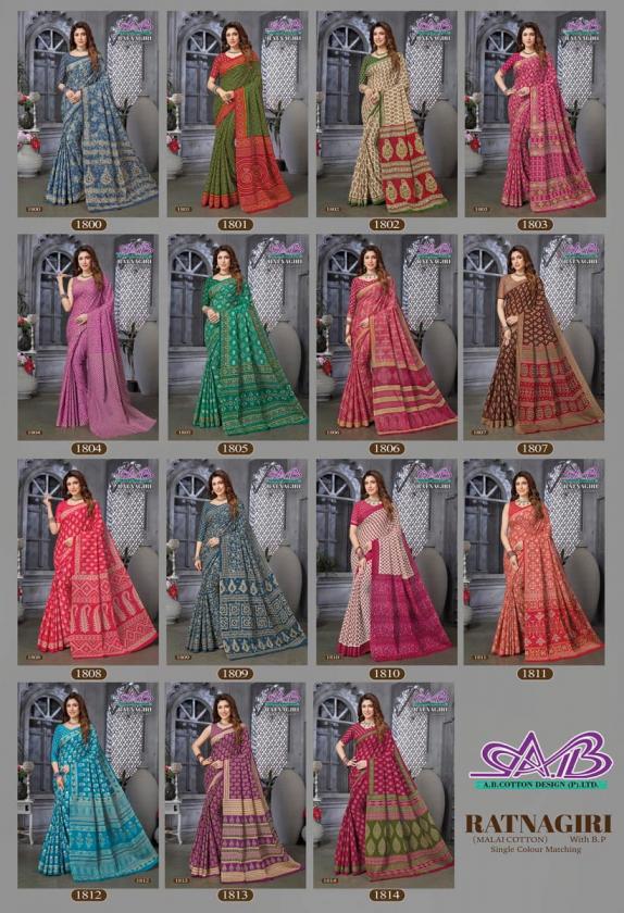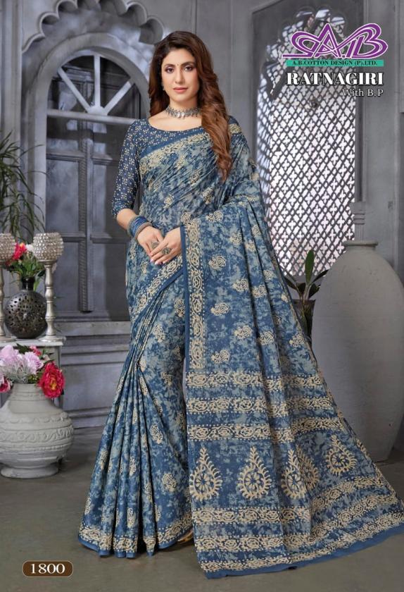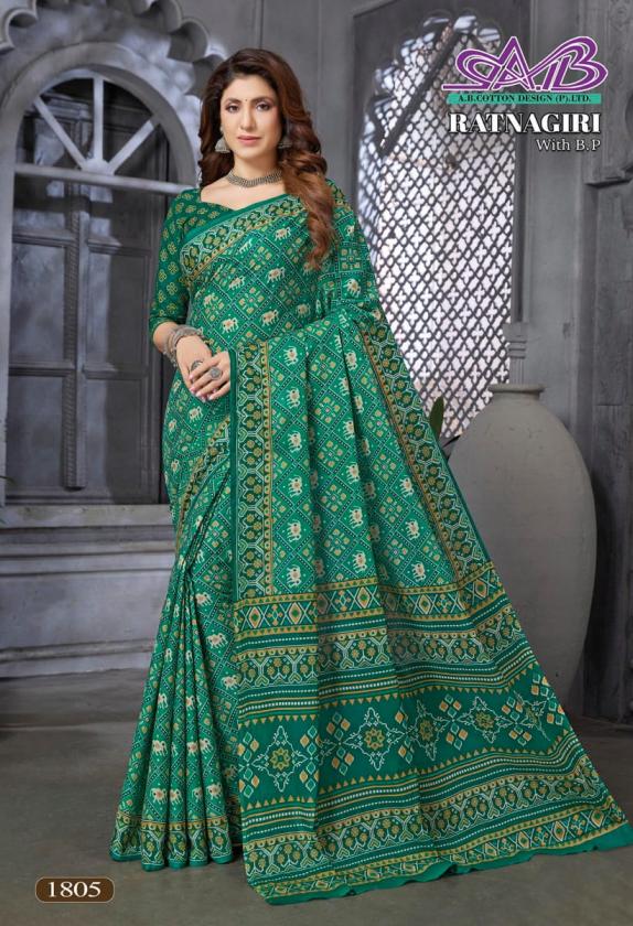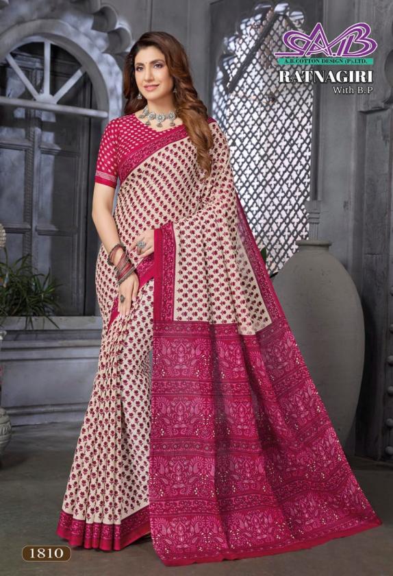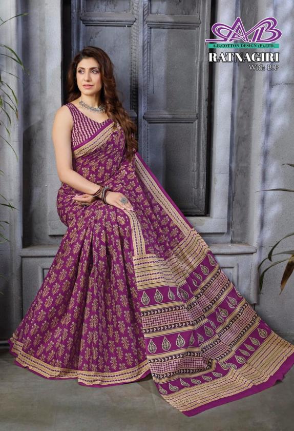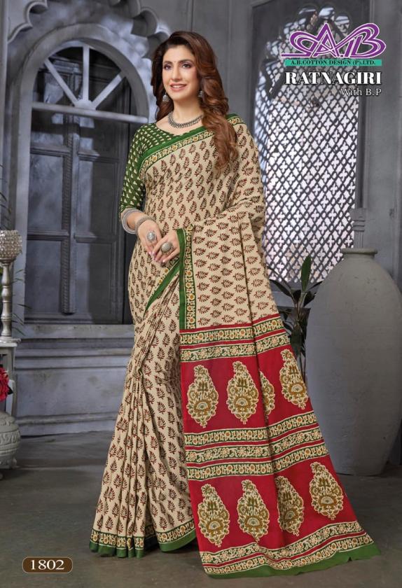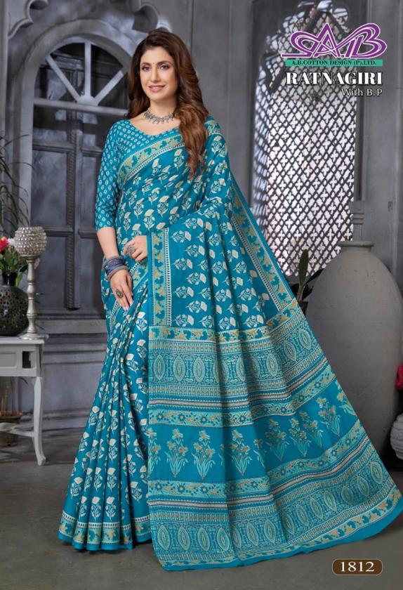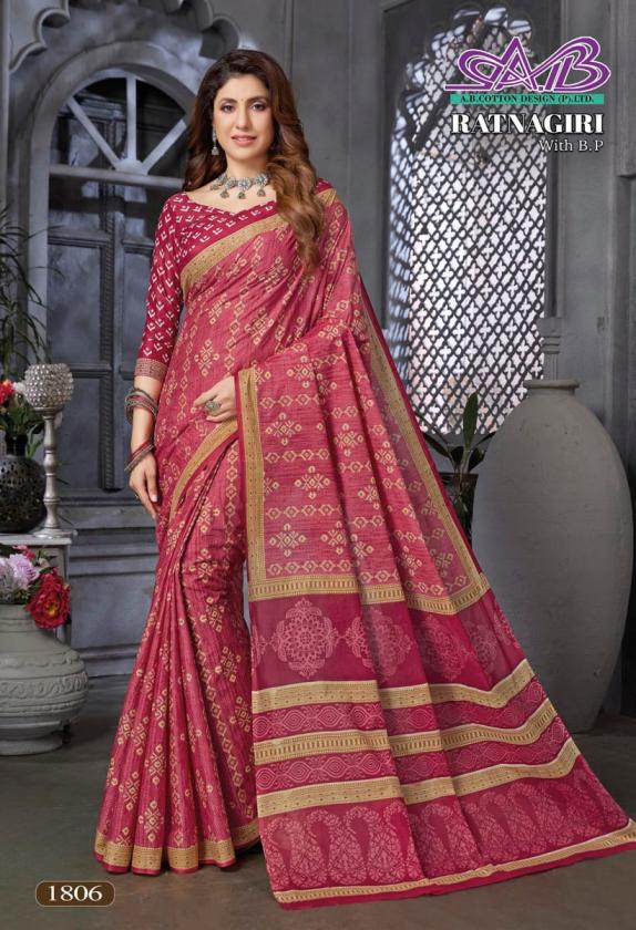 BRAND : AB CATALOGUE : RATNAGIRI MALAI COTTON PRINT SAREE WITH BLOUSE RATE 535/- |