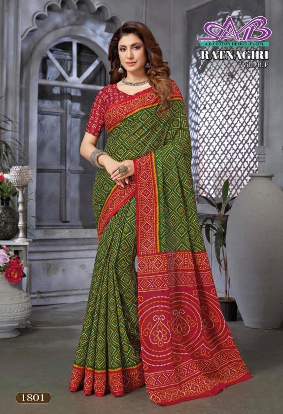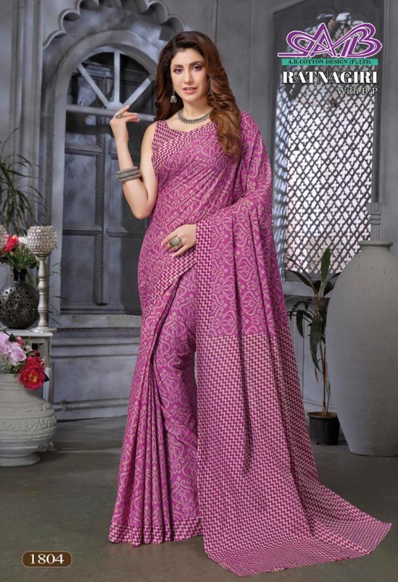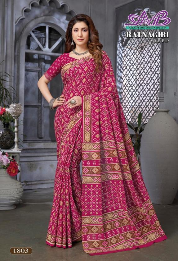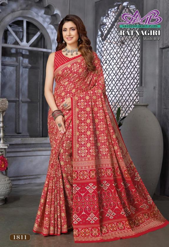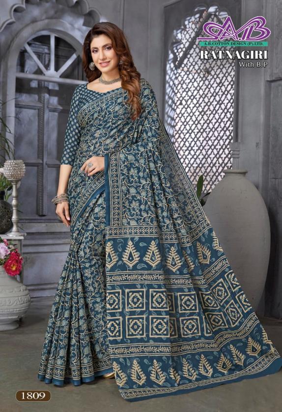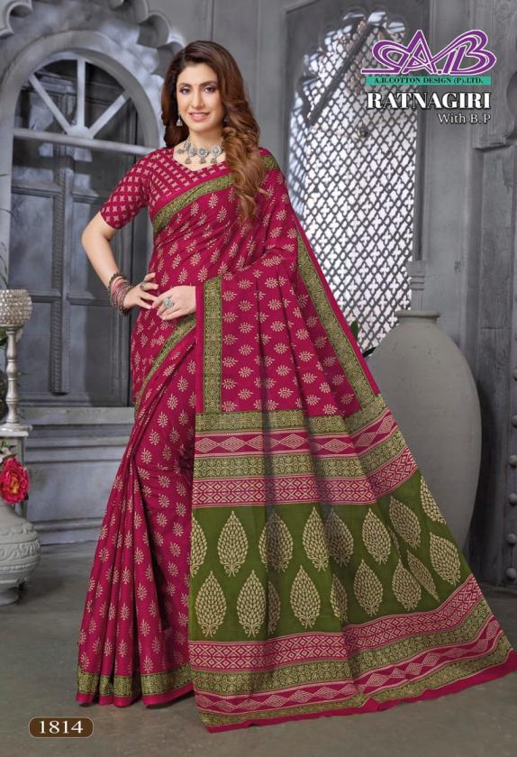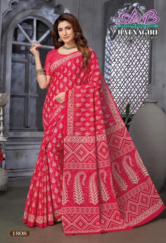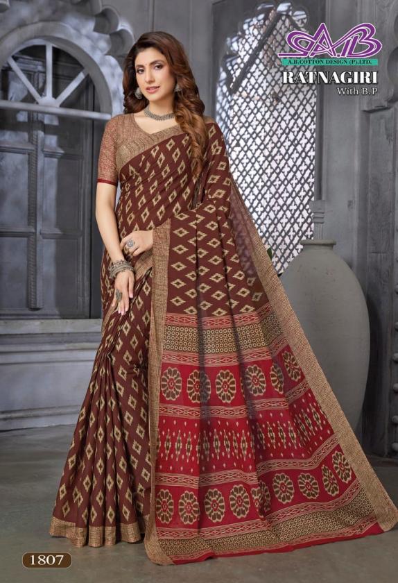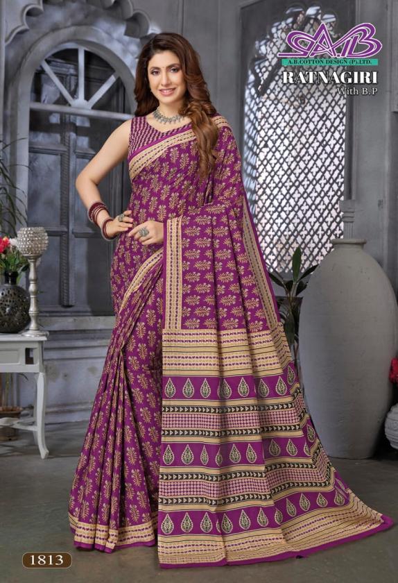 BRAND : AB CATALOGUE : RATNAGIRI MALAI COTTON PRINT SAREE WITH BLOUSE RATE 535/- |