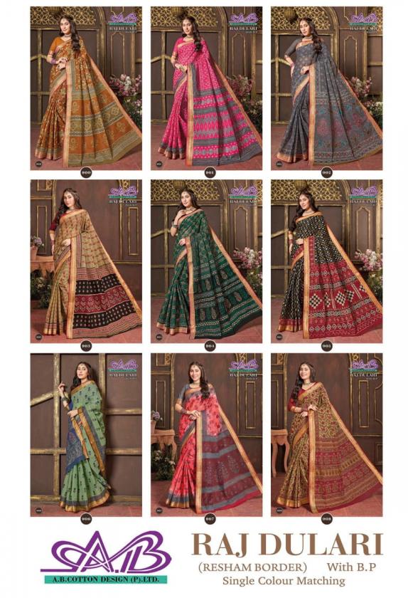 ab presents raj dulari cotton daily wear fancy sarees
