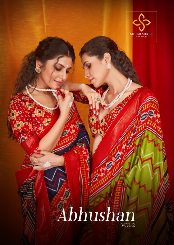 abhushan vol 2 by shubh shree creation velvet tussar silk saree