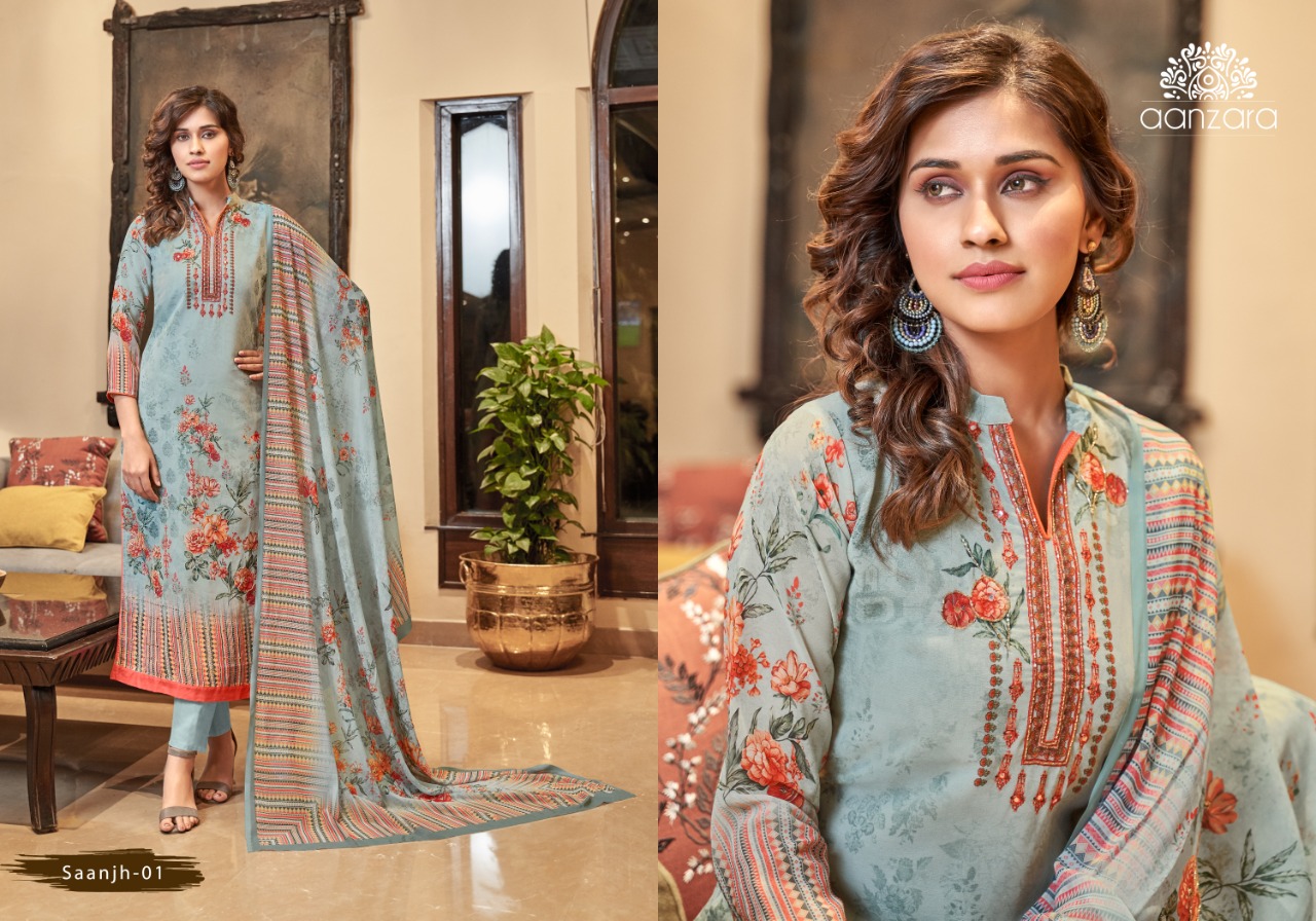 Acme Weavers Present Aanzara Saanjh Geprgette With Handwork Salwar Suit