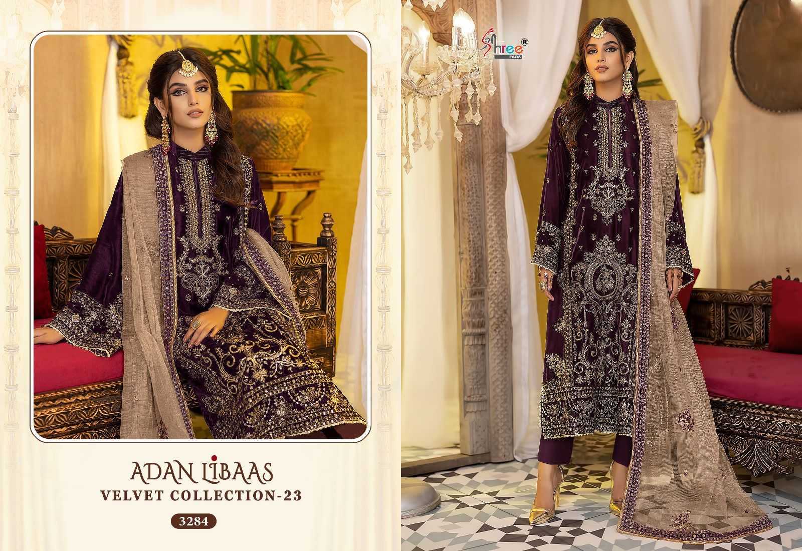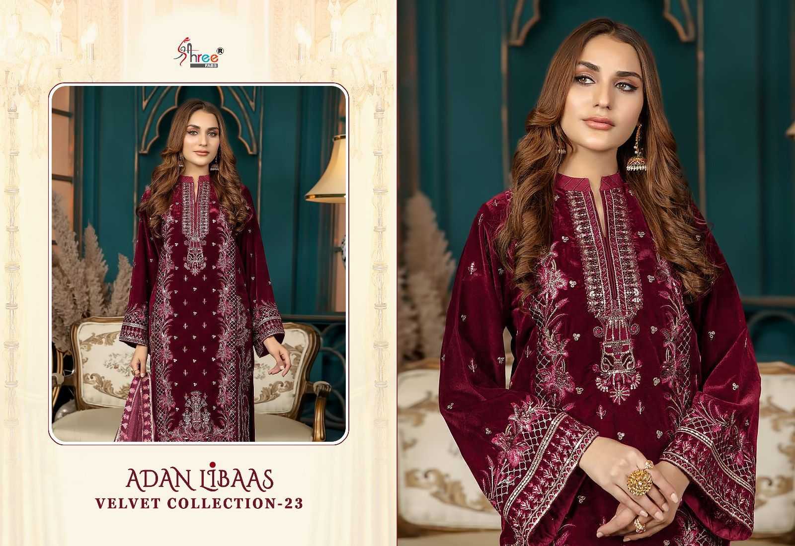 adan libaas velevt collection 23 by shree fab designer winter wear unstitch salwar kameez