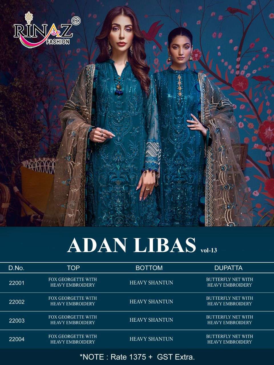 adan libas vol 13 by rinaz georgette pakistani work party wear suits