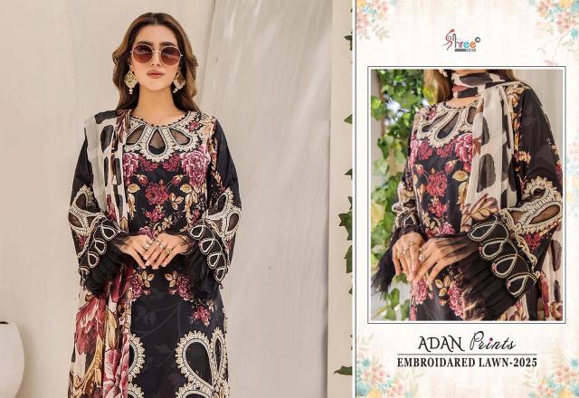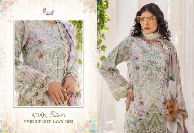 adan prints embroidered lawn 2025 by shree fab cotton dress material
