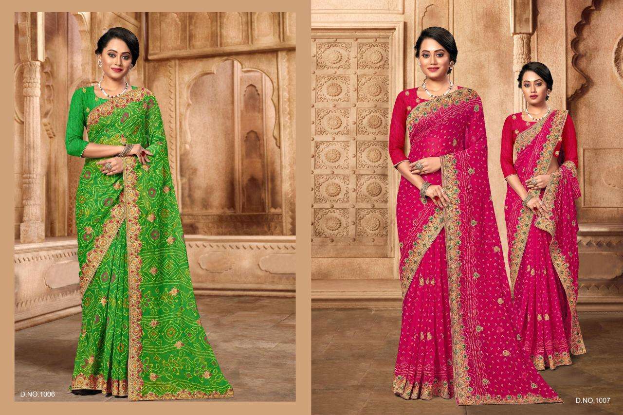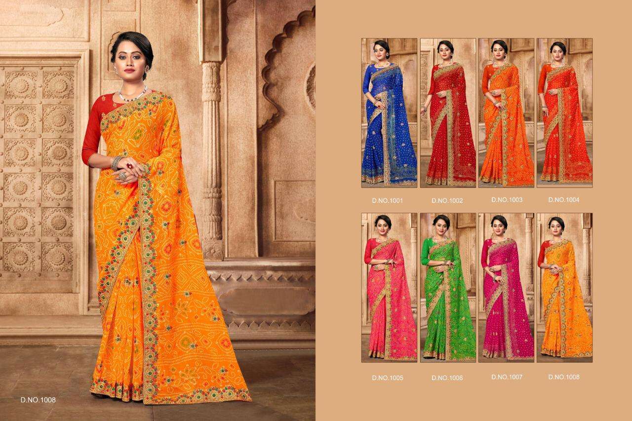 aditi by jalnidhi georgette embroidery bandhani saree collection