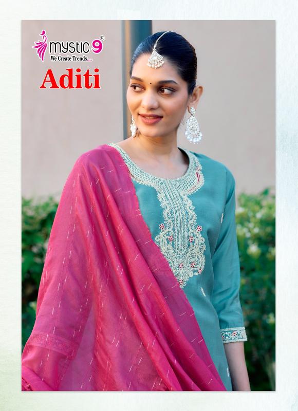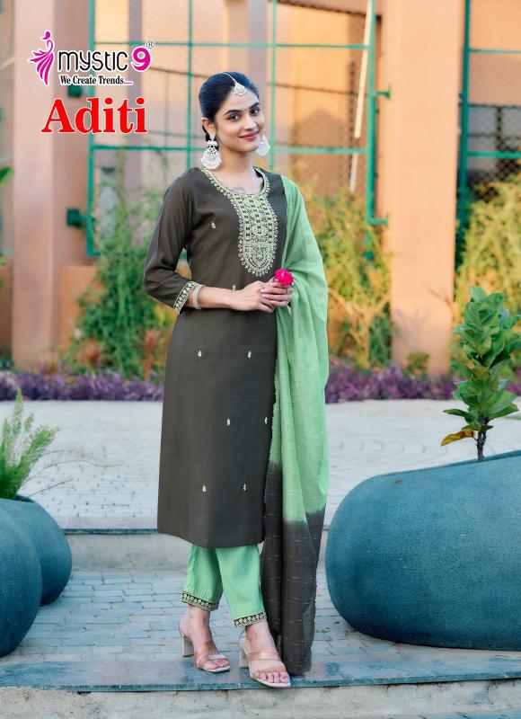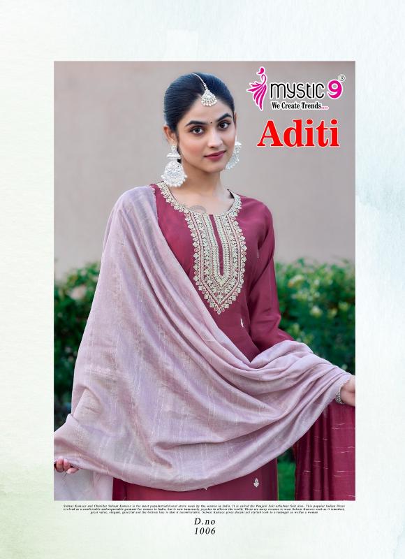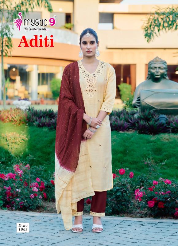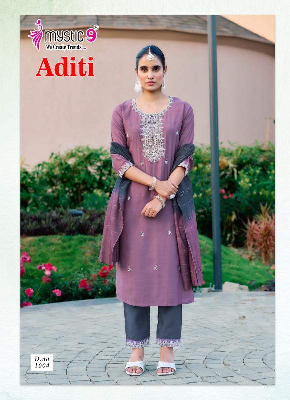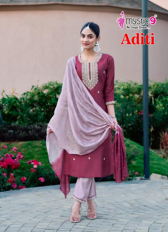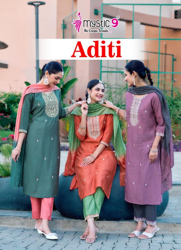 aditi vol 1 by mystic9 roman silk readymade exclusive 3pcs dress
