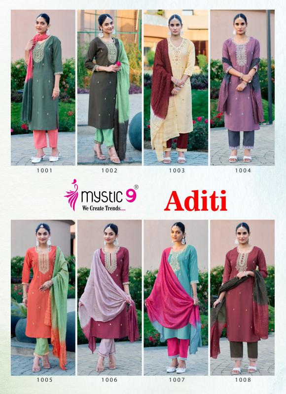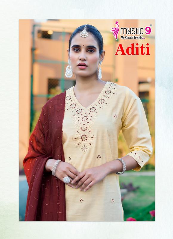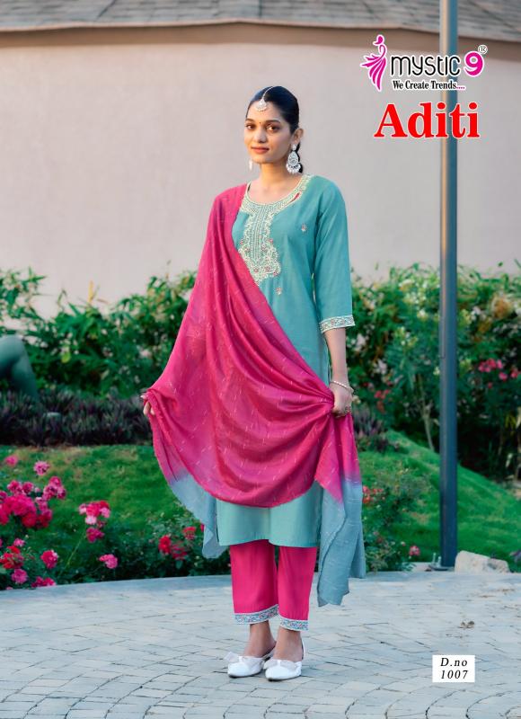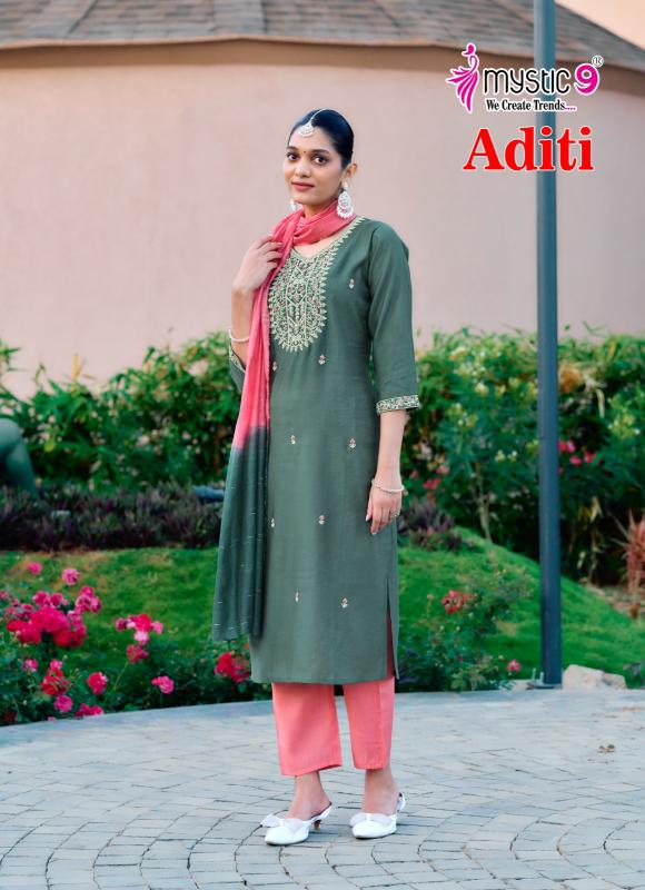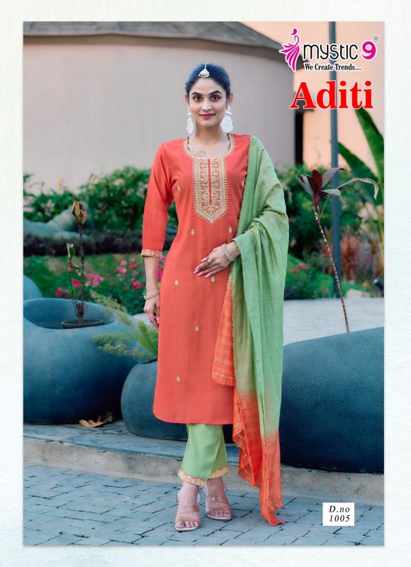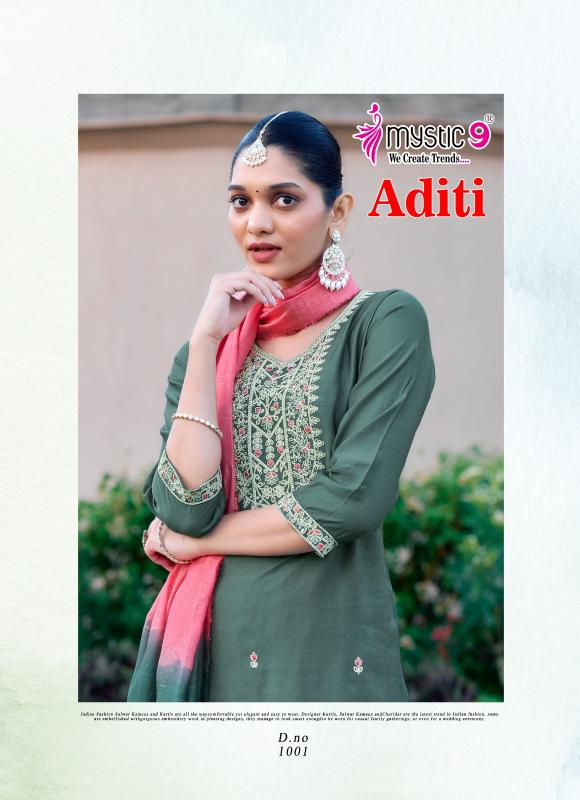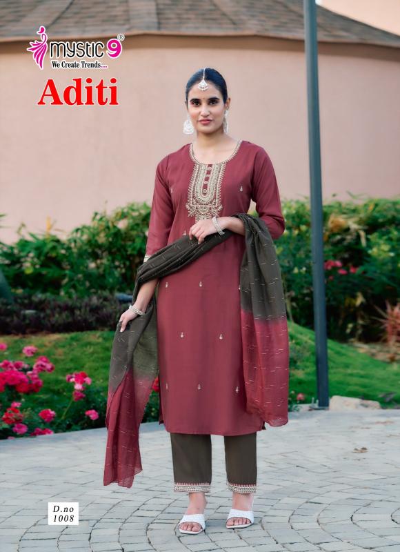 aditi vol 1 by mystic9 roman silk readymade exclusive 3pcs dress