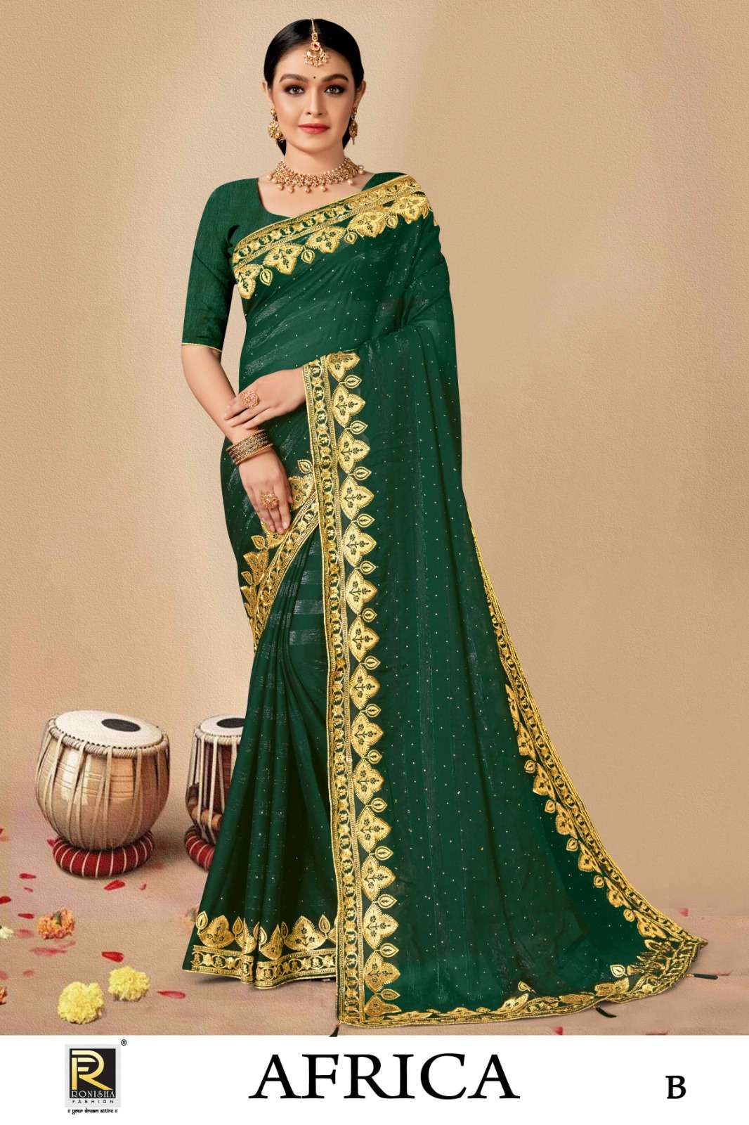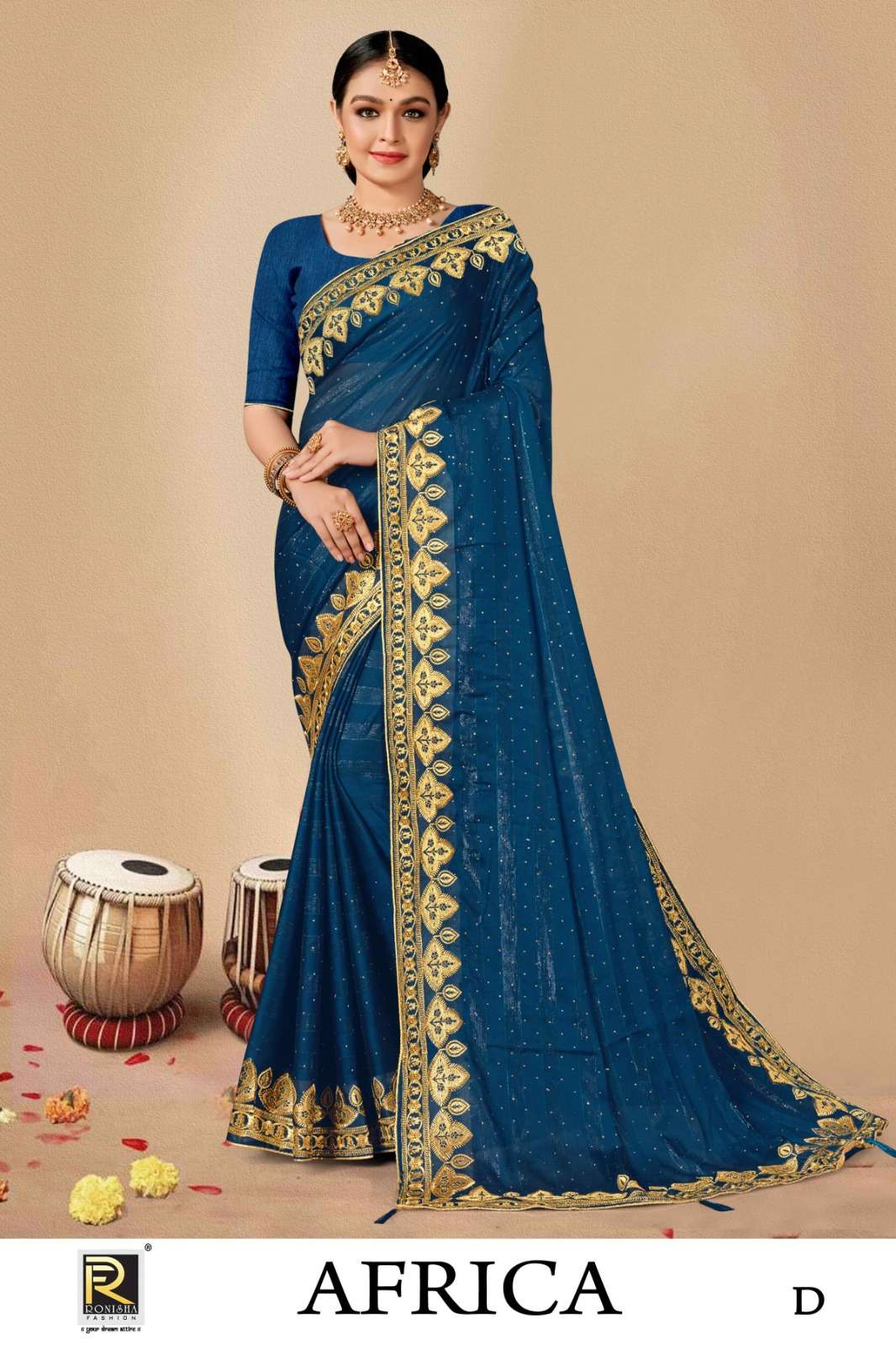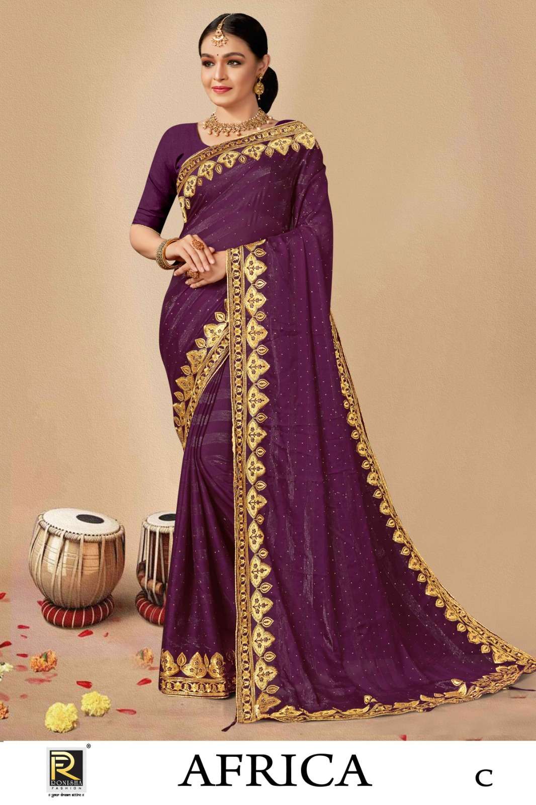 AFRICA BY RANJNA SAREE FANCY FABRICS SELF PETTERN WITH EMBROIDERY WORK AND SIROSKI DIAMOND WORK SUPER HIT COLLECTION
