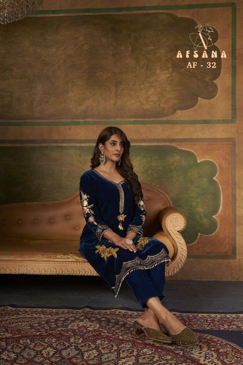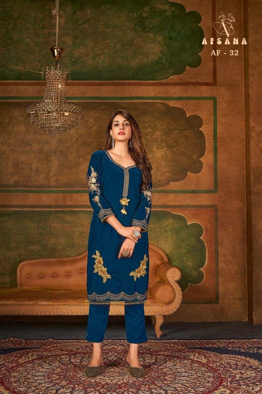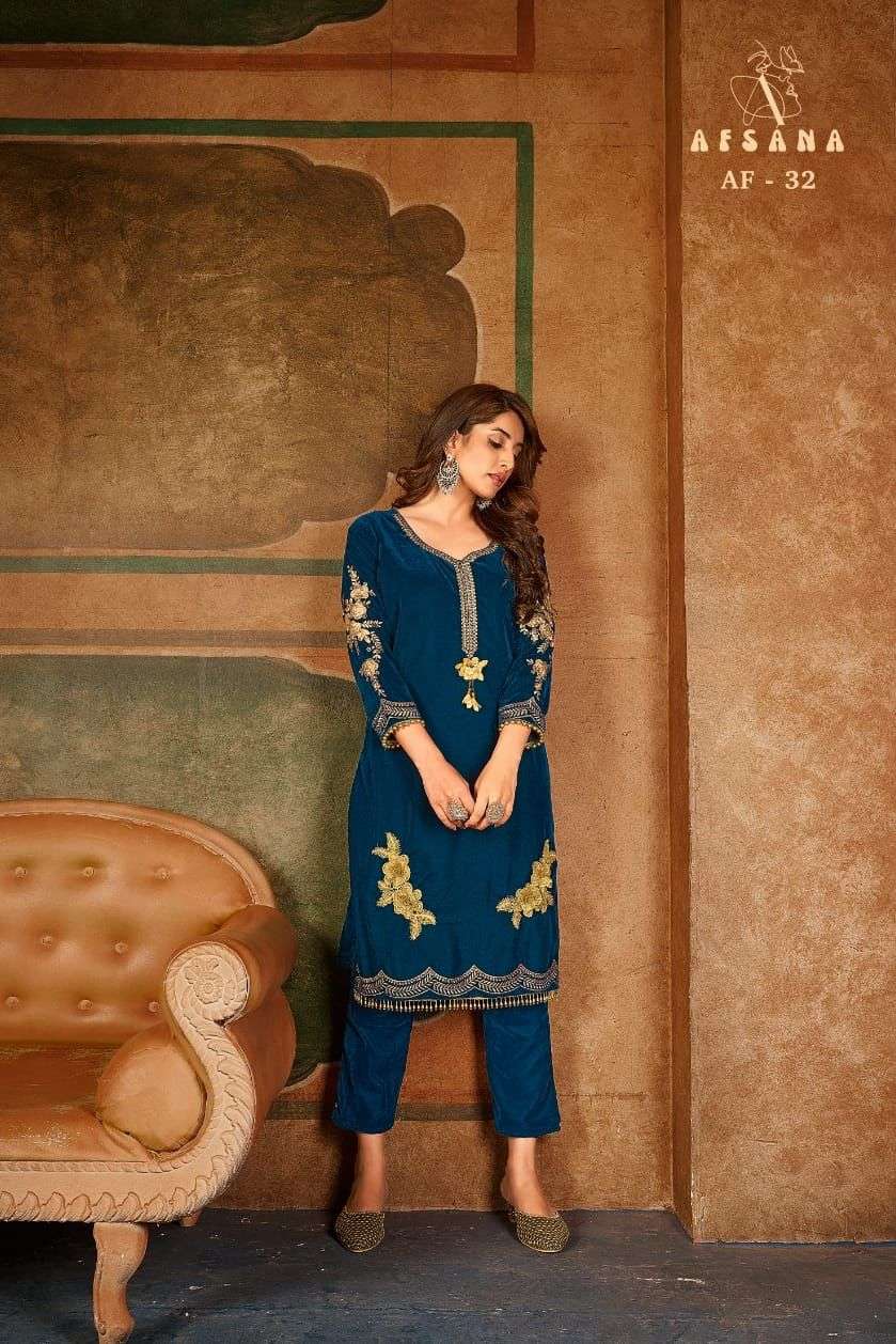 afsana af 32 velvet kurti with pant readymade collection