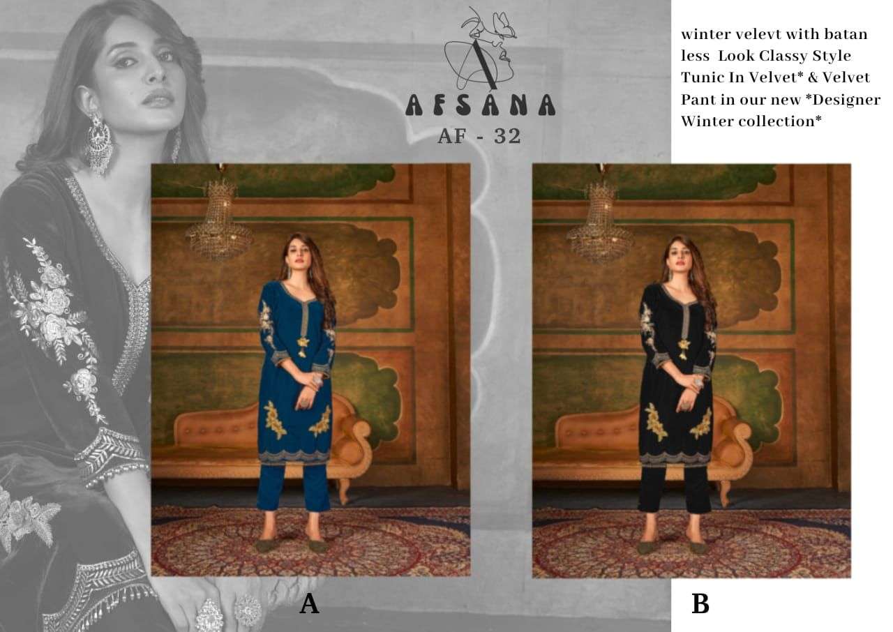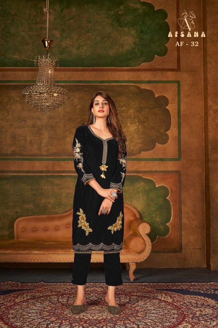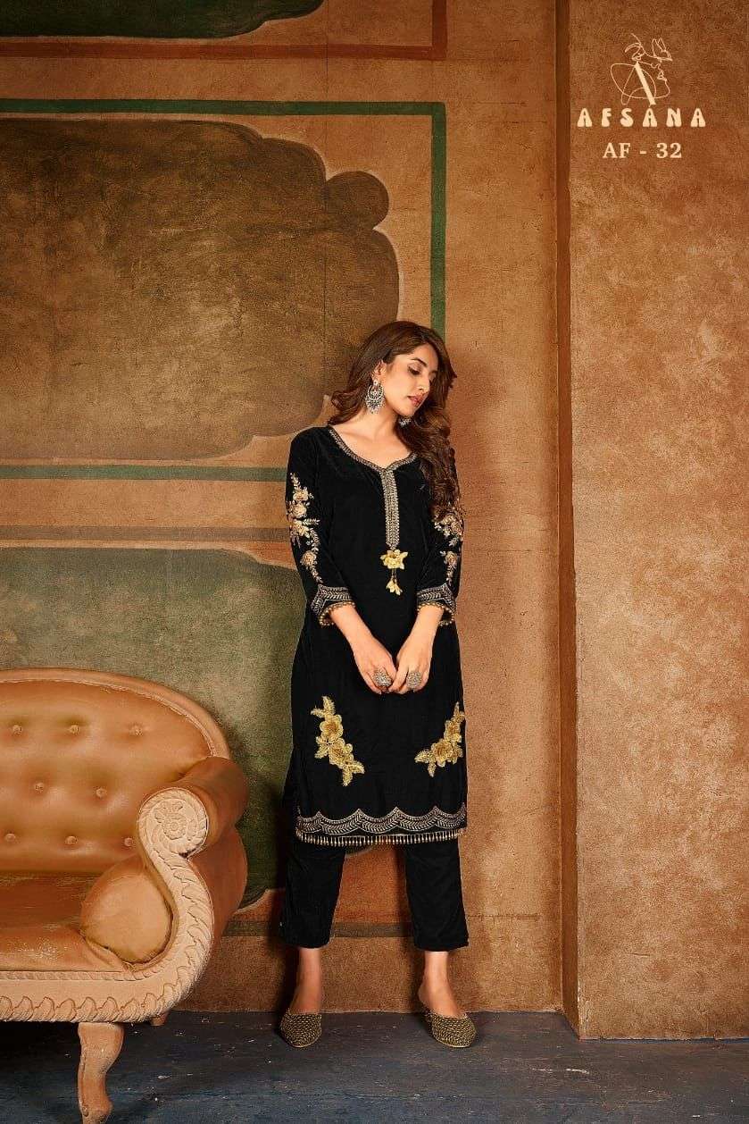 afsana af 32 velvet kurti with pant readymade collection