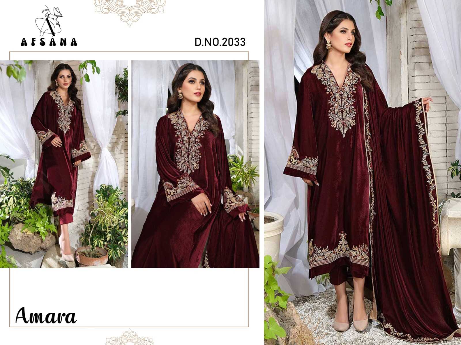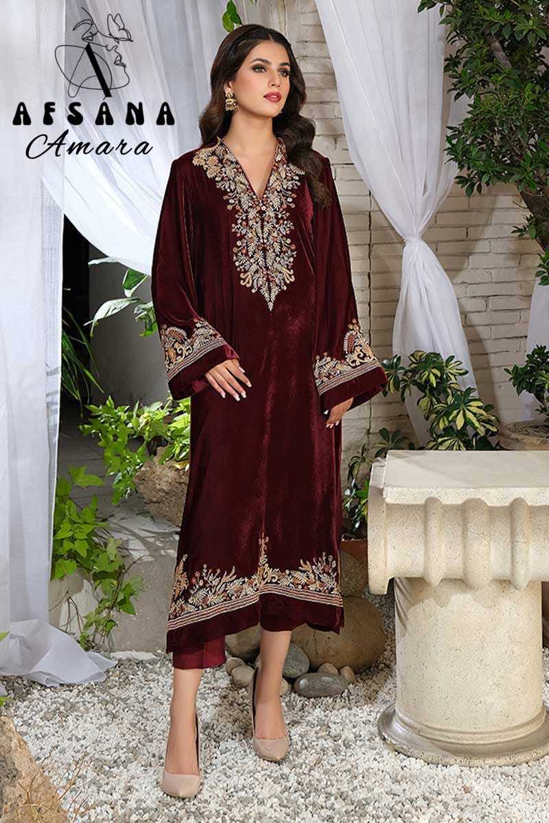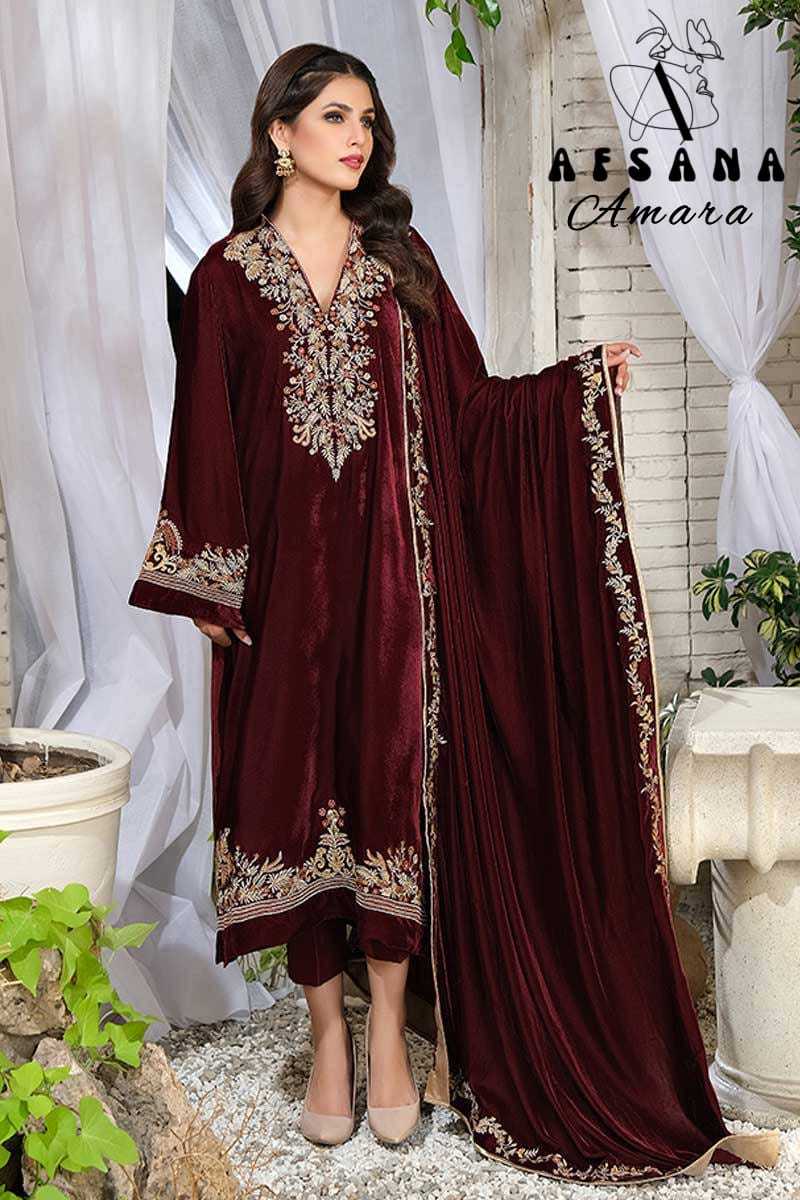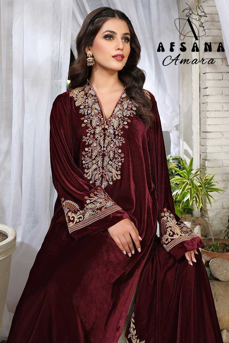 afsana amara 2024 pakistani designer fullstitch 3pcs velvet winter combo set
