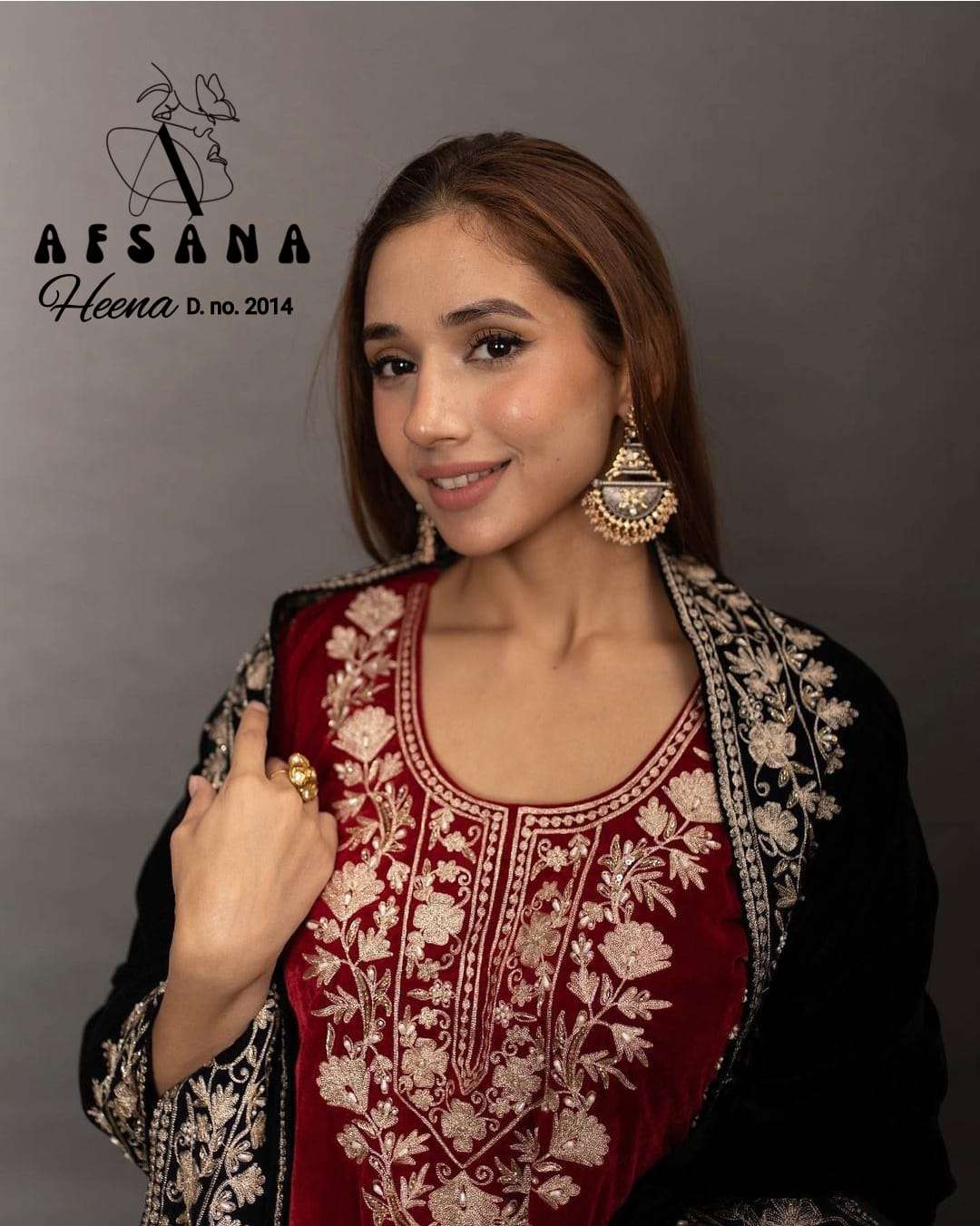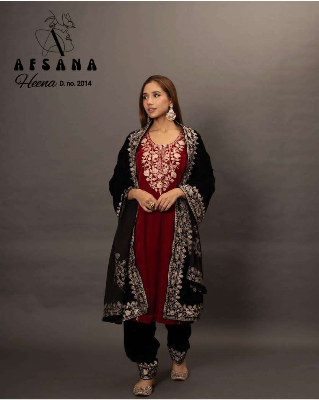 HEENA velvet by Afsana DN 2014 ♥️ GOOD QUALITY HEAVY VELVET TOP WITH BEAUTIFUL EMBROIDERED & HEAVY VELVET PENT Duppata work* # FABRIC DETAILS:- 👉 DUPATTA: HEAVY VELVET WITH EMBROIDERY WORK Size :- L XL XXL combo |