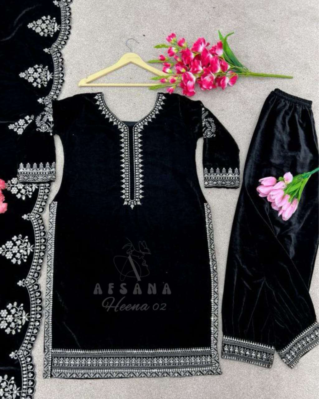 HEENA -2 * A product by AFSANA* ♥️ GOOD QUALITY HEAVY VELVET TOP WITH BEAUTIFUL EMBROIDERED SEQUENCES & HEAVY VELVET PENT Duppata CUT work* # FABRIC DETAILS:- 👉 DUPATTA: HEAVY VELVET WITH EMBROIDERY WORK CUT WORK Size :- XL XXL XXXL combo |