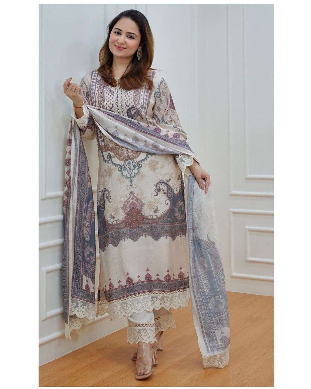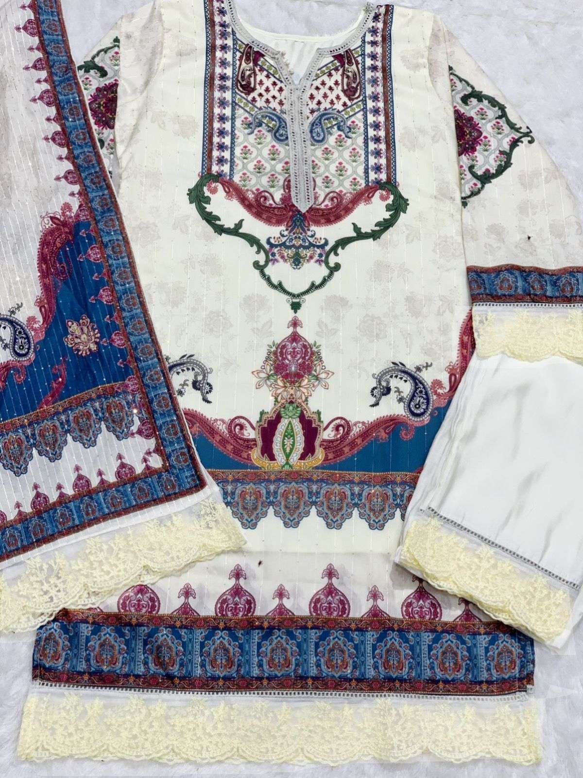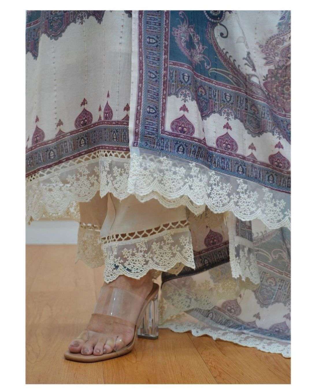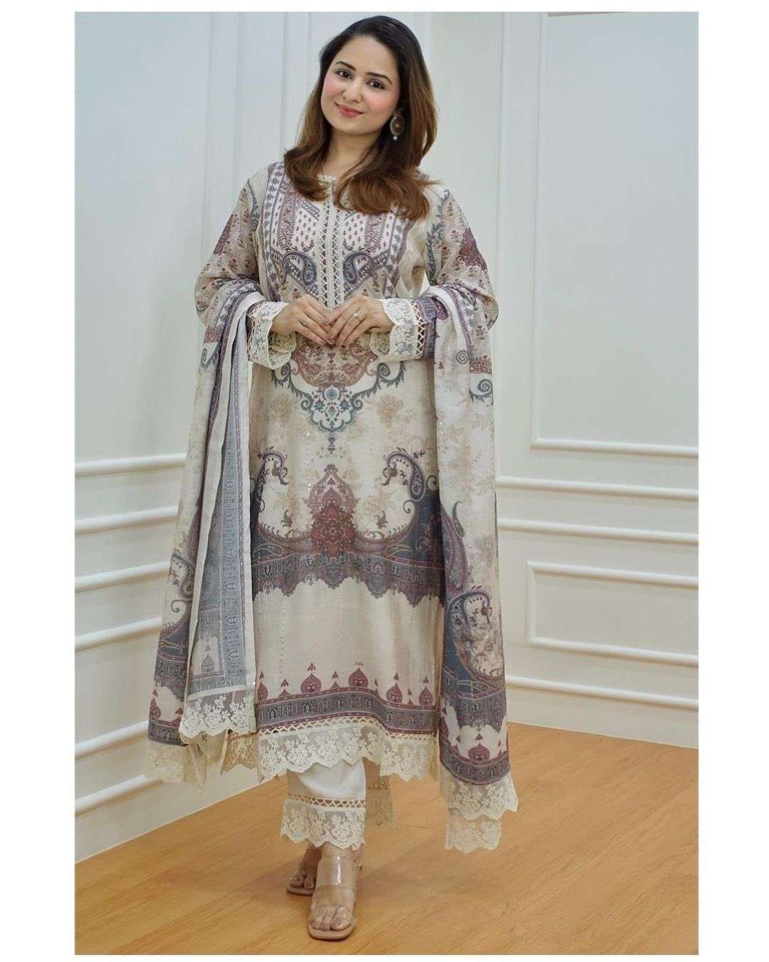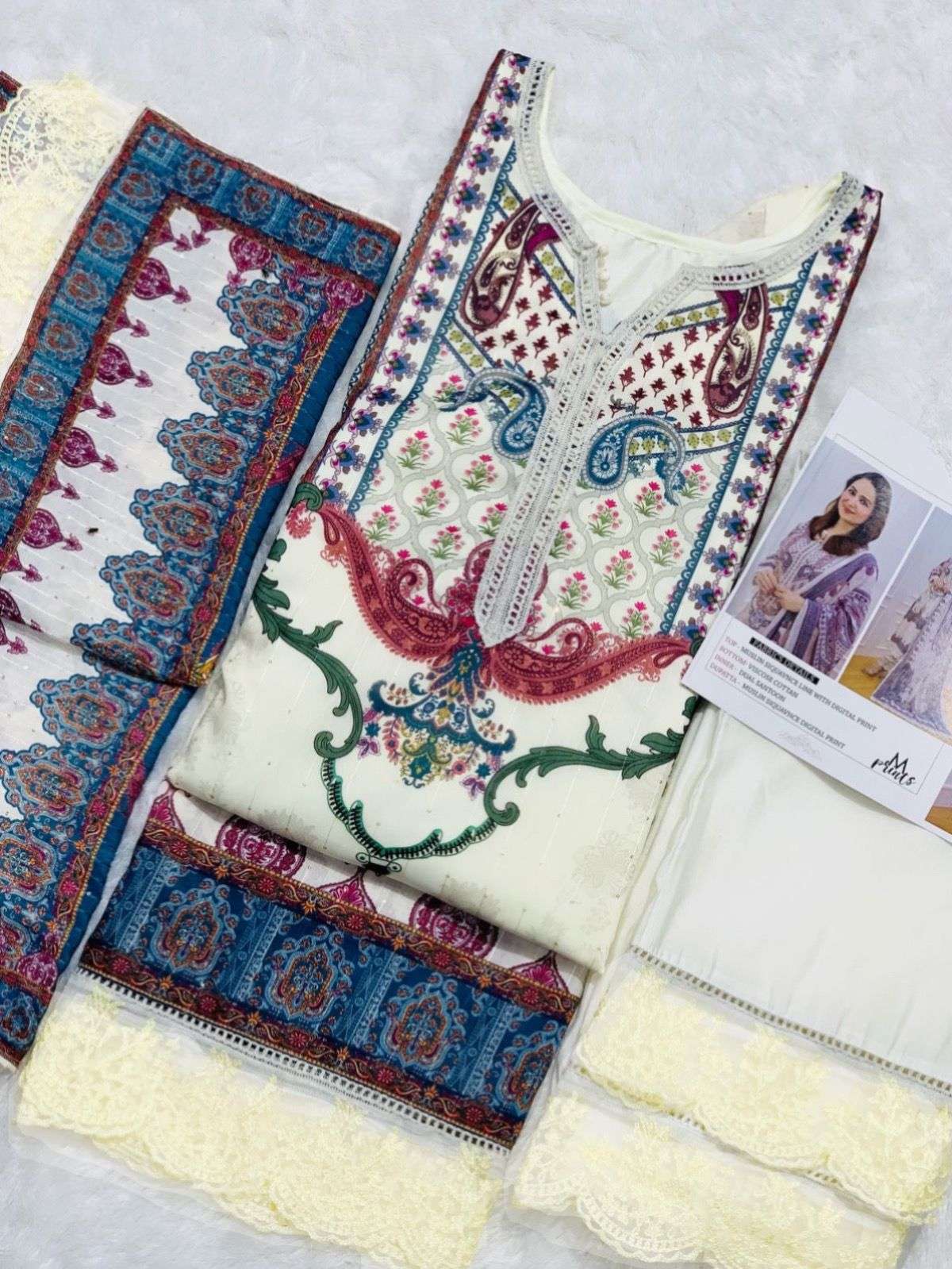 M print 🌸✨ Featuring Ivory Pakistani Suit which is beautifully decorated with digital prints, sequin embroidery and lace detailings all-over. It is absolutely perfect for your upcoming occasions, it is very easy breezy and comfortable.* It comes with lining!🌸 *SIZE - XL XXL SIQUAVNCE FABRIC WITH SHIFLI CHIKANKARI WORK LACE HIGH QUALITY SHOWROOMS STICH PIECE✨🌸💕