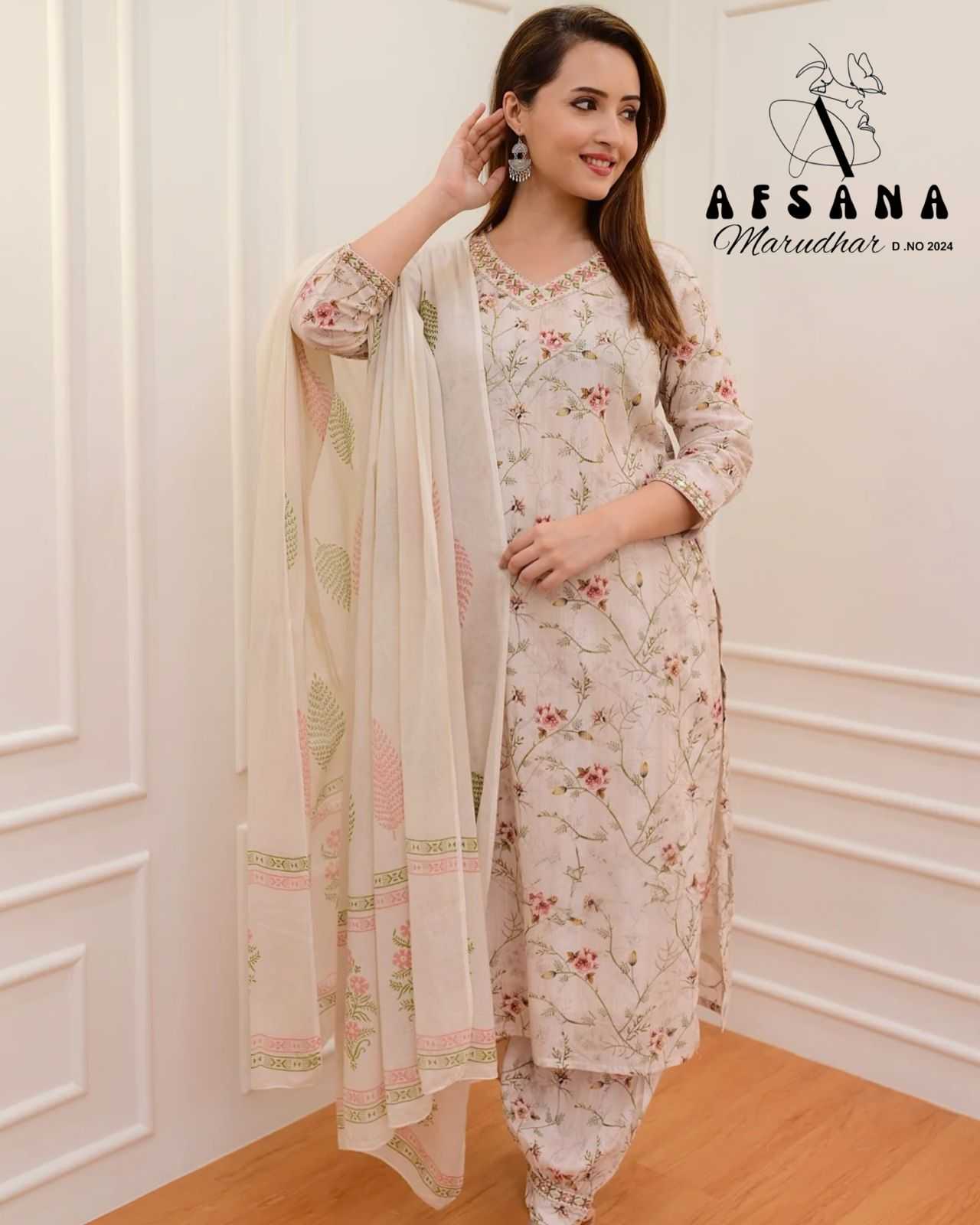 afsana marudhar 2024 pakistani readymade afghani pant kurti dupatta combo set