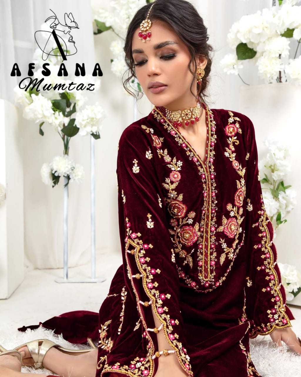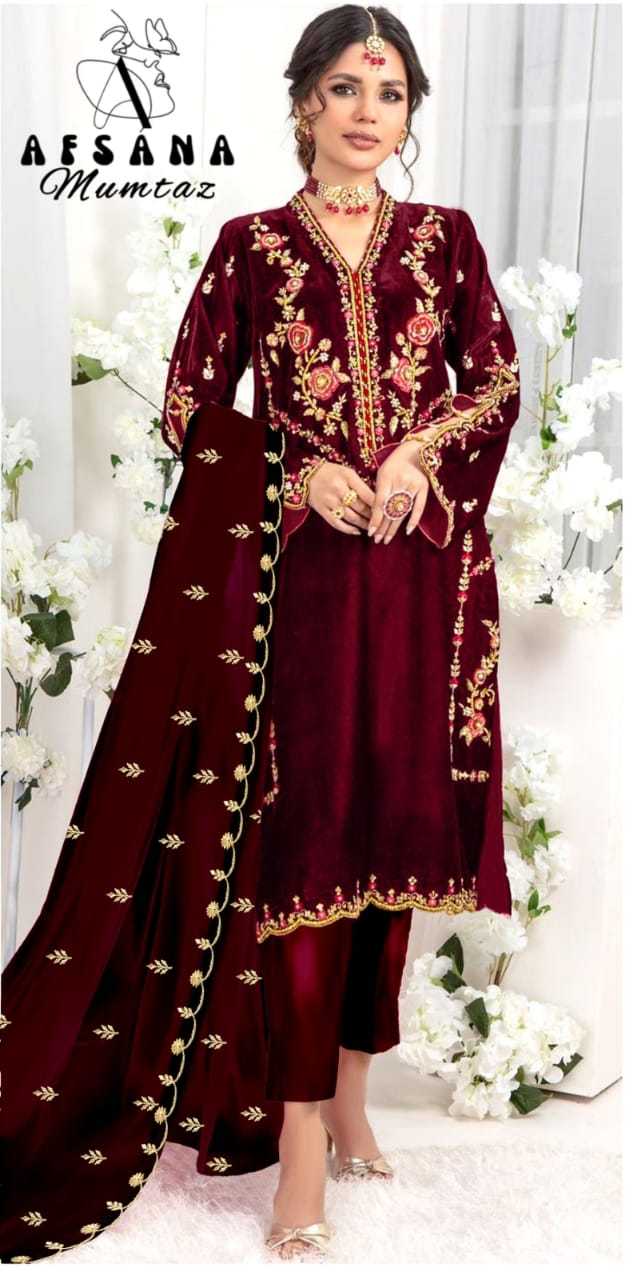 afsana mumtaz readymade pakistani velvet winter designer 3pcs combo set