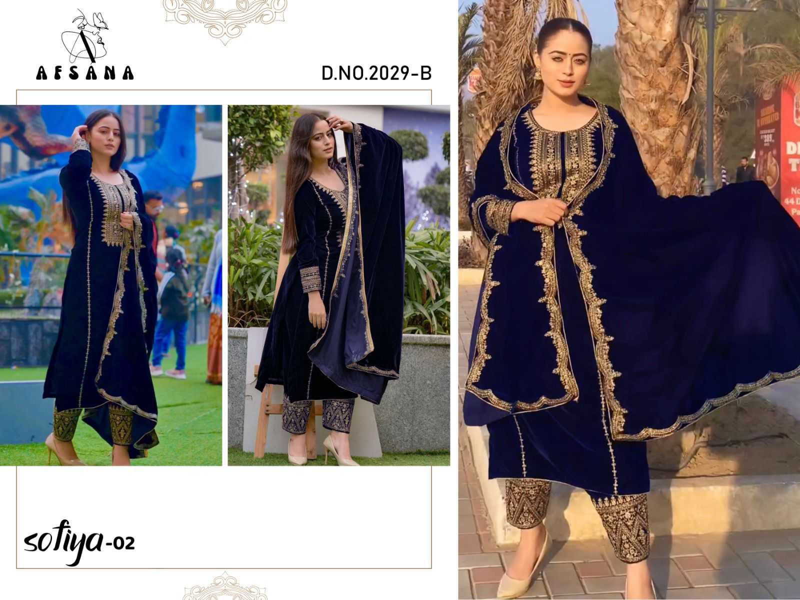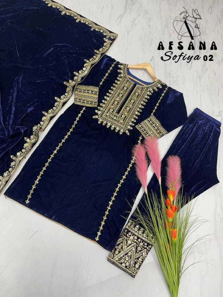 afsana sofiya vol 2 2029 pakistani velvet winter wear 3pcs readymade combo set