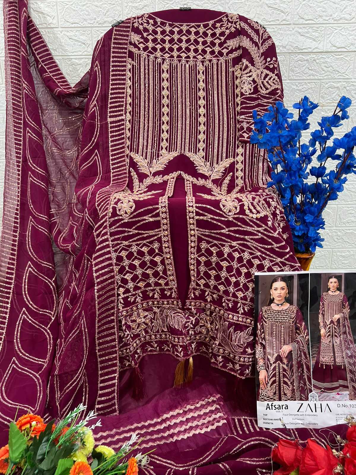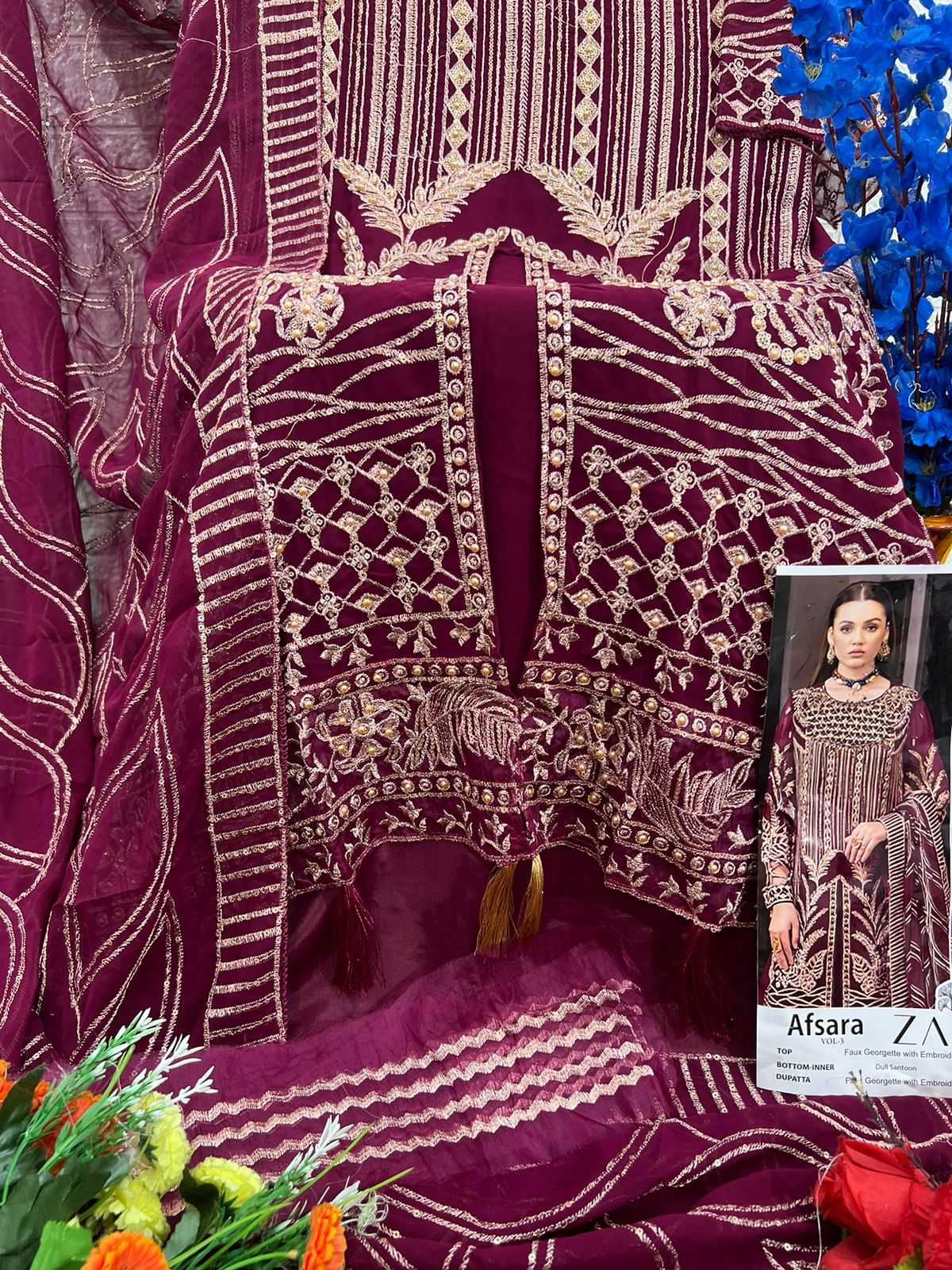 afsara vol 3 by zaha heavy embroidery georgette pakistani suits