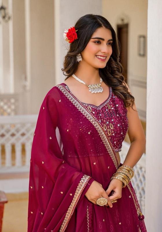 “Elegance with an ethnic touch.” Fabric Details: - Slim Georgette. Size: L (40), XL (42), XXL (44). Lehenga Fair: - 3.5 Meter. Weight: 2 Kg. GST: - 12%. Rate: - 3299/-. |