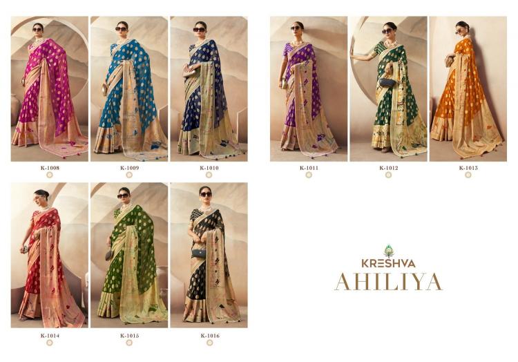 True Beauty Comes Out From Your Dressing Design With This Georgette Festive Wear Saree. This Stunning Attire Is Displaying Some Great Weaving Done With Soft Touch Brand - Kreshwa Catalog Name - Ahiliya Series :-1008 to 1016 Rate : 1495/- +5%Gst Fabric: Lux P.V. Georgette With Burnout Butti And Paithini Border Pallu With Warnish Soft Finish Blouse : Lux P.V. Georgette Occasion: Party Wear,Festival Wear |