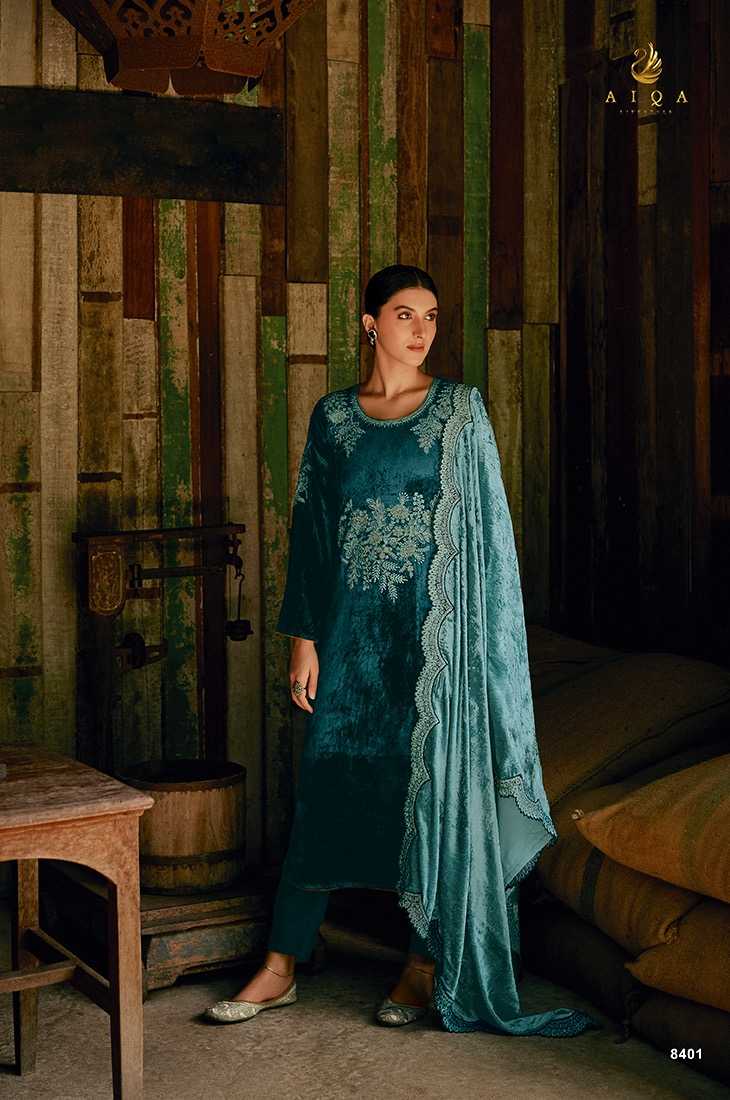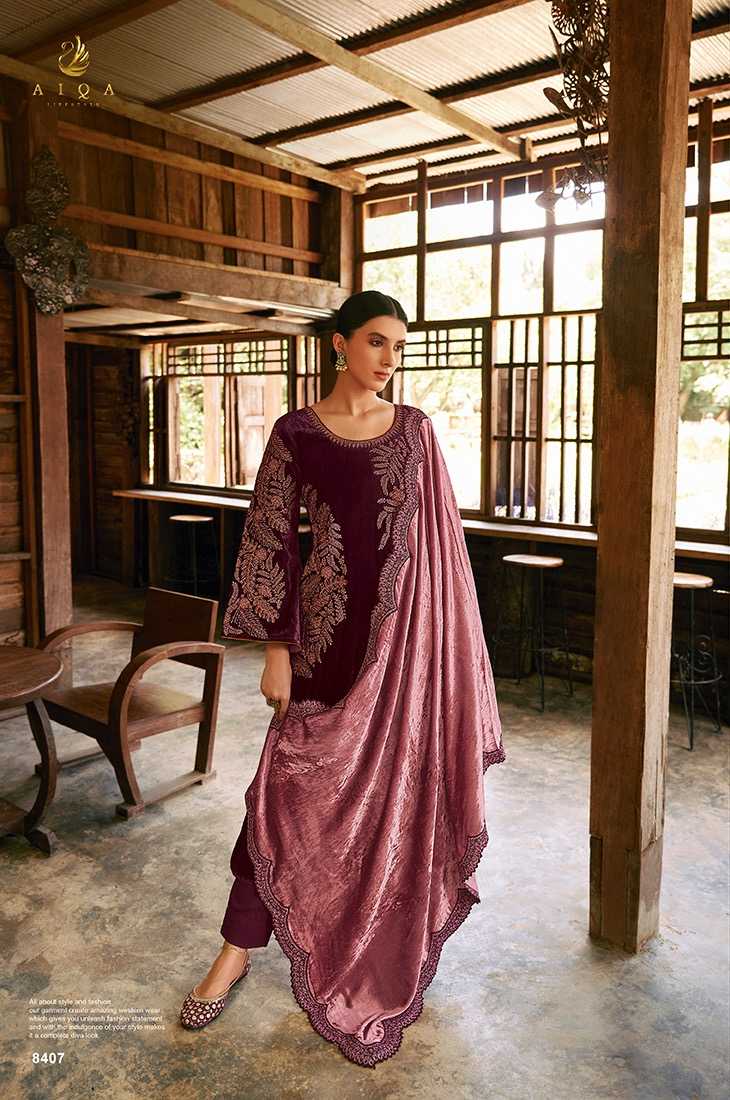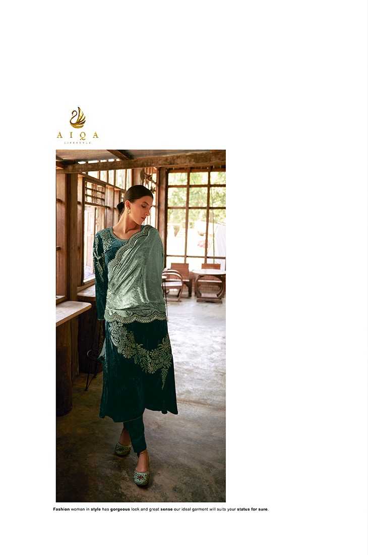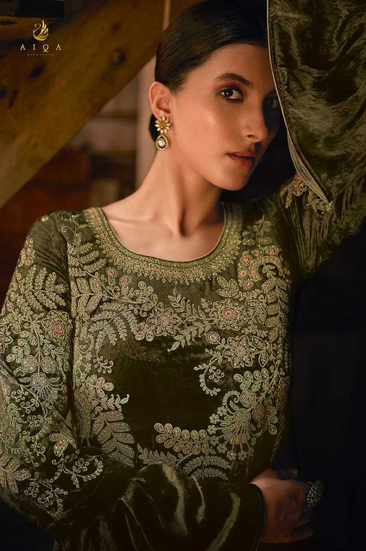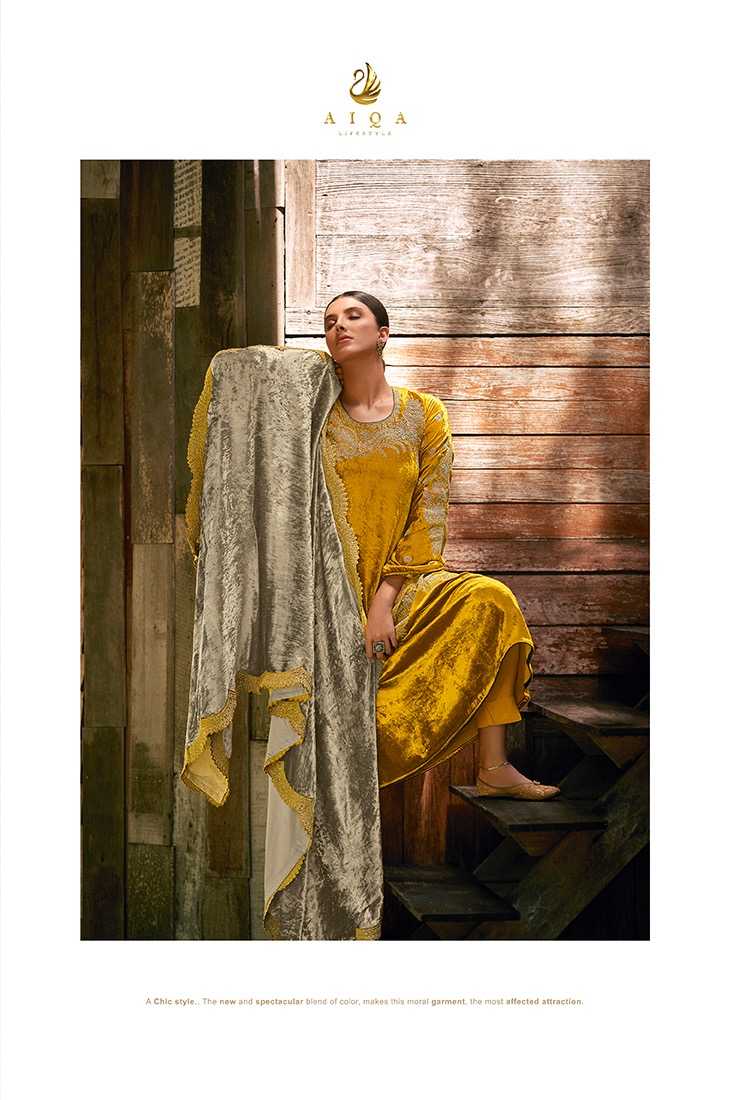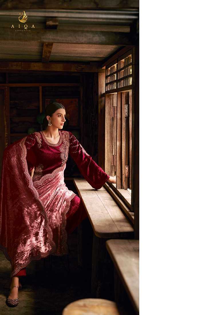 aiqa lifestyle elie velvet fancy work winter occasion wear dress material