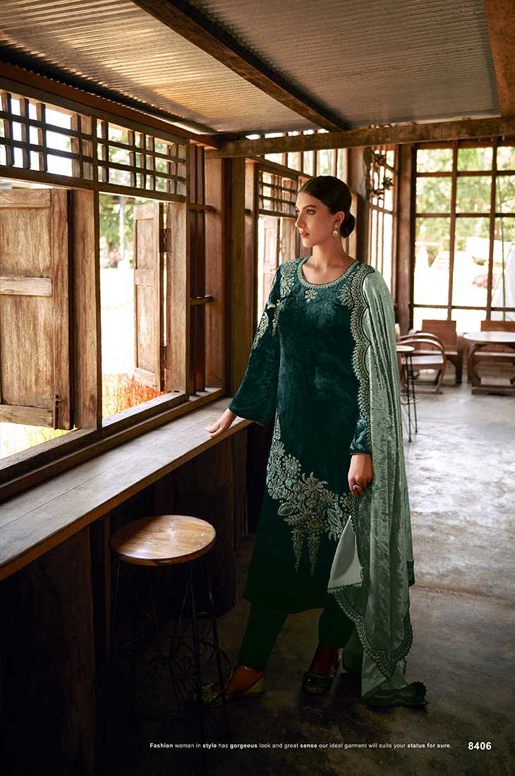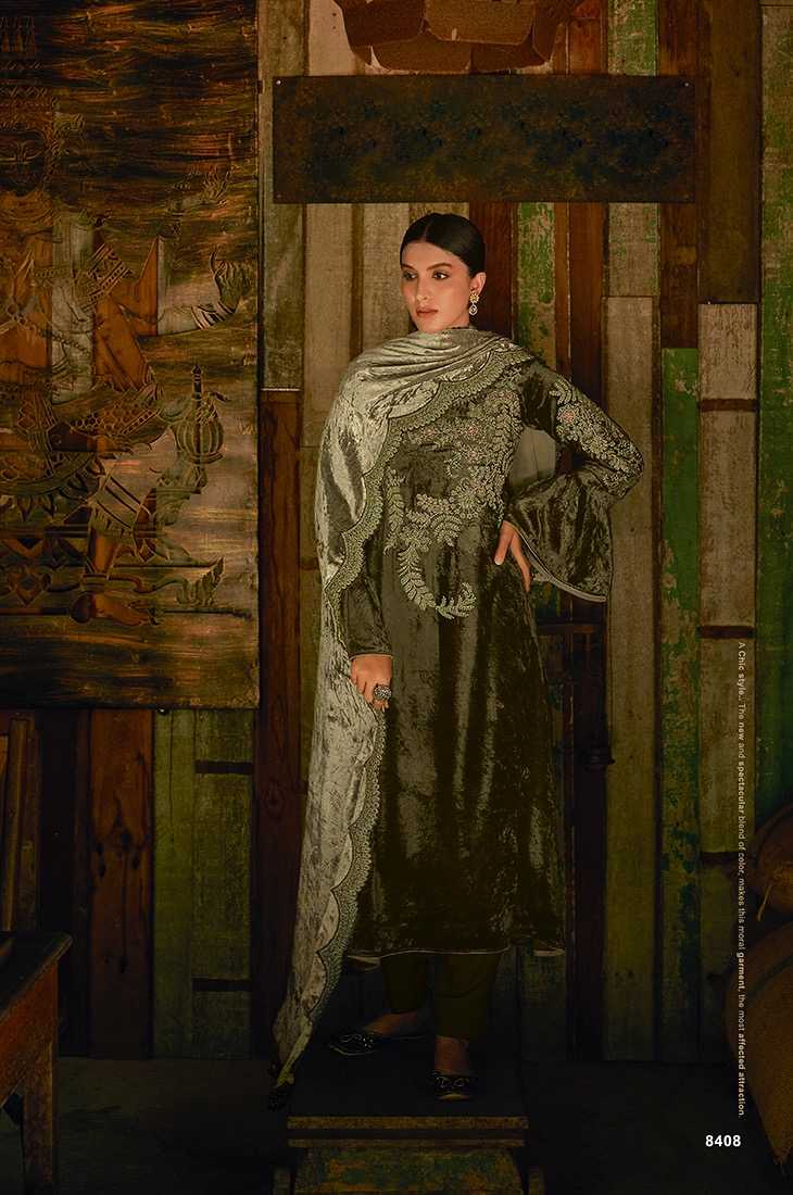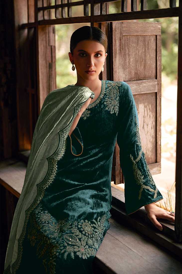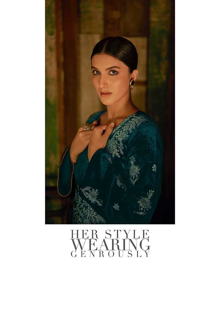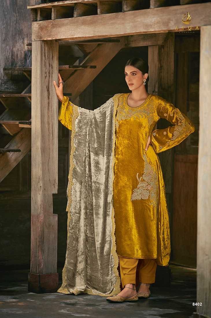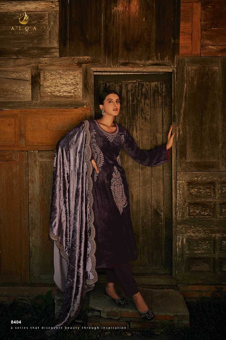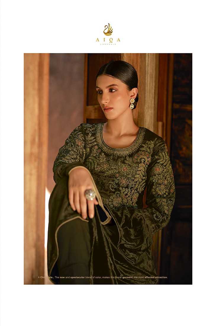 aiqa lifestyle elie velvet fancy work winter occasion wear dress material
