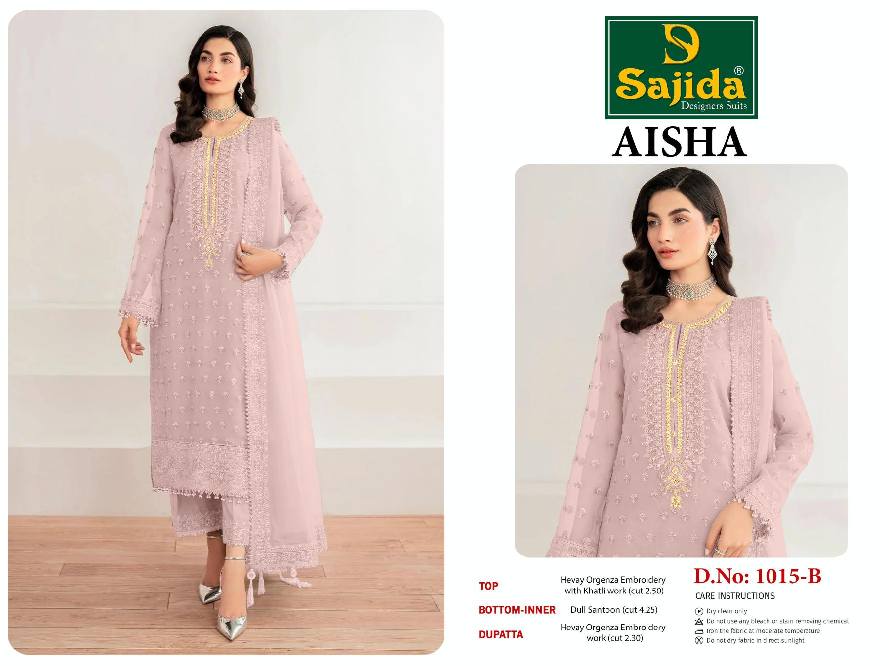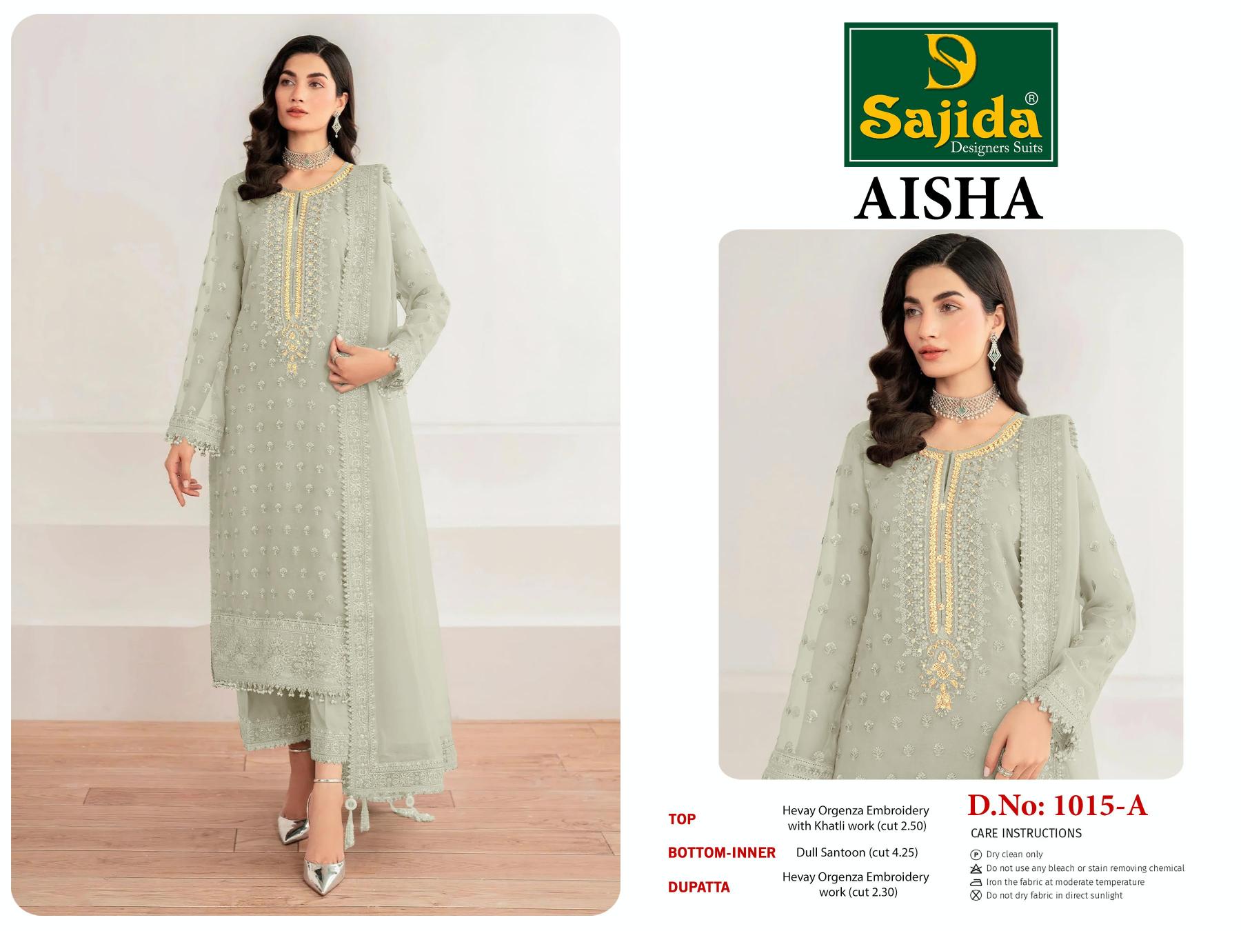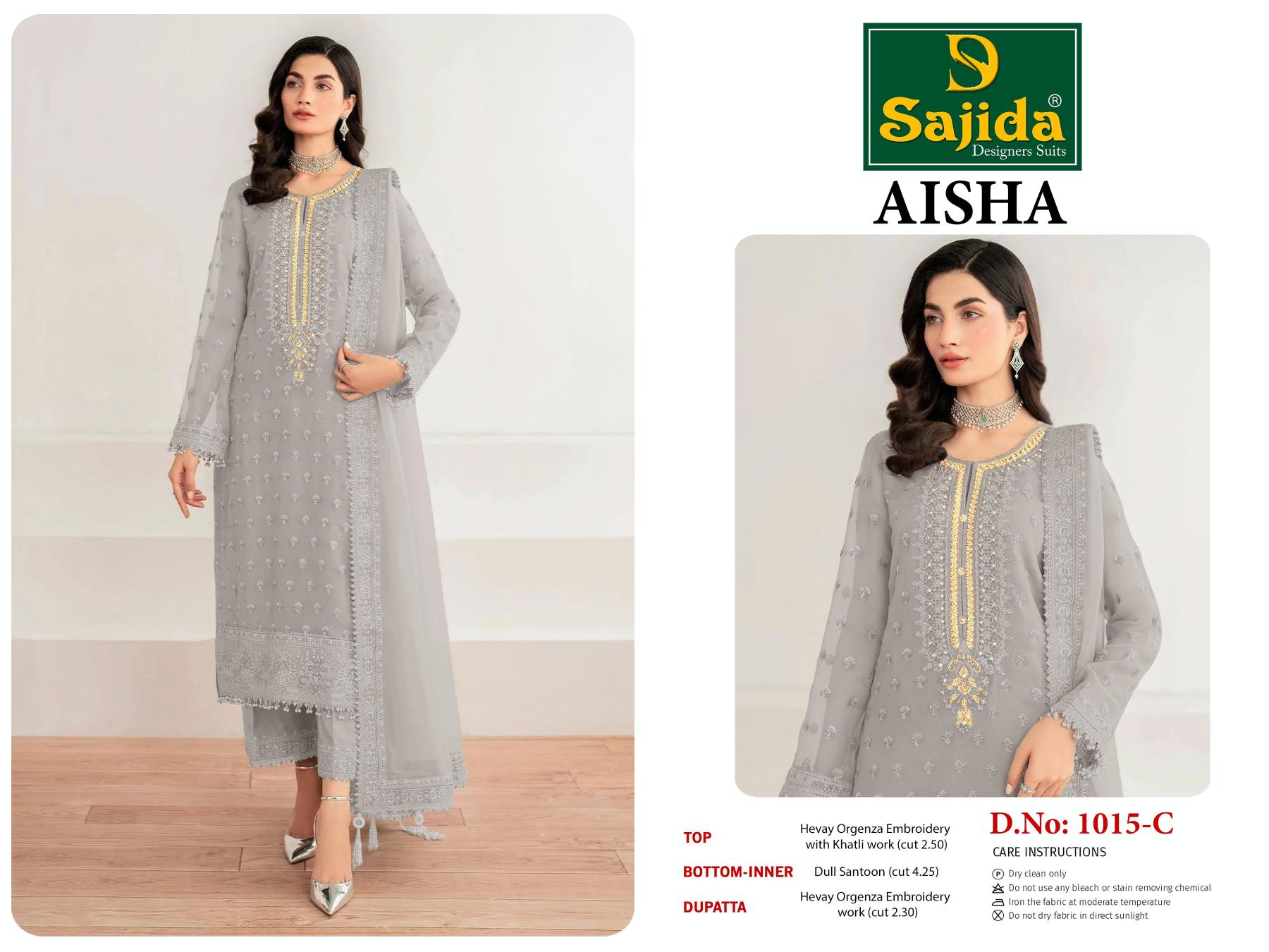 aisha sajida designer 1015 organza attractive look pakistani suit online