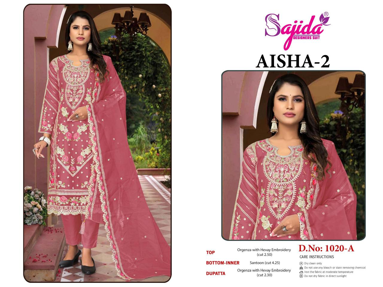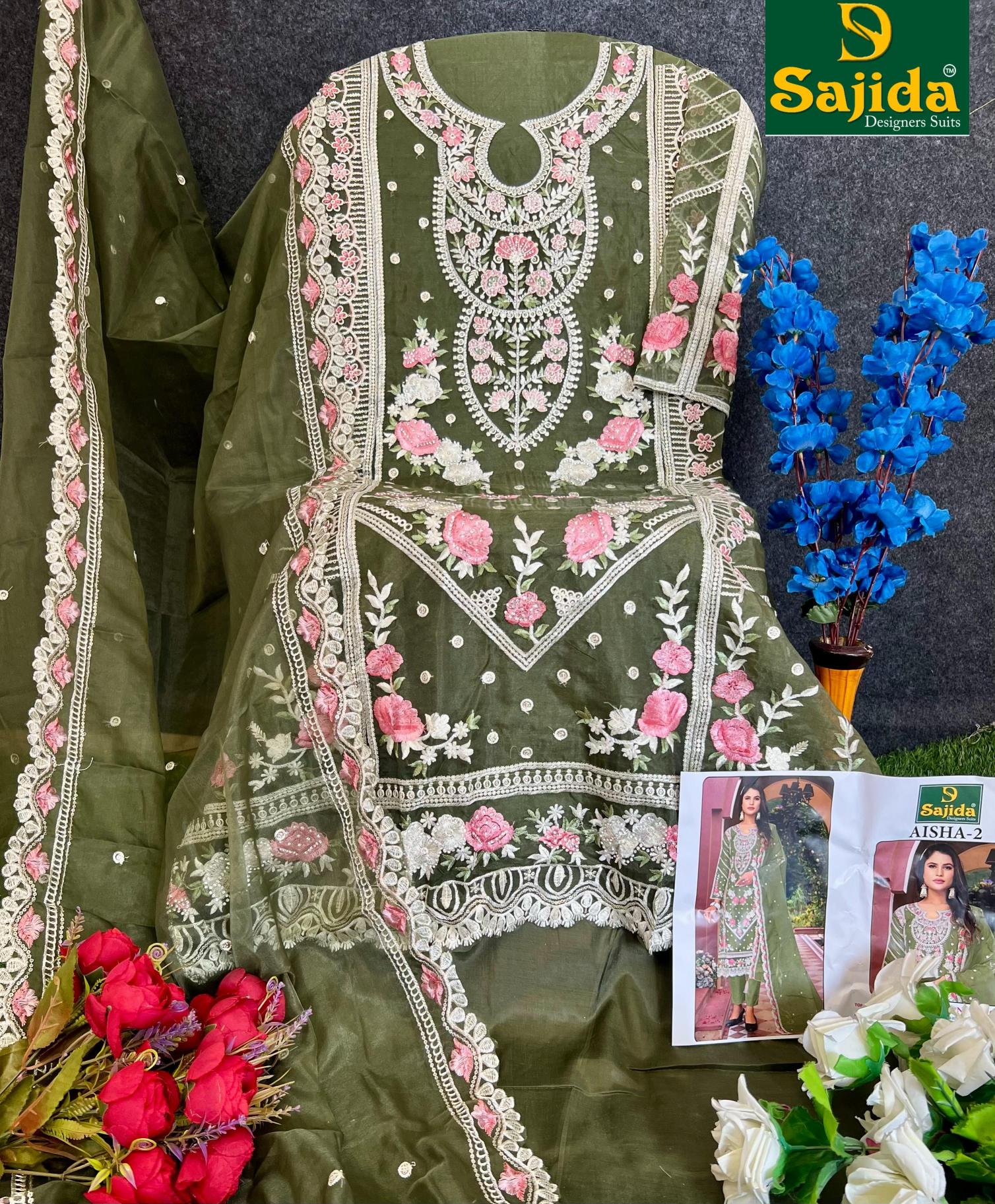 aisha vol 2 by sajida designer organza pakistani unique 3pcs dress