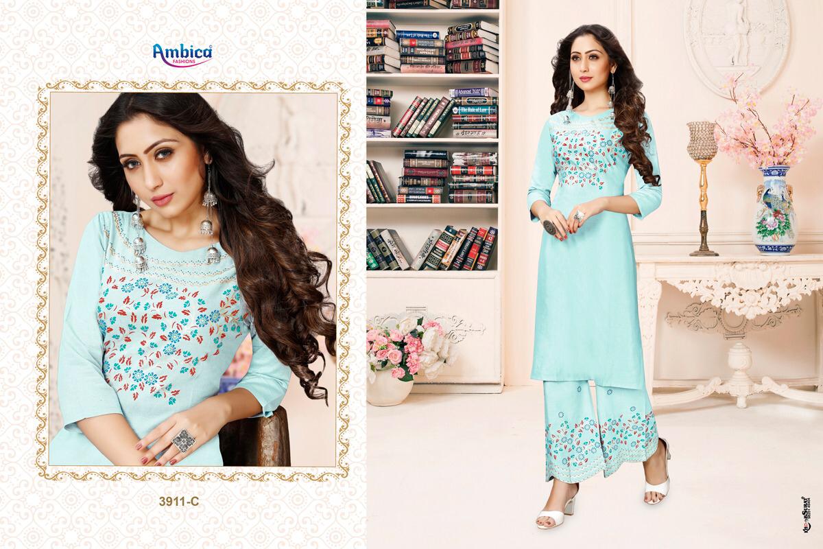 Aishani By Ambica Flex Table Printed Long Kurti With Pant Collection
