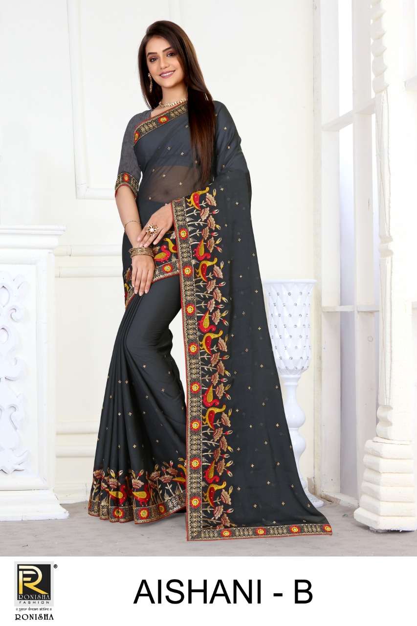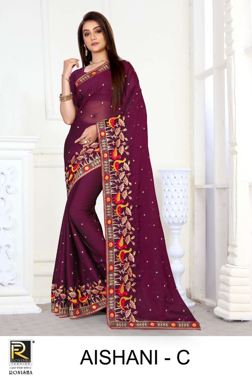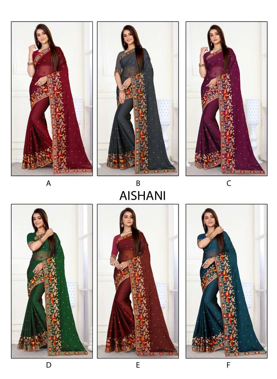 AISHANI BY RANJNA SAREES CIFFONE EMBROIDERY WORK HEAVY DIAMOND SAREES COLLECTION